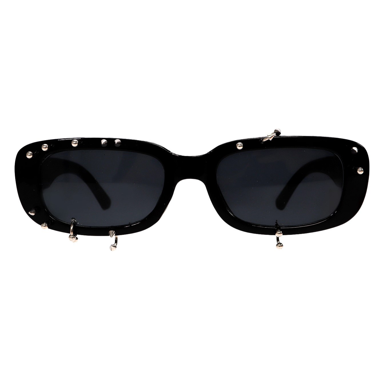 유럽과 미국 스타일의 펑크 리벳 작은 사각형 선글라스 사각형 젤리 투명 컬러 프레임 패션 스트리트 스타일 펑크 데님스토어 가기