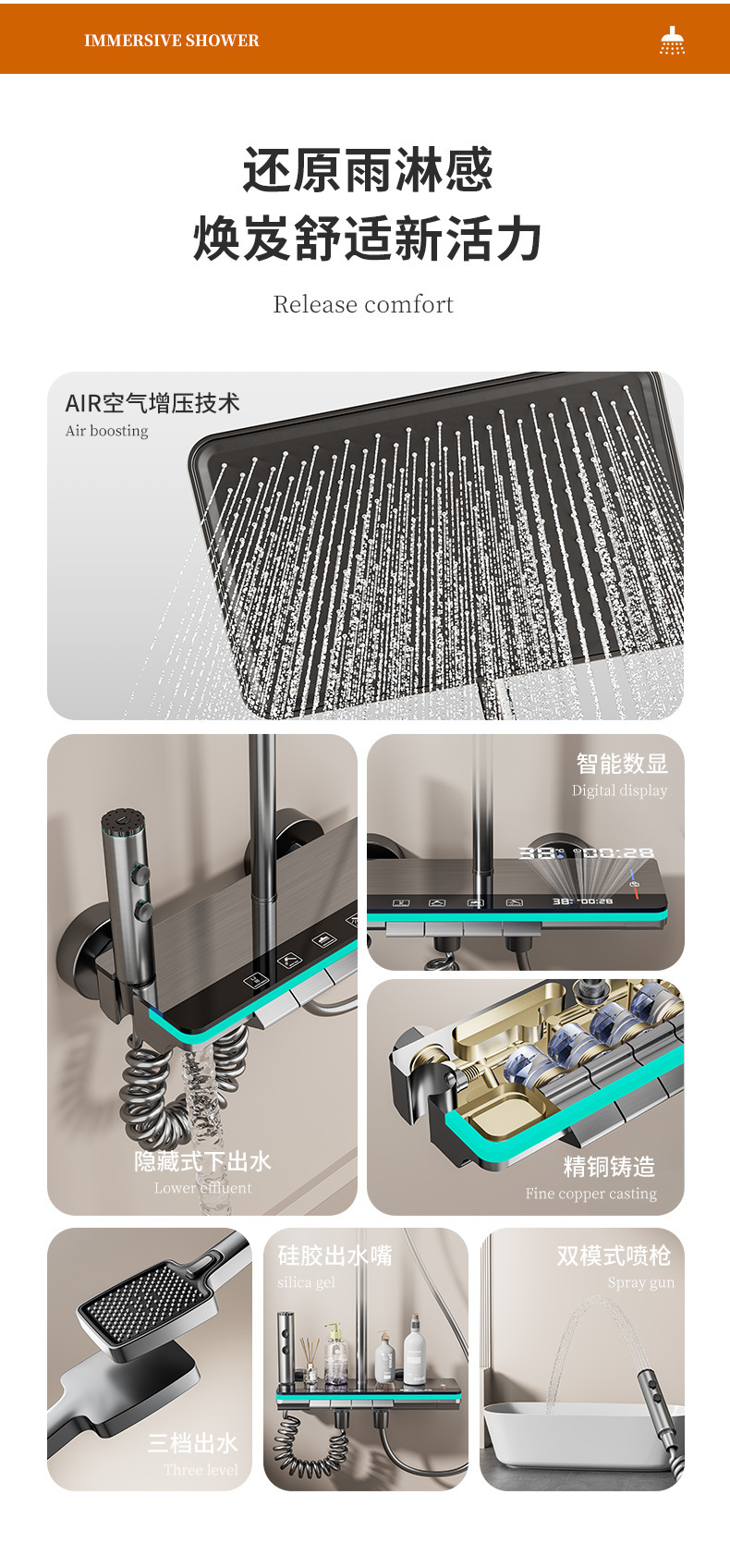 • 구리 몸체 - 건 그레이 디지털 디스플레이 항공모함 샤워