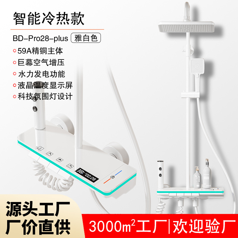 • 구리 몸체 우아한 흰색 주변광 디지털 디스플레이 항공모함 샤워