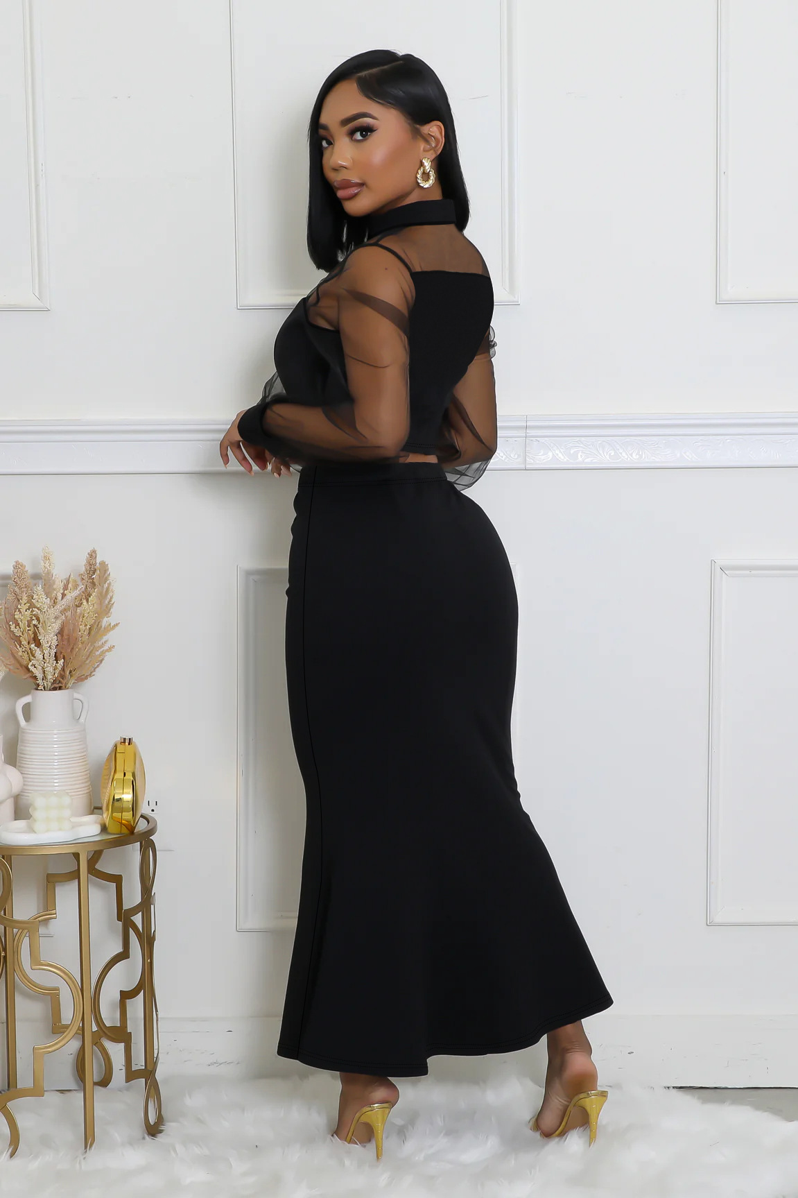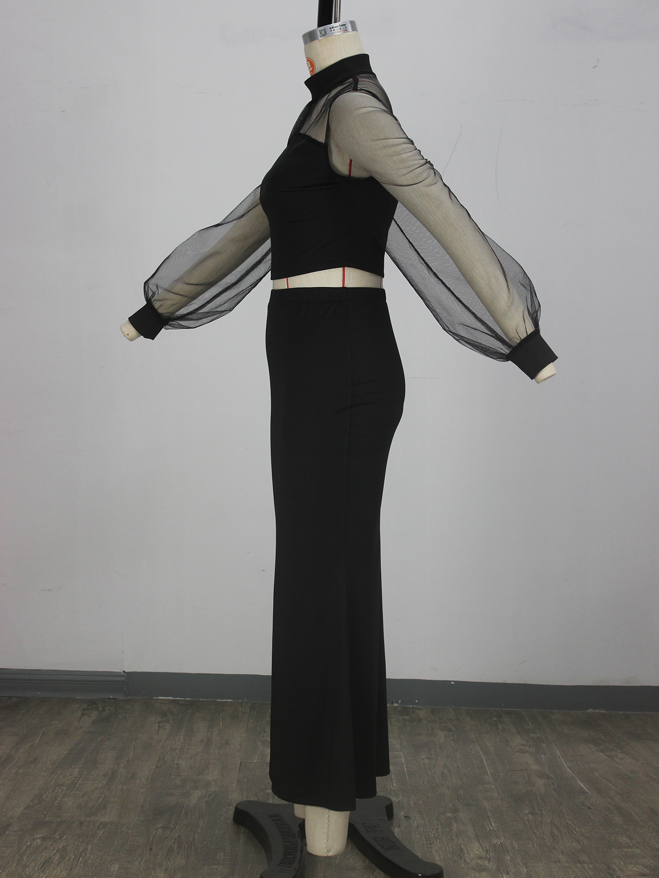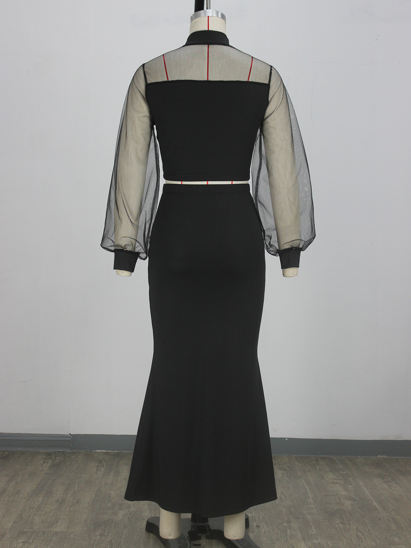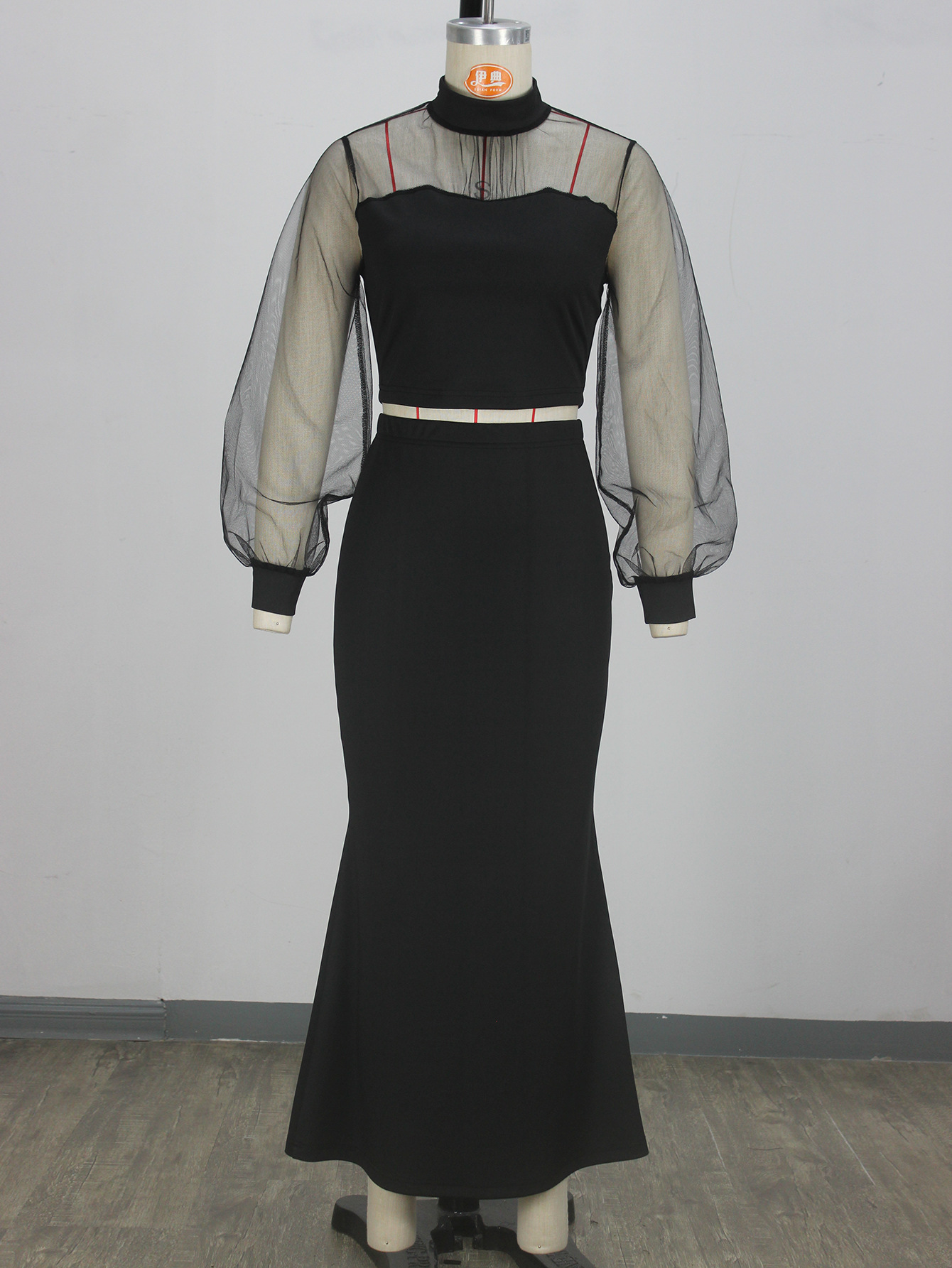 국경 간 아마존 유럽과 미국 의류 세련되고 우아한 메쉬 스플 라이스 탑 롱 스커트 슈트스토어 가기