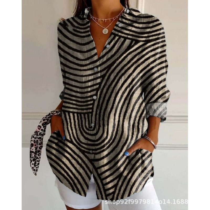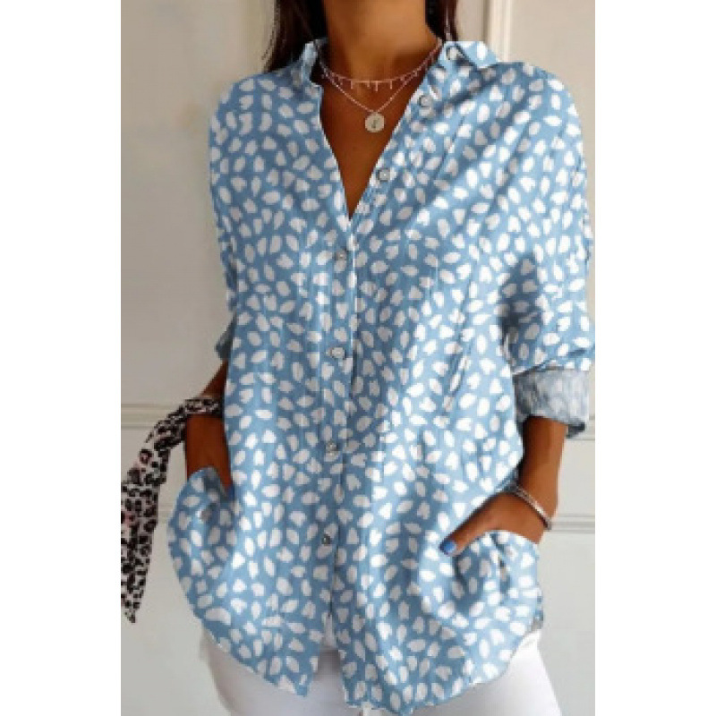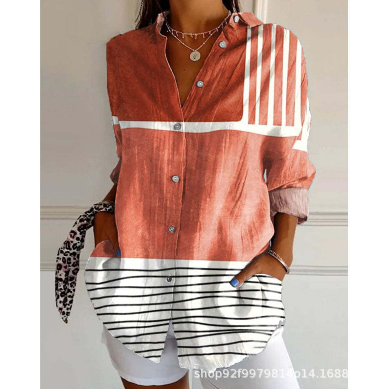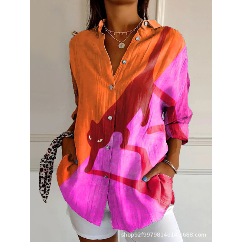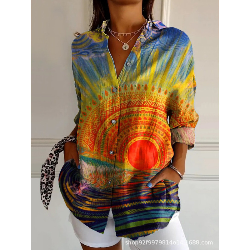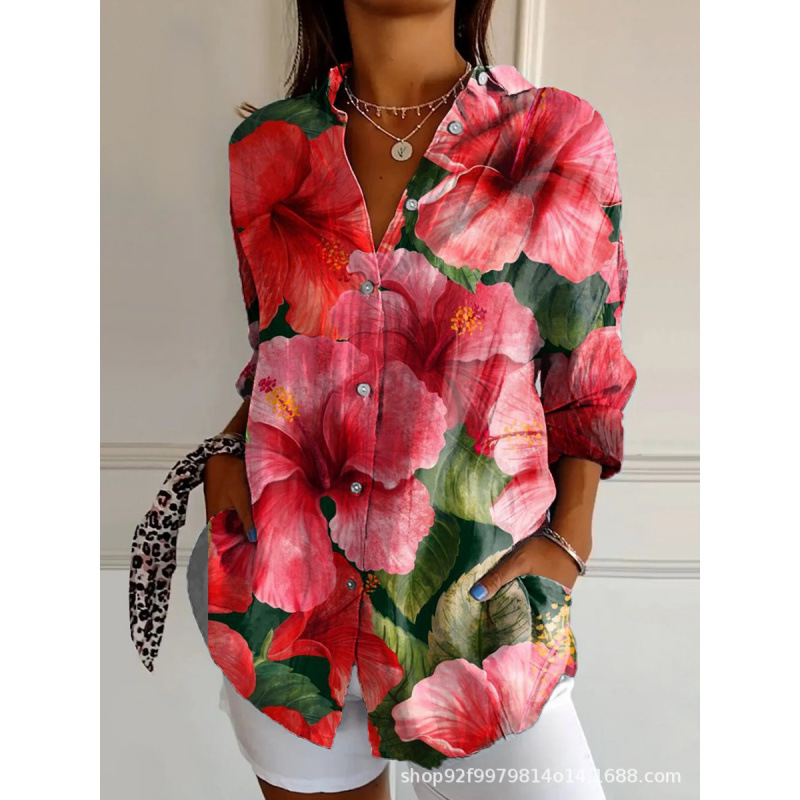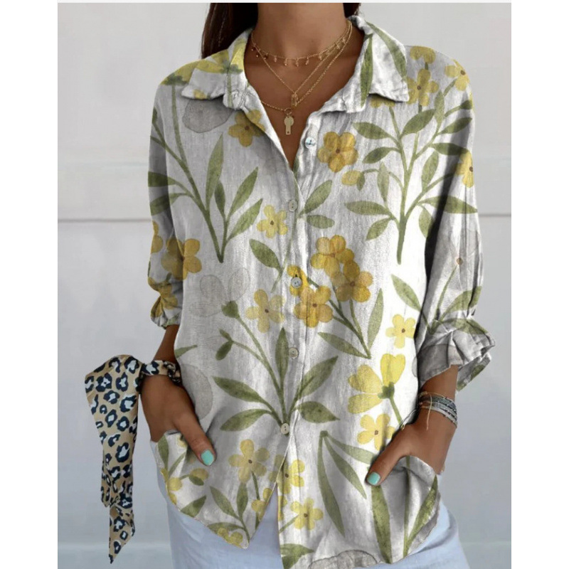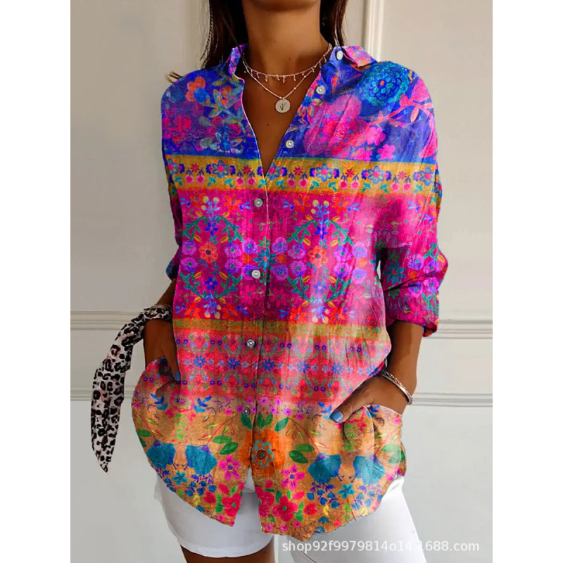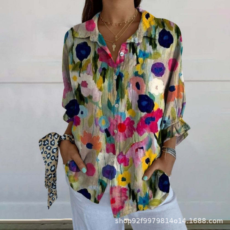 2025 Amazon 봄 새 스타일 라펠 미드 슬리브 캐주얼 셔츠 여성 창의적인 복고풍 꽃무늬 셔츠