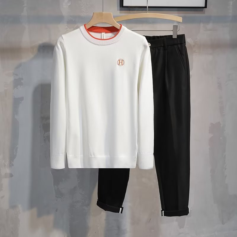 가슴에 자수 문자가 있는 트렌디한 브랜드, 패셔너블하고 심플한 라운드넥 따뜻한 스웨터, 가을 겨울 젊고 고급스러운 남성용 다용도 스웨터