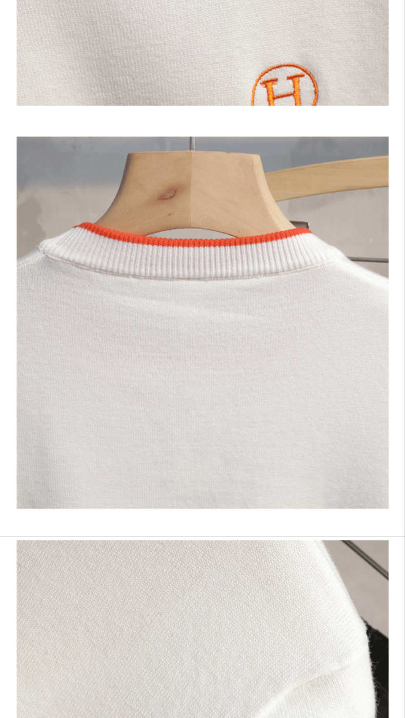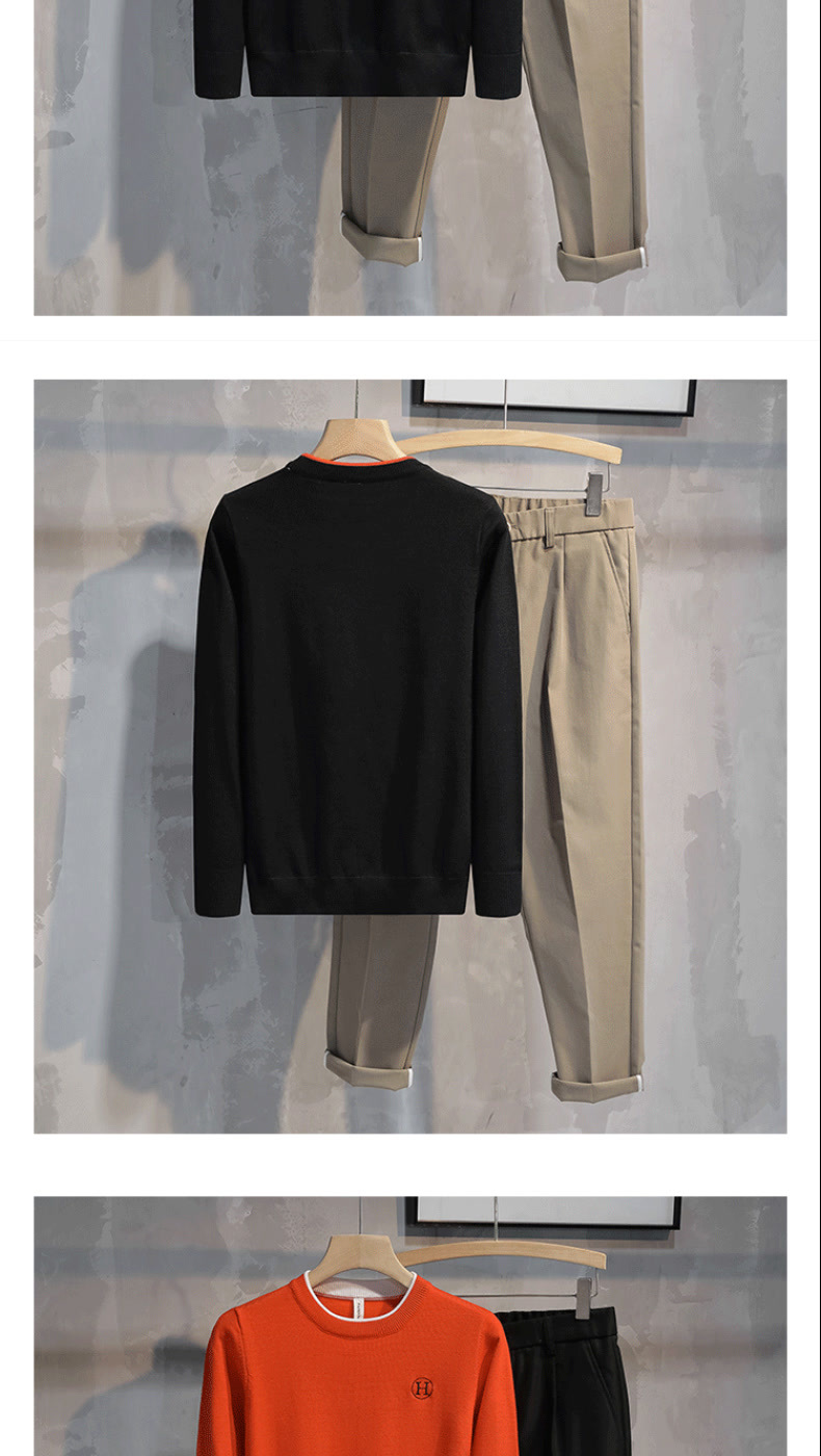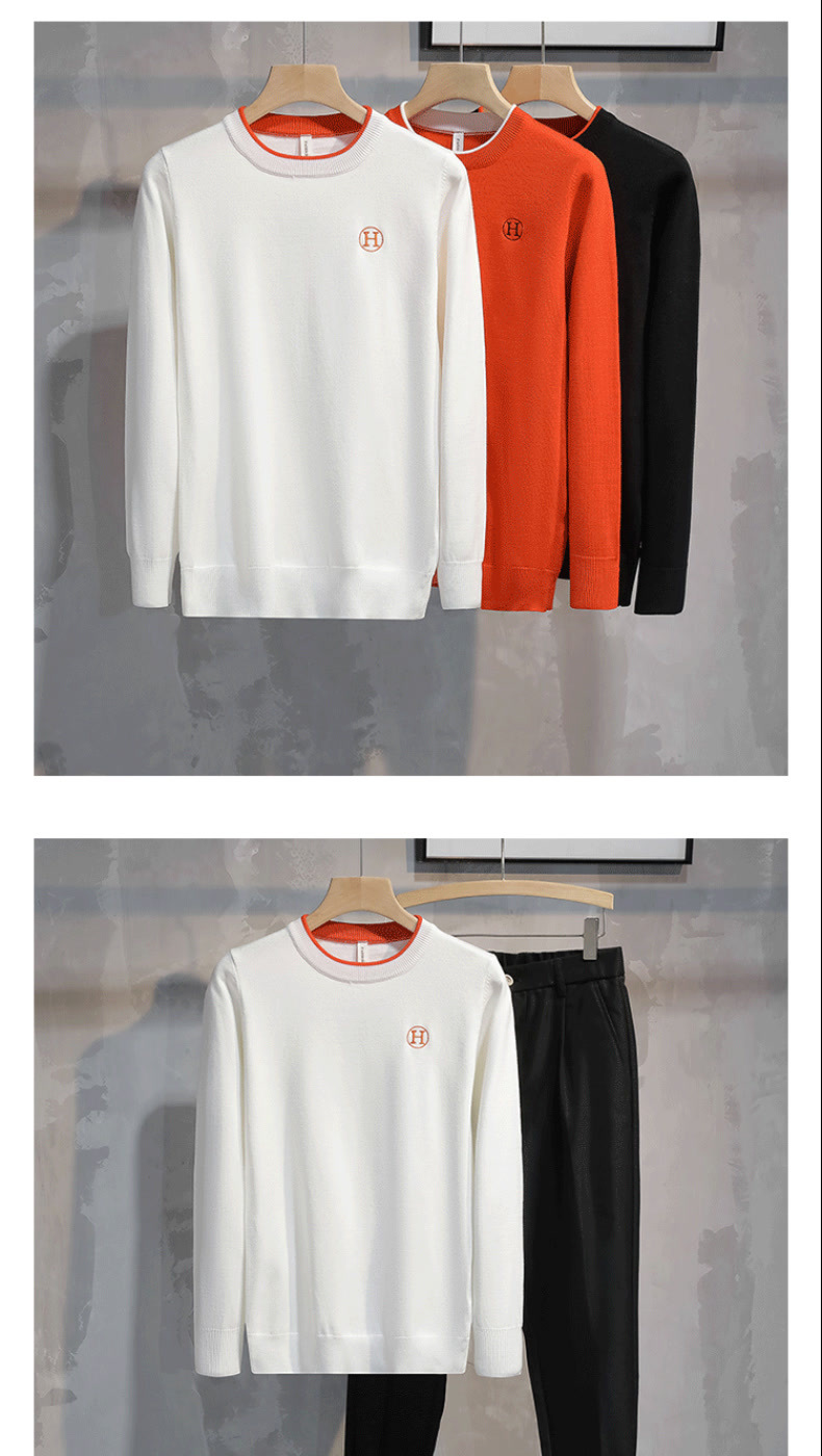 가슴에 자수 문자가 있는 트렌디한 브랜드, 패셔너블하고 심플한 라운드넥 따뜻한 스웨터, 가을 겨울 젊고 고급스러운 남성용 다용도 스웨터스토어 가기