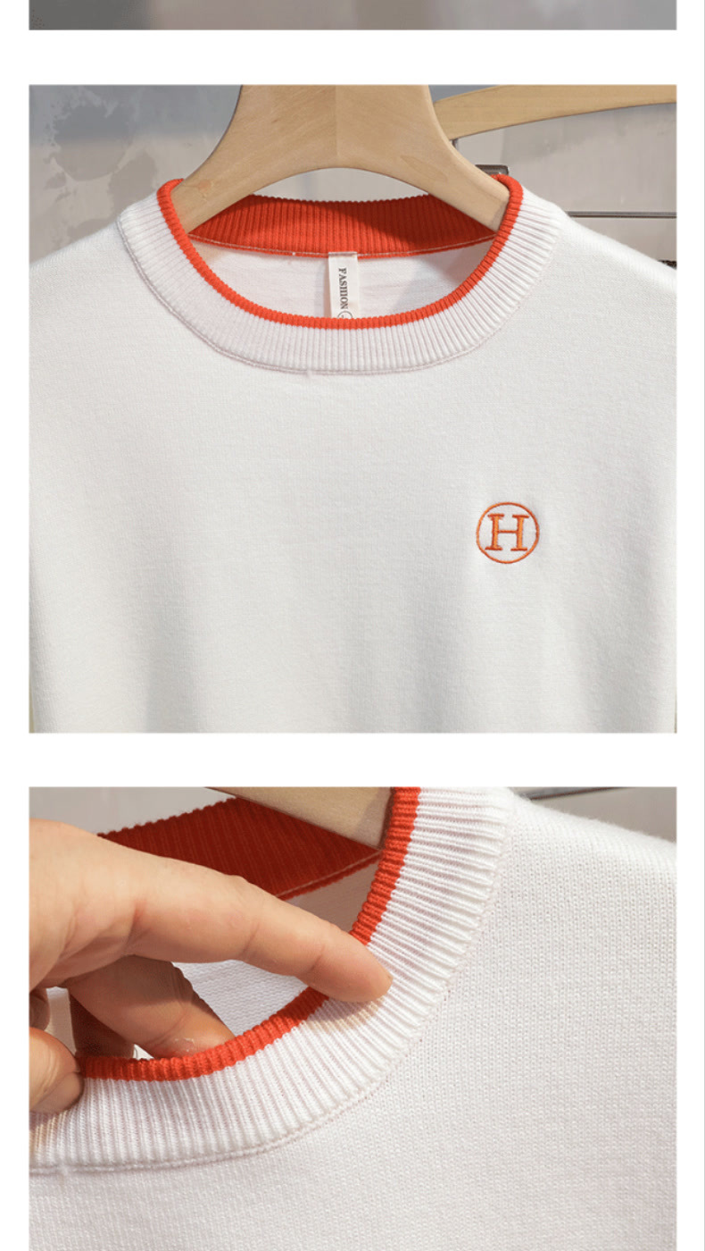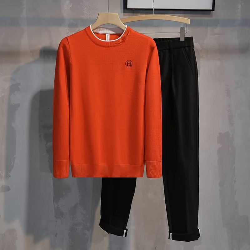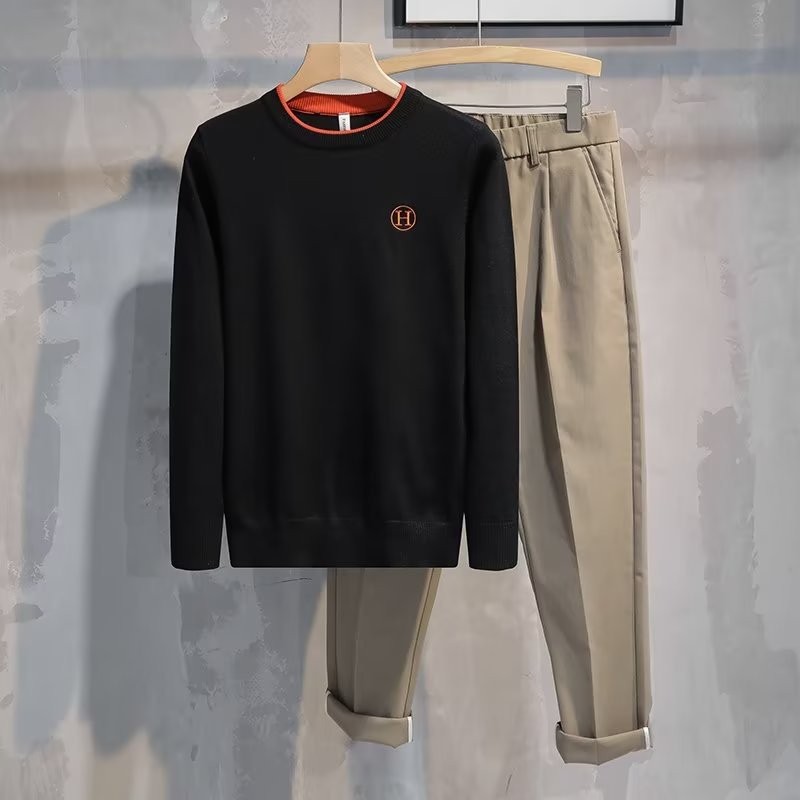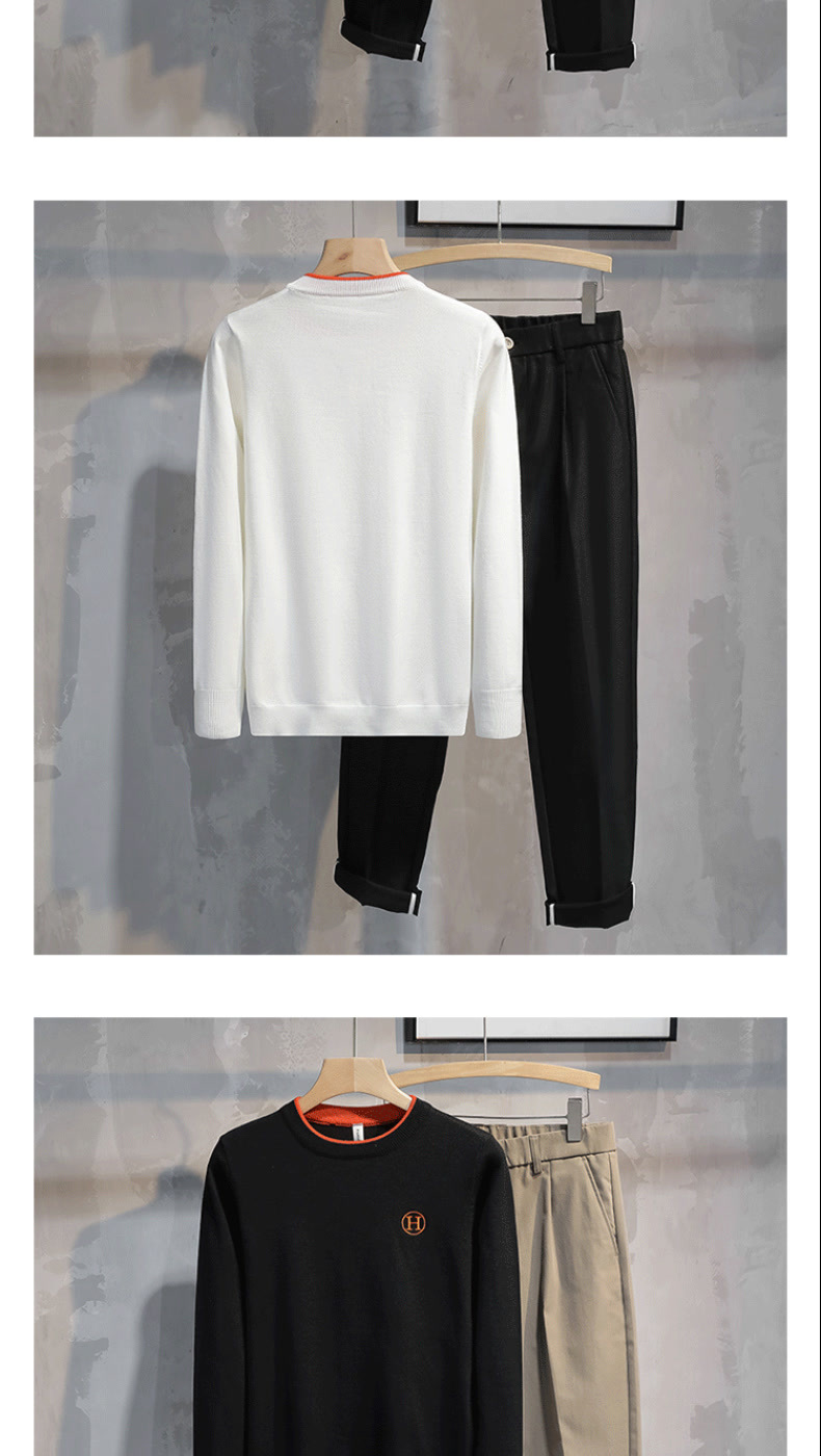 가슴에 자수 문자가 있는 트렌디한 브랜드, 패셔너블하고 심플한 라운드넥 따뜻한 스웨터, 가을 겨울 젊고 고급스러운 남성용 다용도 스웨터스토어 가기