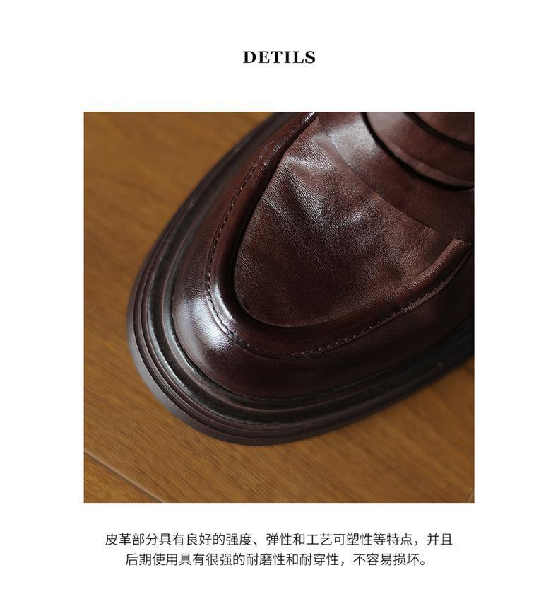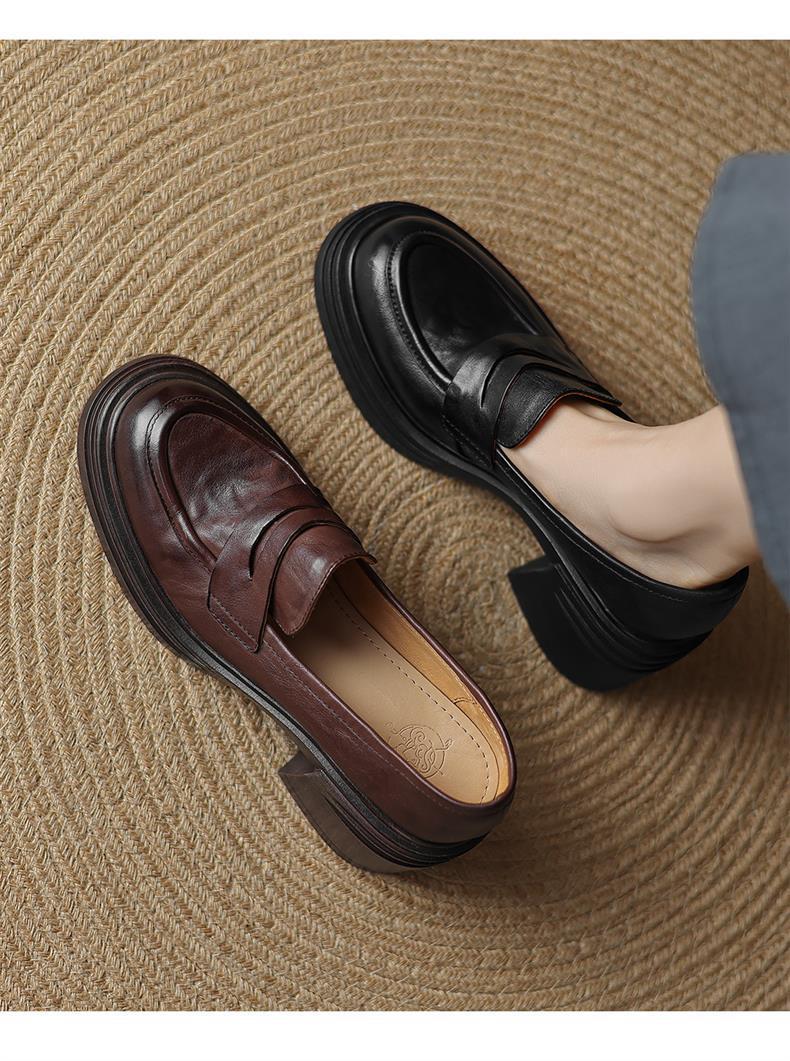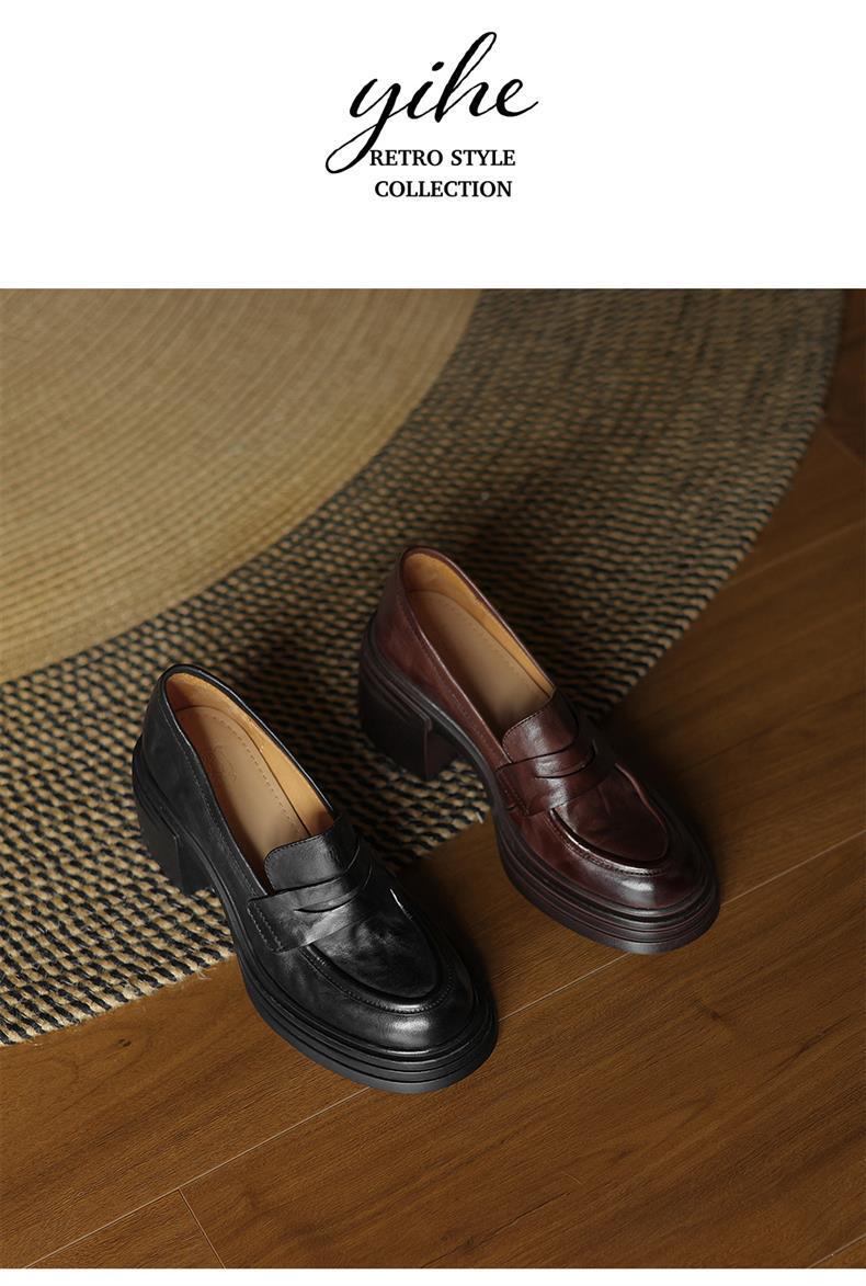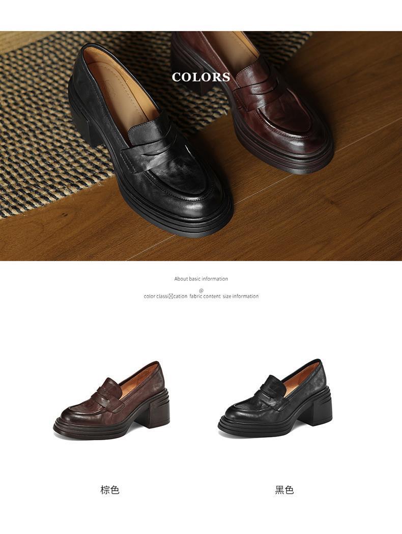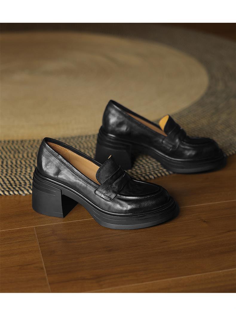 재고 있음~7cm! 레트로 빠른 시간 새로운 스타일의 정품 가죽 신발 여성 두꺼운 굽 두꺼운 밑창 작은 가죽 신발 프랑스 하이힐스토어 가기
