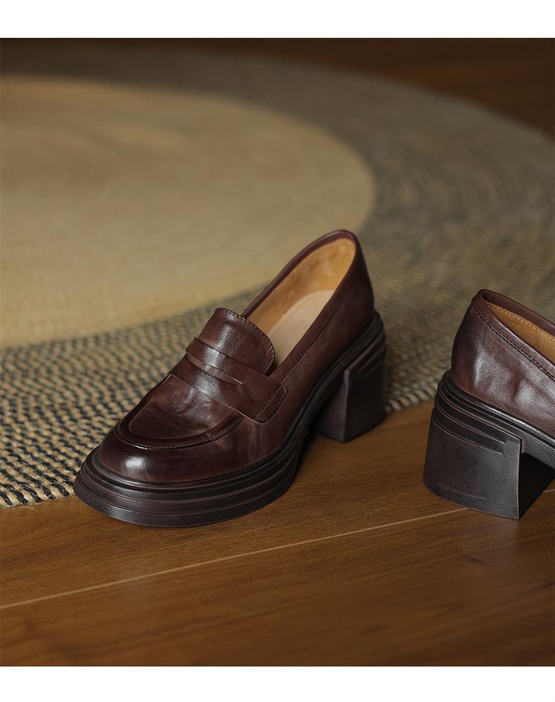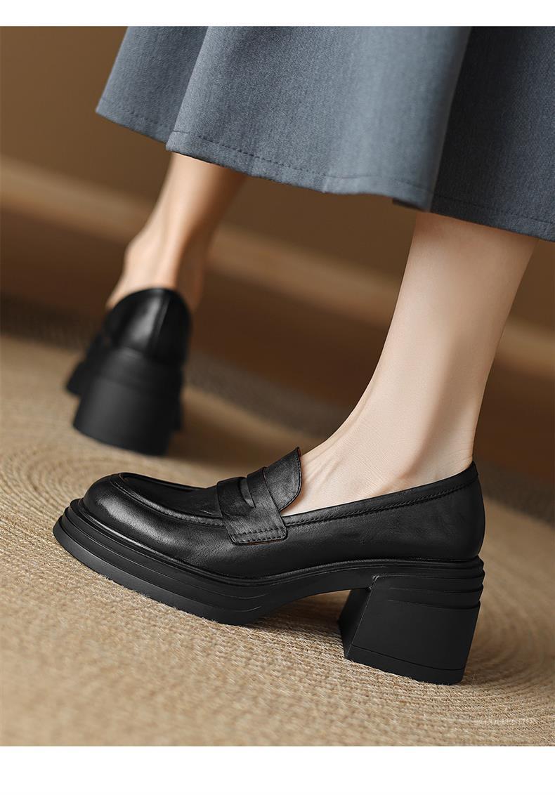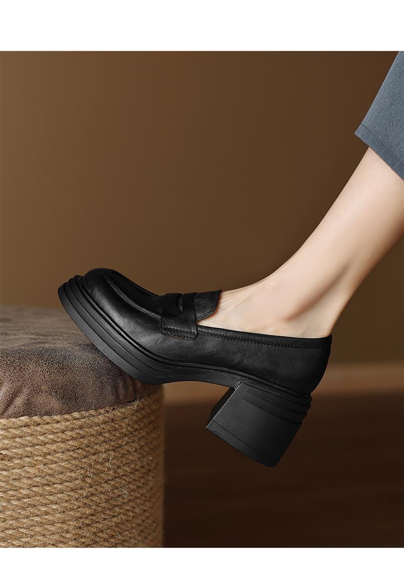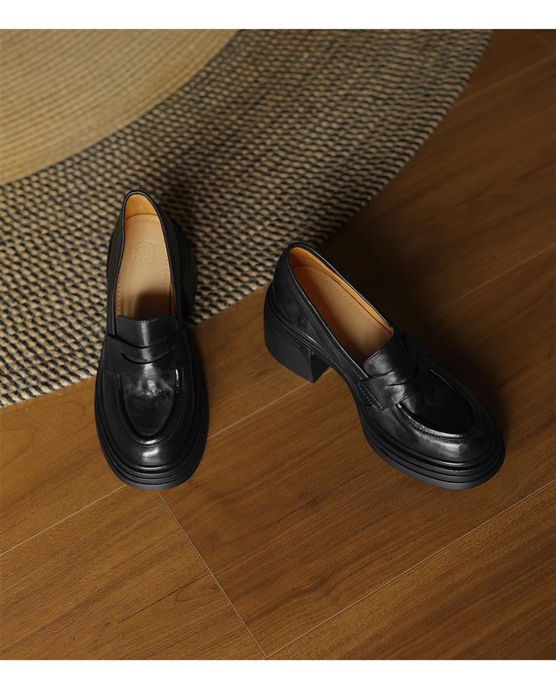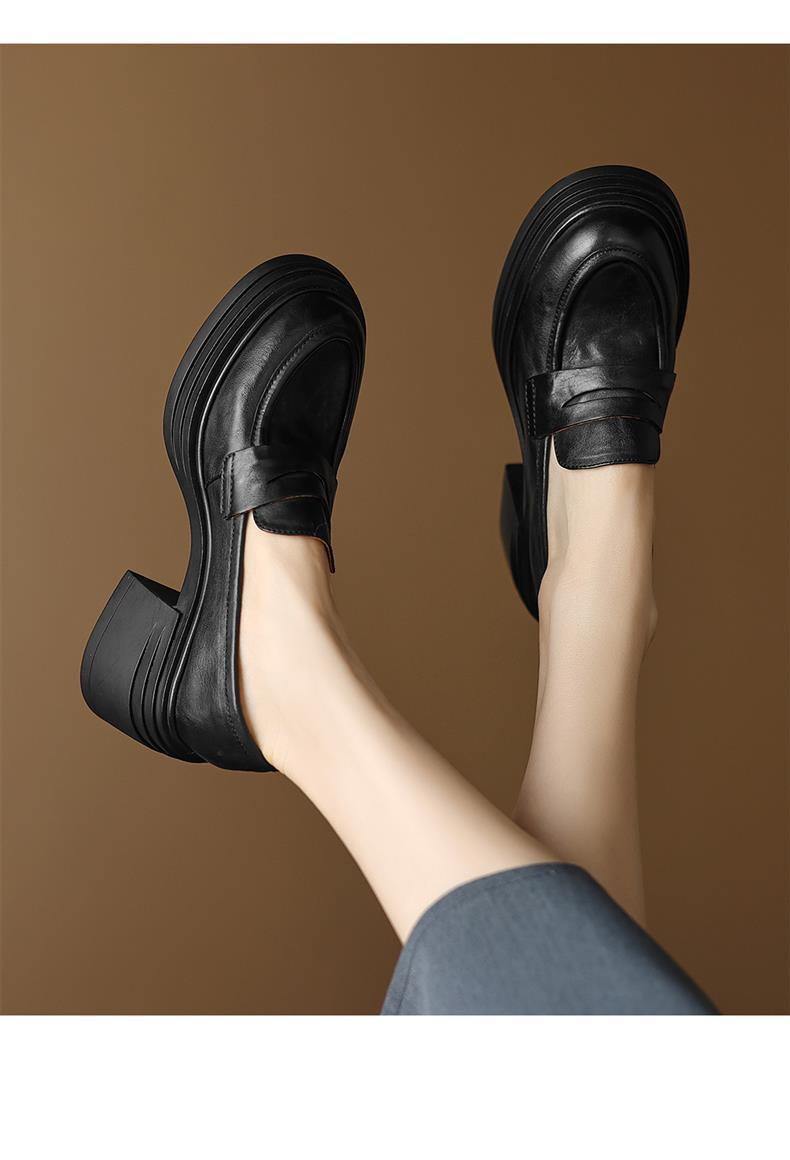 재고 있음~7cm! 레트로 빠른 시간 새로운 스타일의 정품 가죽 신발 여성 두꺼운 굽 두꺼운 밑창 작은 가죽 신발 프랑스 하이힐스토어 가기