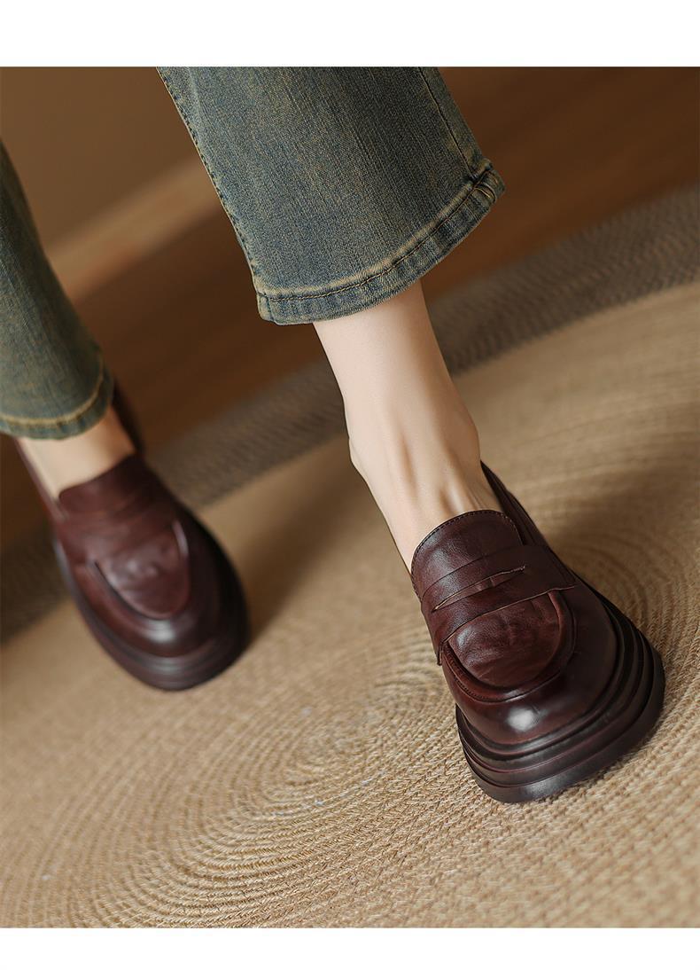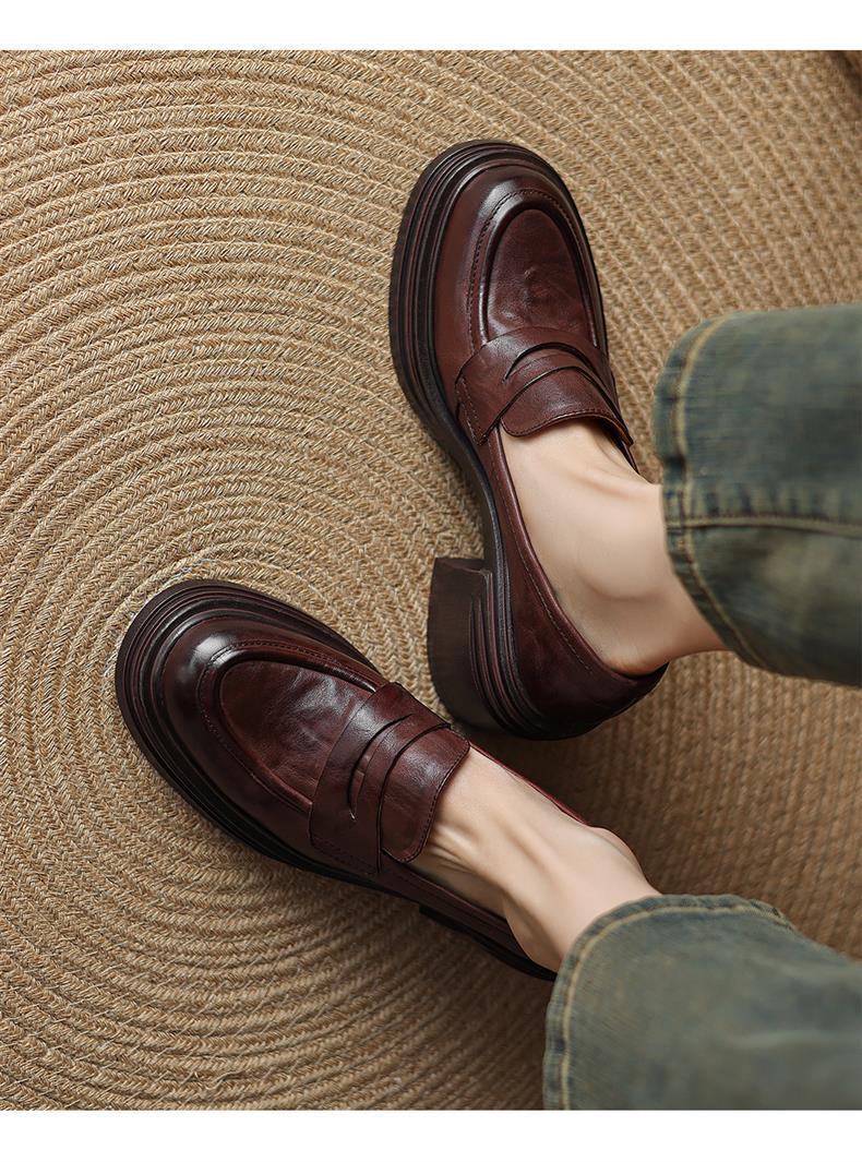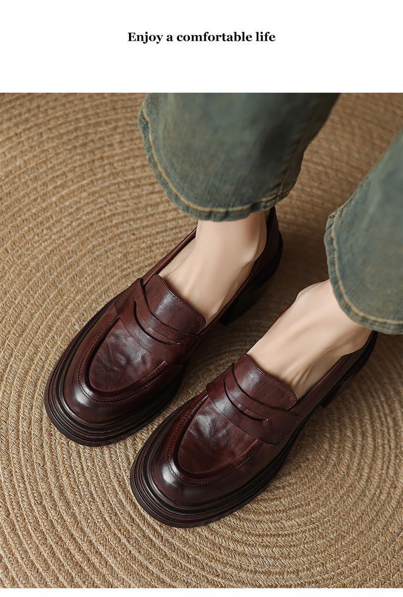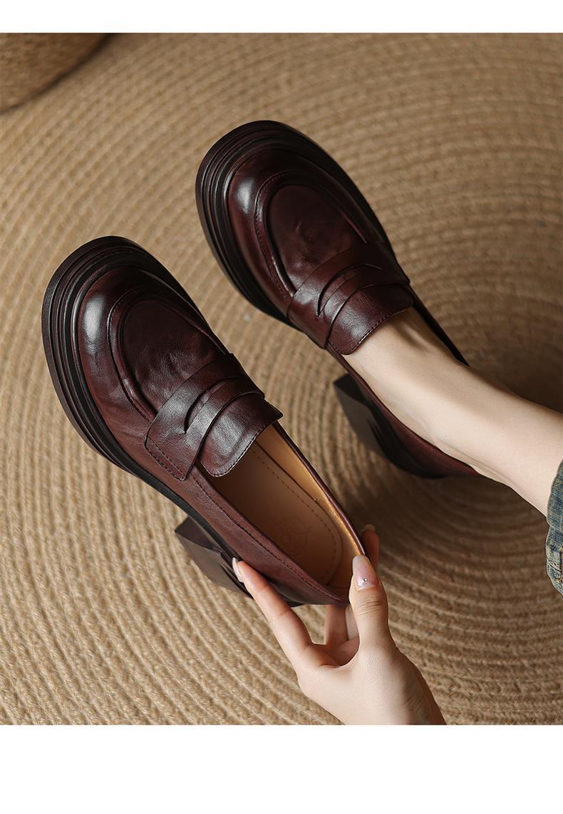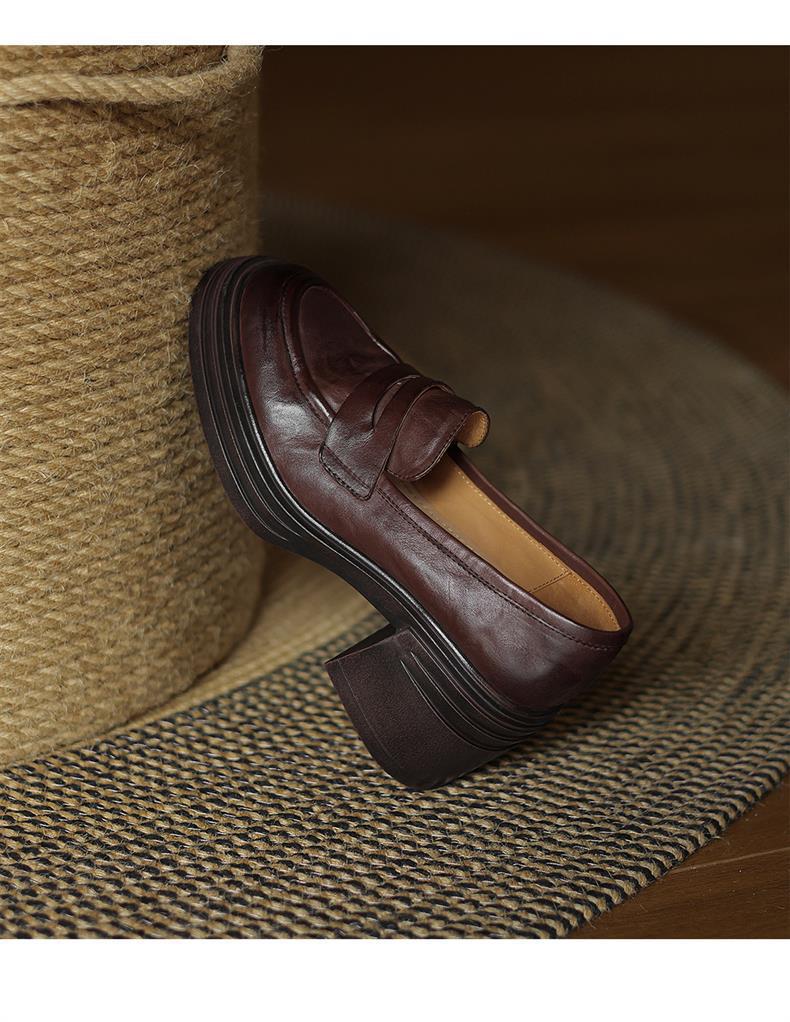 재고 있음~7cm! 레트로 빠른 시간 새로운 스타일의 정품 가죽 신발 여성 두꺼운 굽 두꺼운 밑창 작은 가죽 신발 프랑스 하이힐스토어 가기