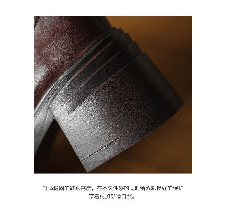 재고 있음~7cm! 레트로 빠른 시간 새로운 스타일의 정품 가죽 신발 여성 두꺼운 굽 두꺼운 밑창 작은 가죽 신발 프랑스 하이힐