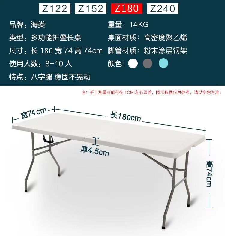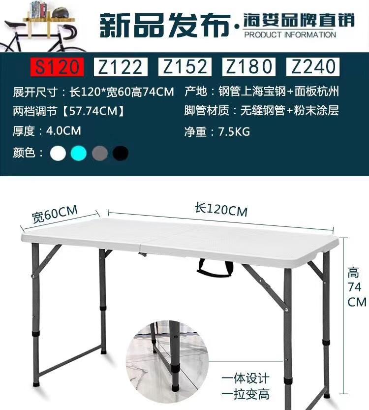 휴대용 간단한 야외 식탁과 의자 테이블 회의 긴 테이블 노점 직사각형 접이식 테이블 식탁 가정용스토어 가기