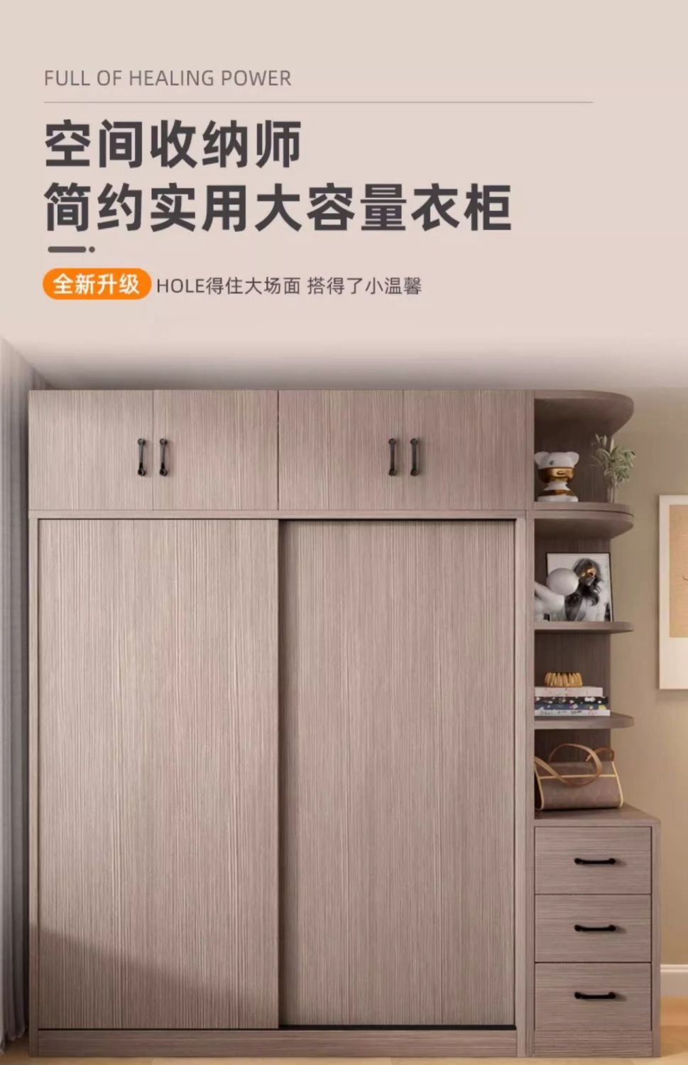 Zhenyu 전체 단단한 나무 옷장 홈 침실 슬라이딩 도어 임대 간단한 캐비닛 어린이 보관 코트 캐비닛