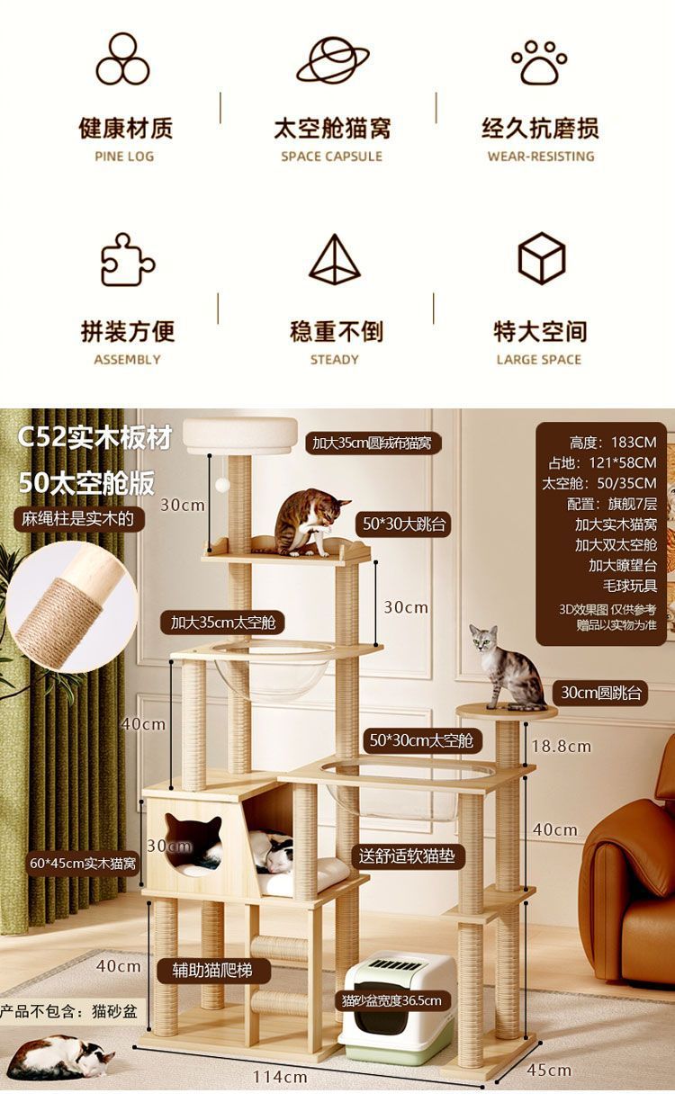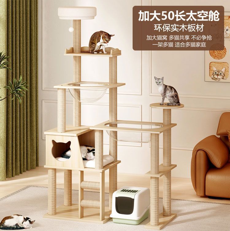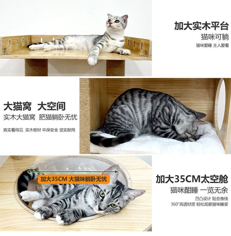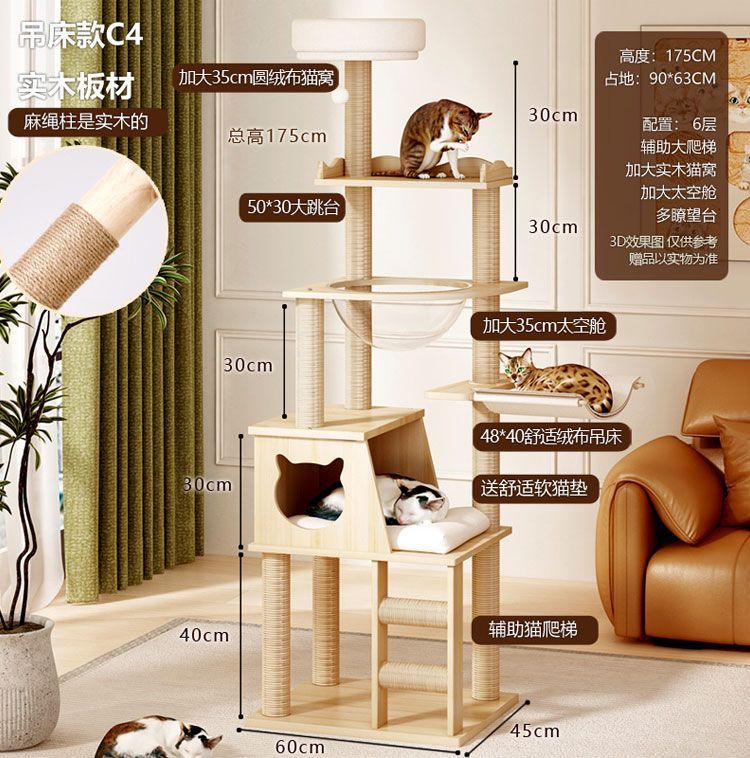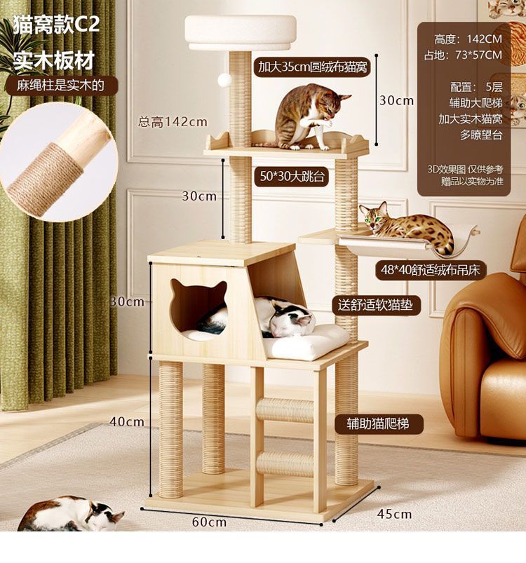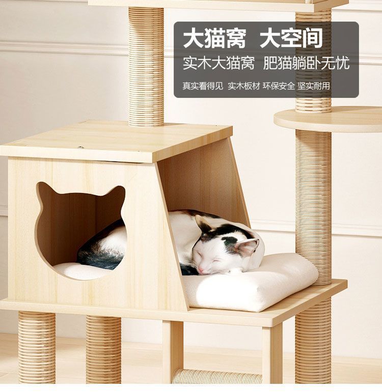 대형 고양이 클라이밍 프레임, 고양이 둥지, 고양이 트리 일체형 사계절 원목 사마귀 고양이 클라이밍 프레임, 점프 플랫폼, 고양이 스크래치 보드 용품스토어 가기