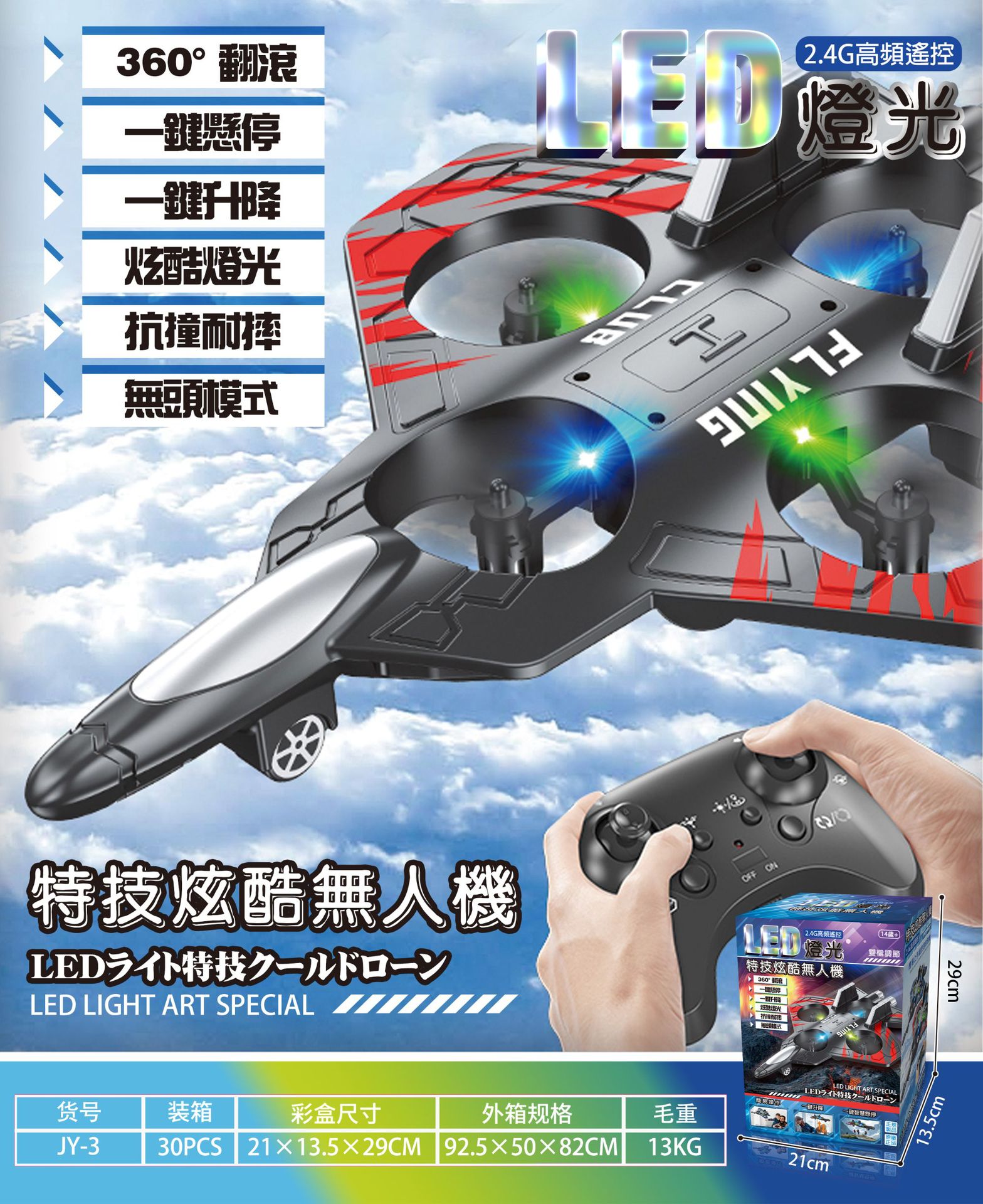 국경 간 원격 제어 거품 항공기 드론 4축 서스펜션 전투기 고정 높이 롤링 스턴트 장난감 다채로운 조명