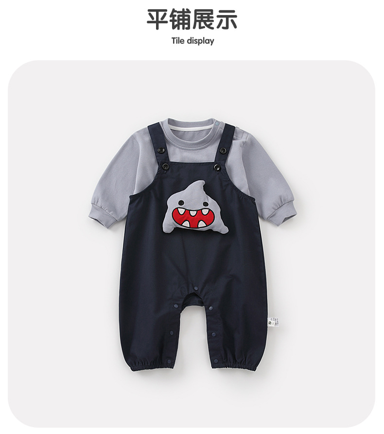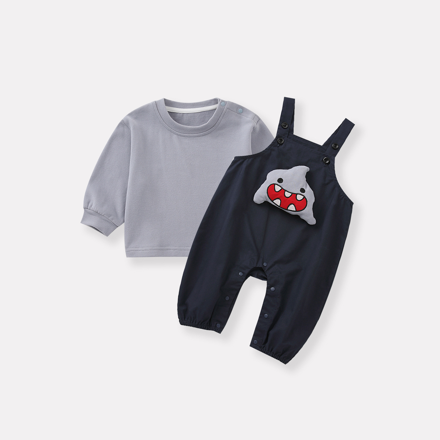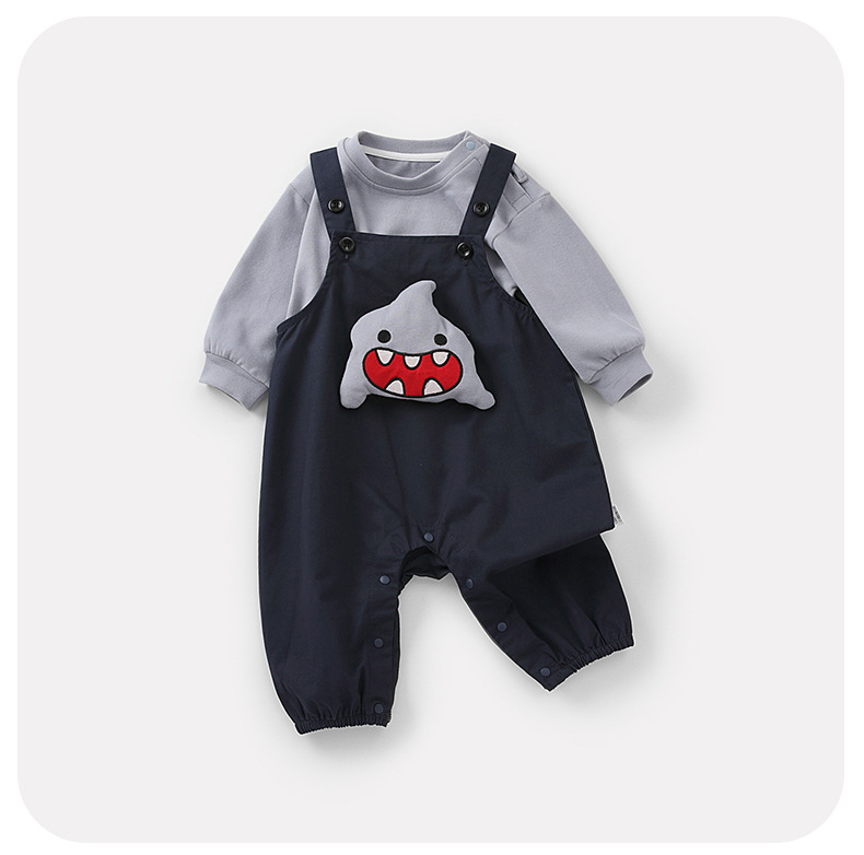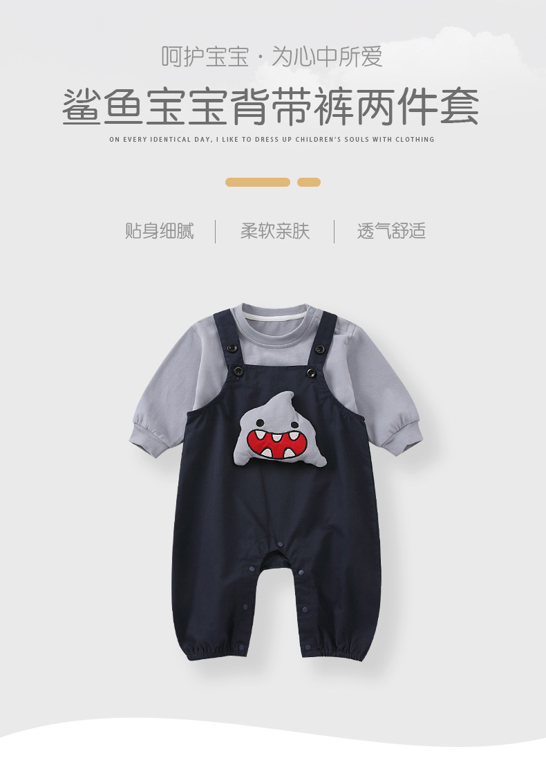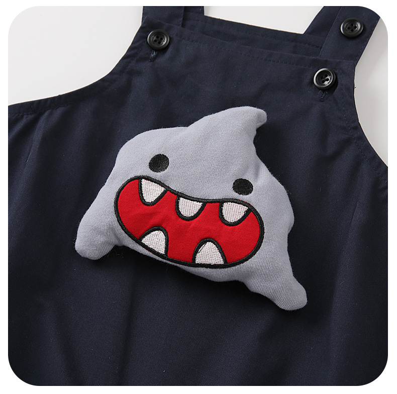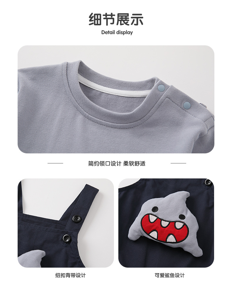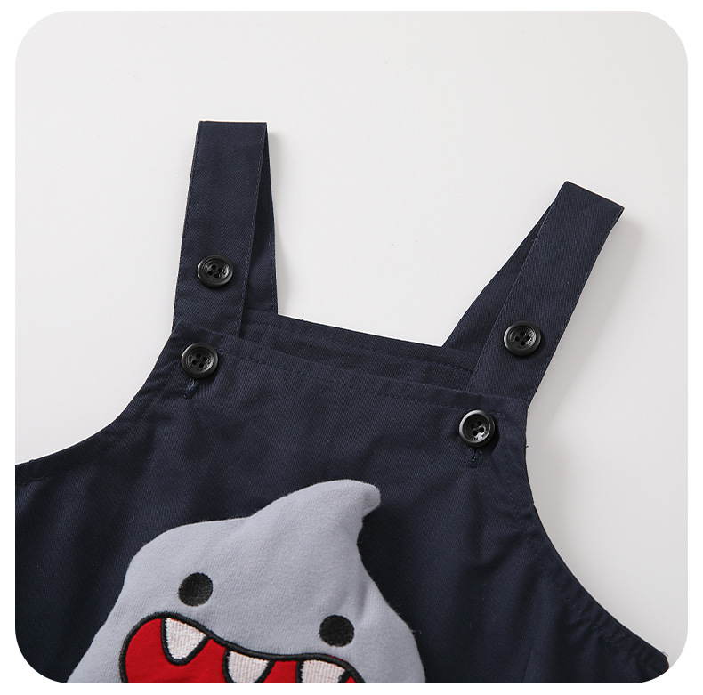 영유아 2025 가을 신상 샤크 작업복 세트 아기 하의 셔츠 귀여운 한국식 투피스 세트