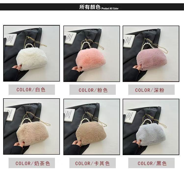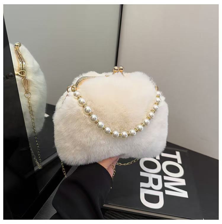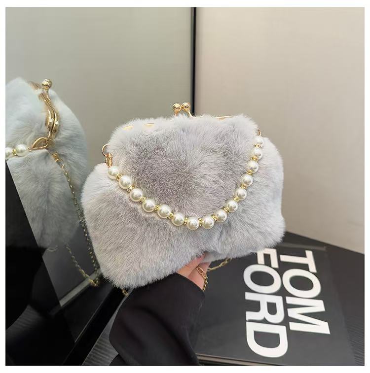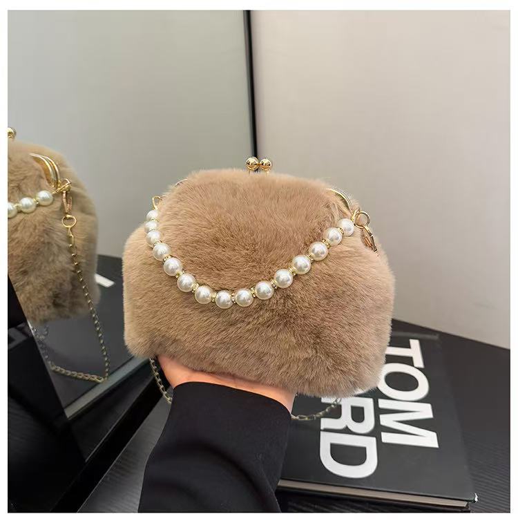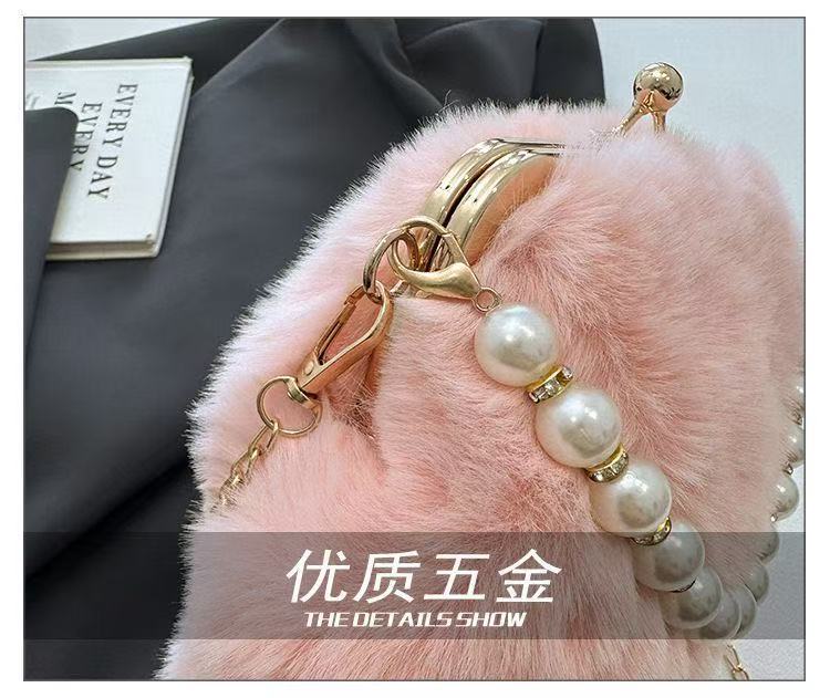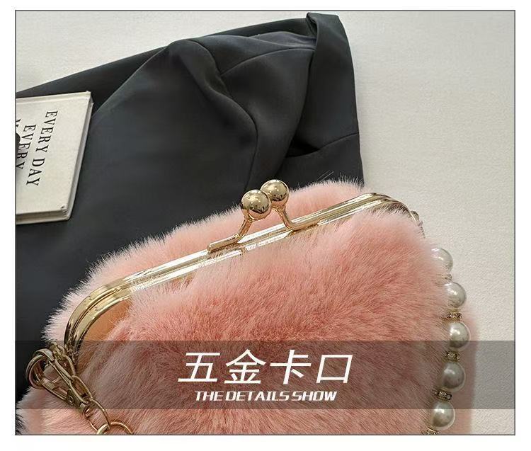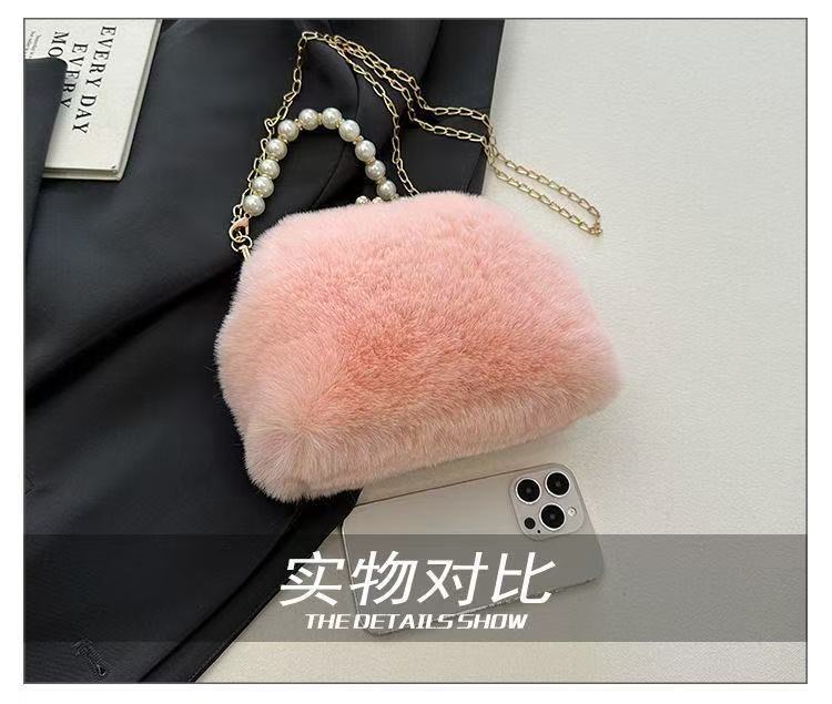 크로스보더 가을 겨울 진주 클립 플러시 핸드백, 패셔너블하고 다재다능한 체인 백, 여성용 싱글 숄더 크로스바디 백, 작은 향기 스타일
