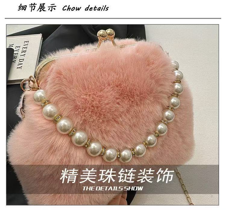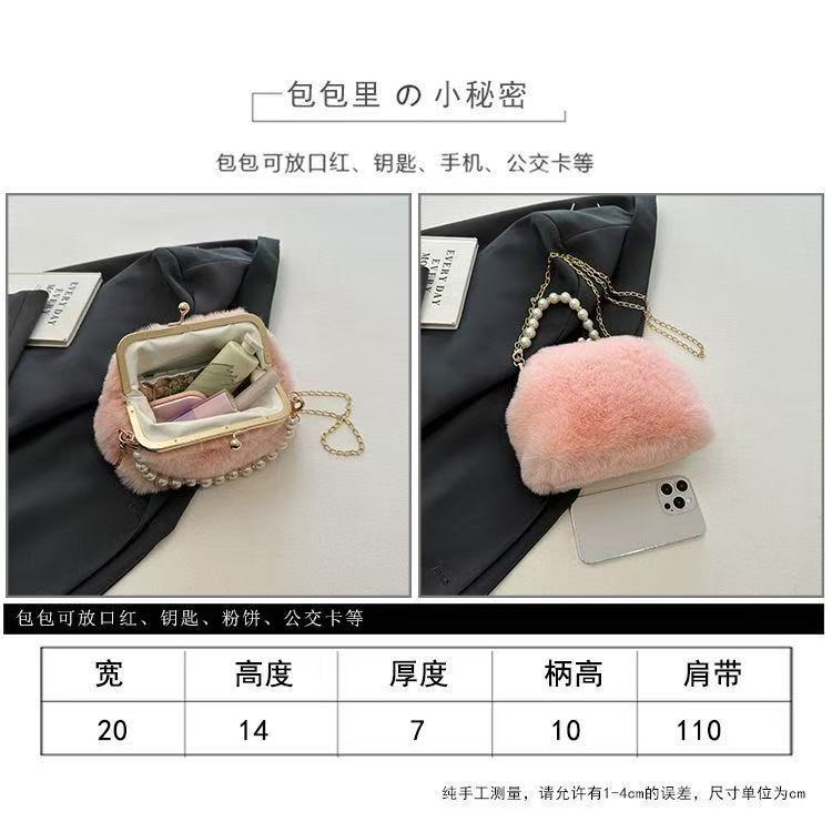 크로스보더 가을 겨울 진주 클립 플러시 핸드백, 패셔너블하고 다재다능한 체인 백, 여성용 싱글 숄더 크로스바디 백, 작은 향기 스타일스토어 가기