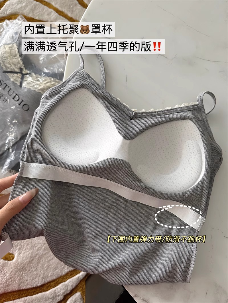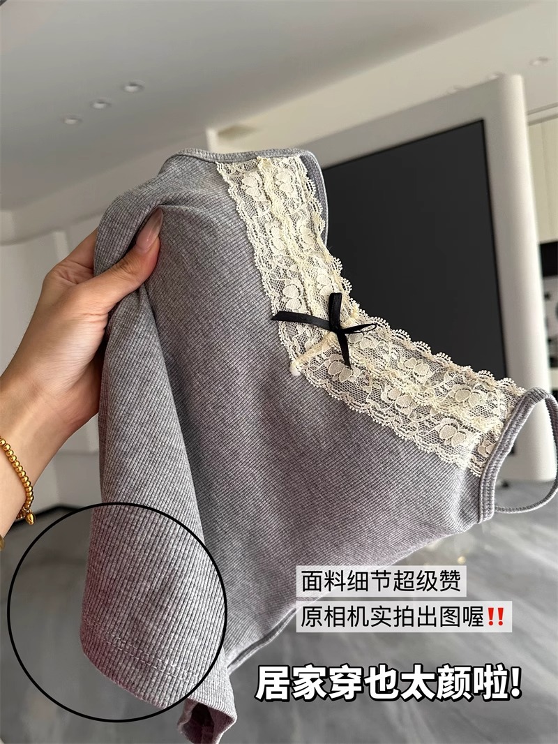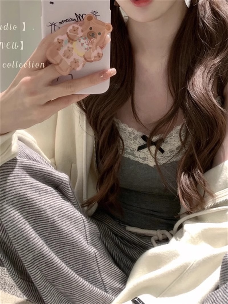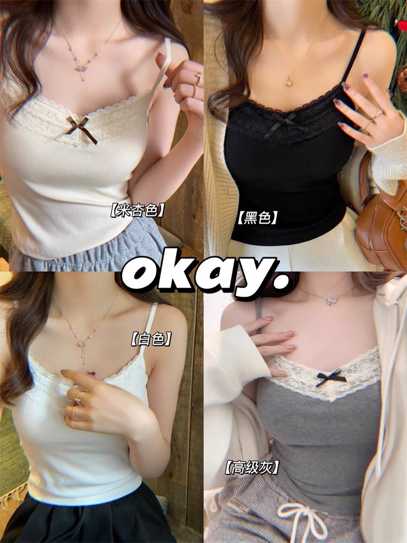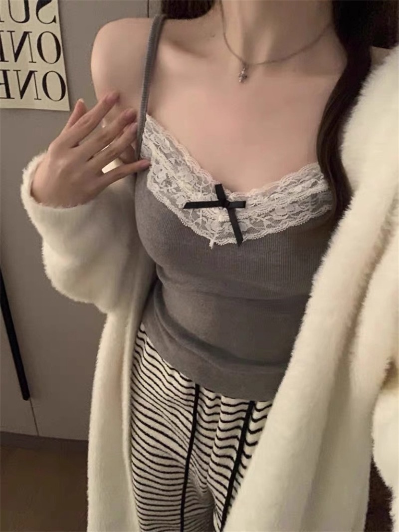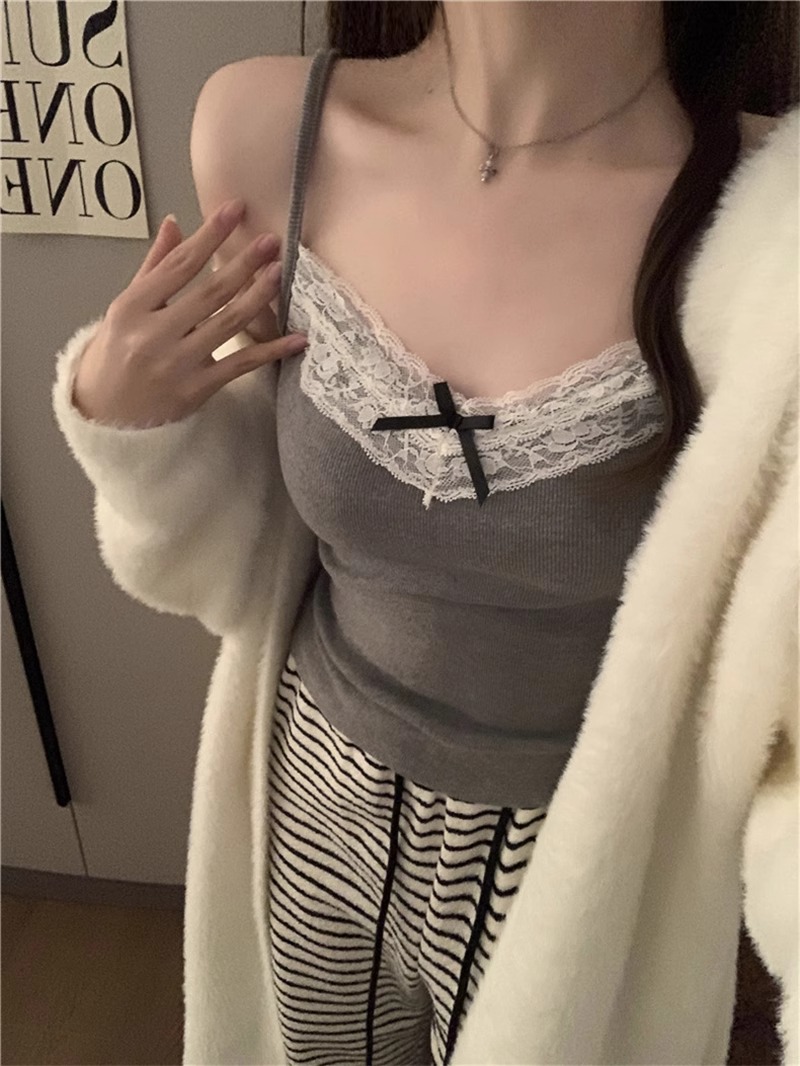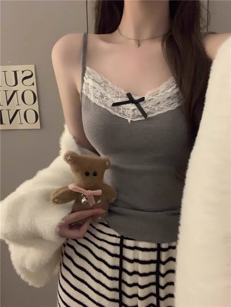 가슴 패드가 있는 여성용 순수 레이스 그레이 캐미솔, 내부 및 외부 착용, 짧은 슬림핏 디자인, 틈새 시장 여성