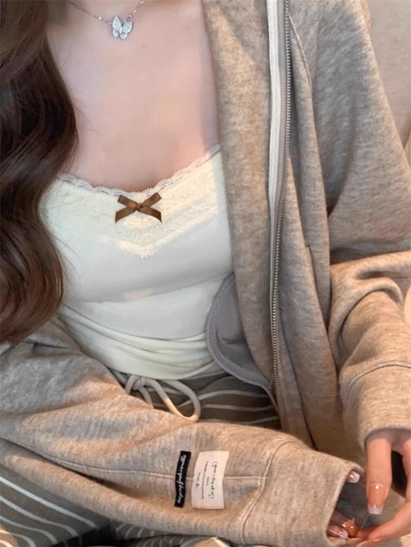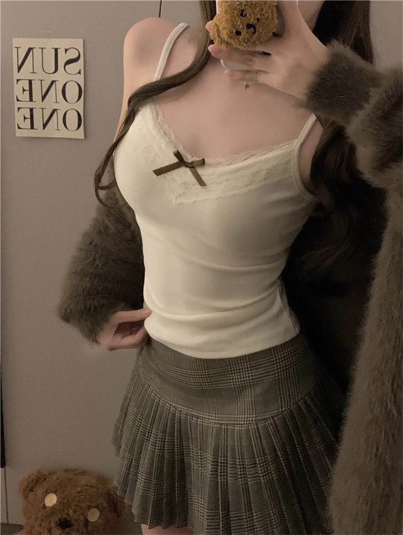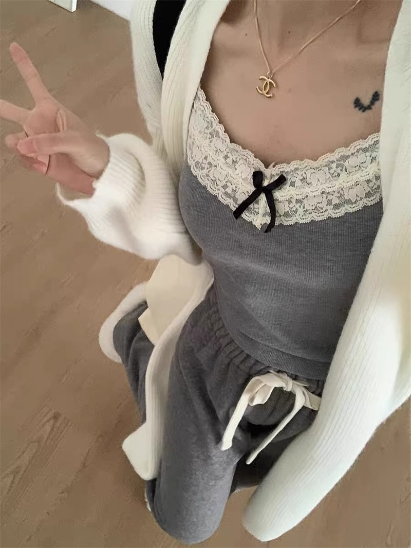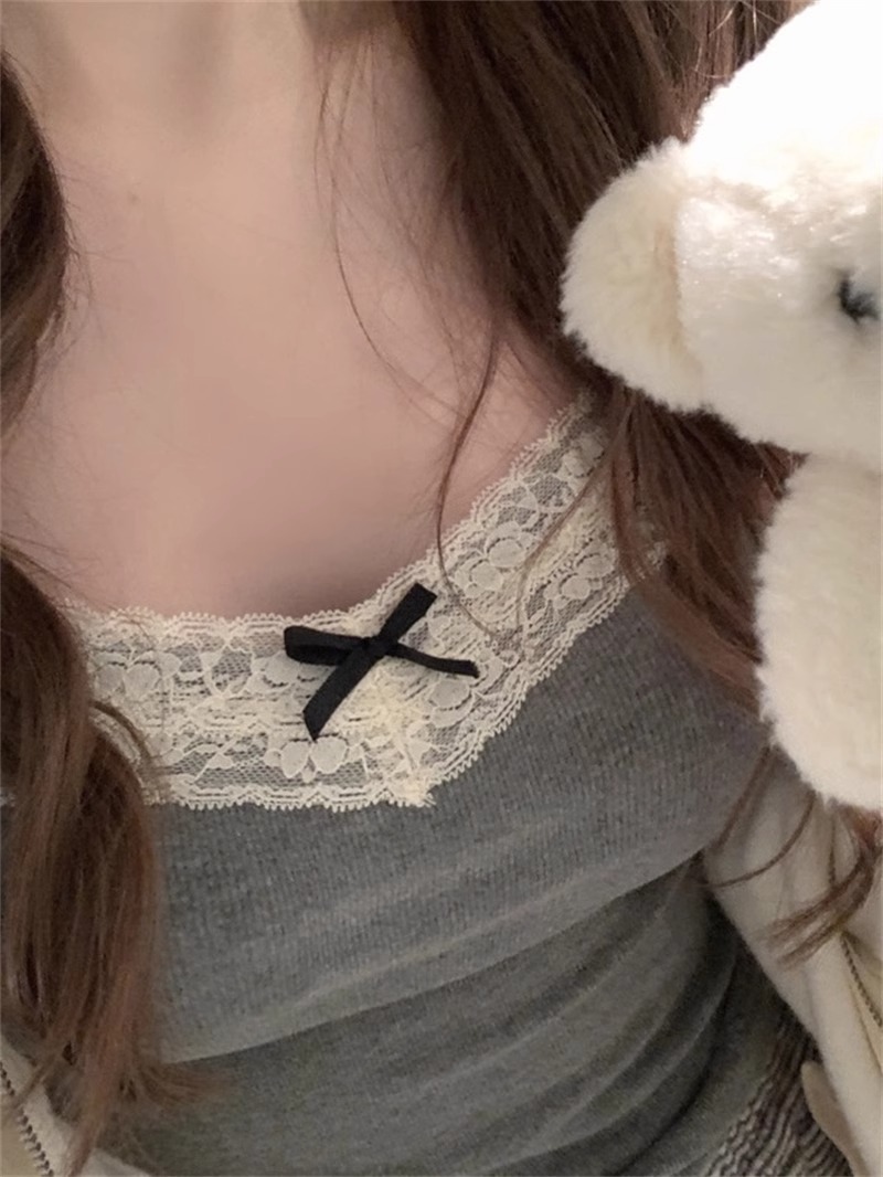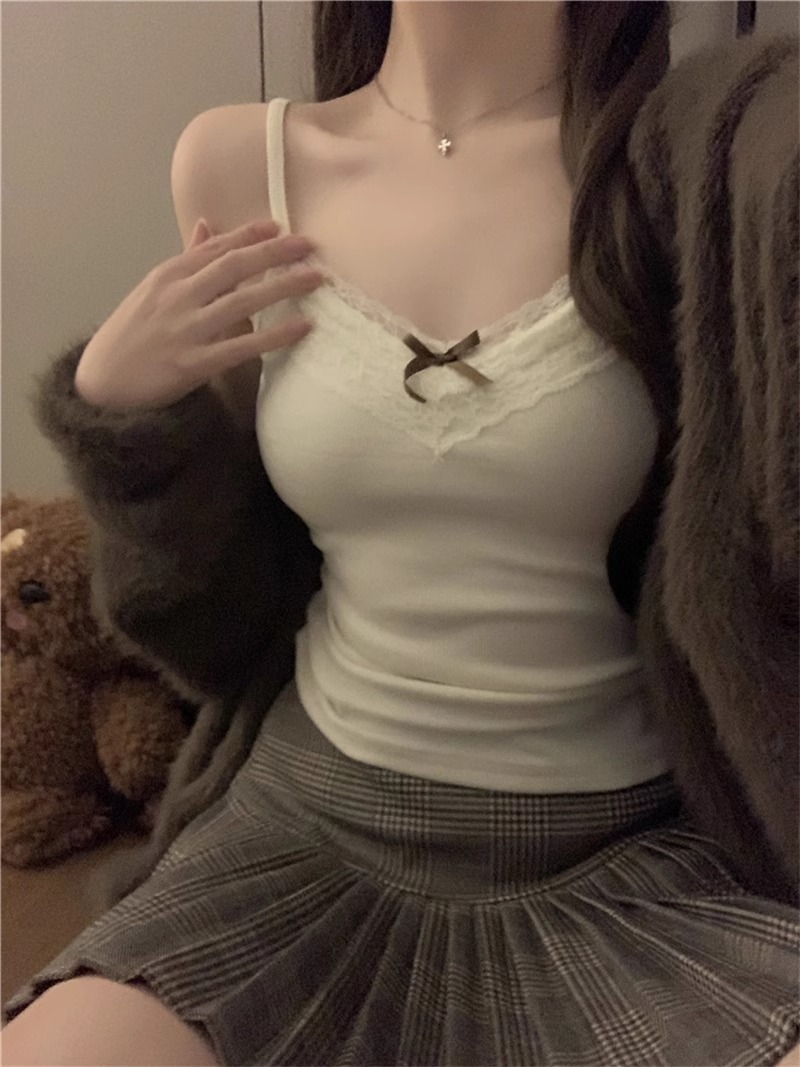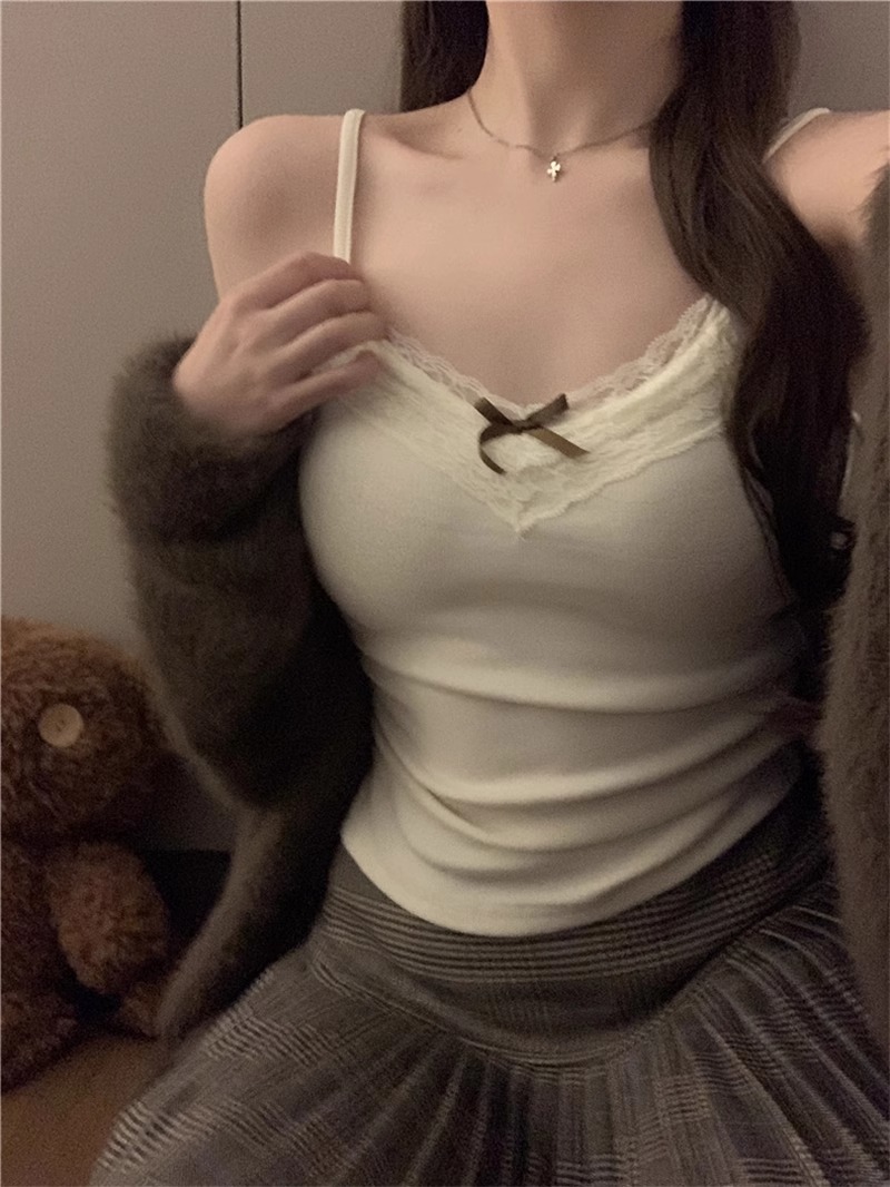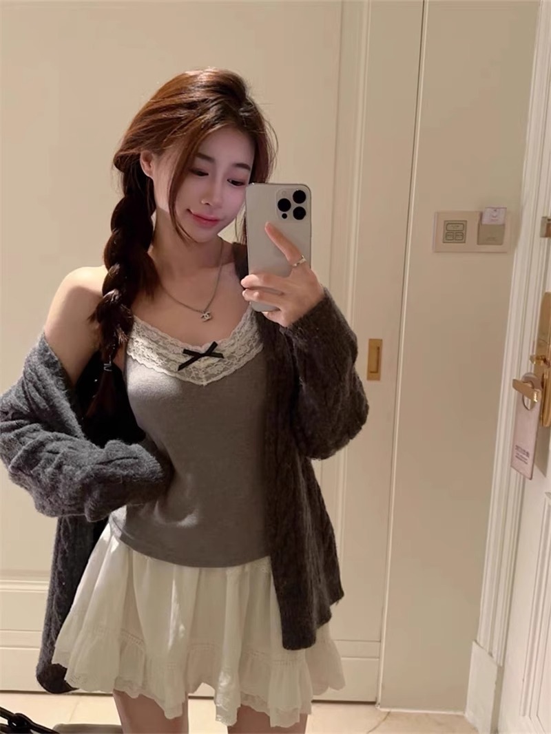 가슴 패드가 있는 여성용 순수 레이스 그레이 캐미솔, 내부 및 외부 착용, 짧은 슬림핏 디자인, 틈새 시장 여성
