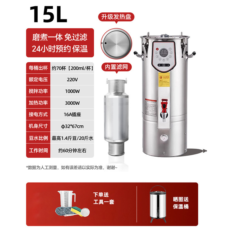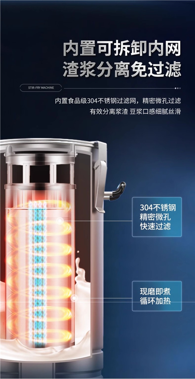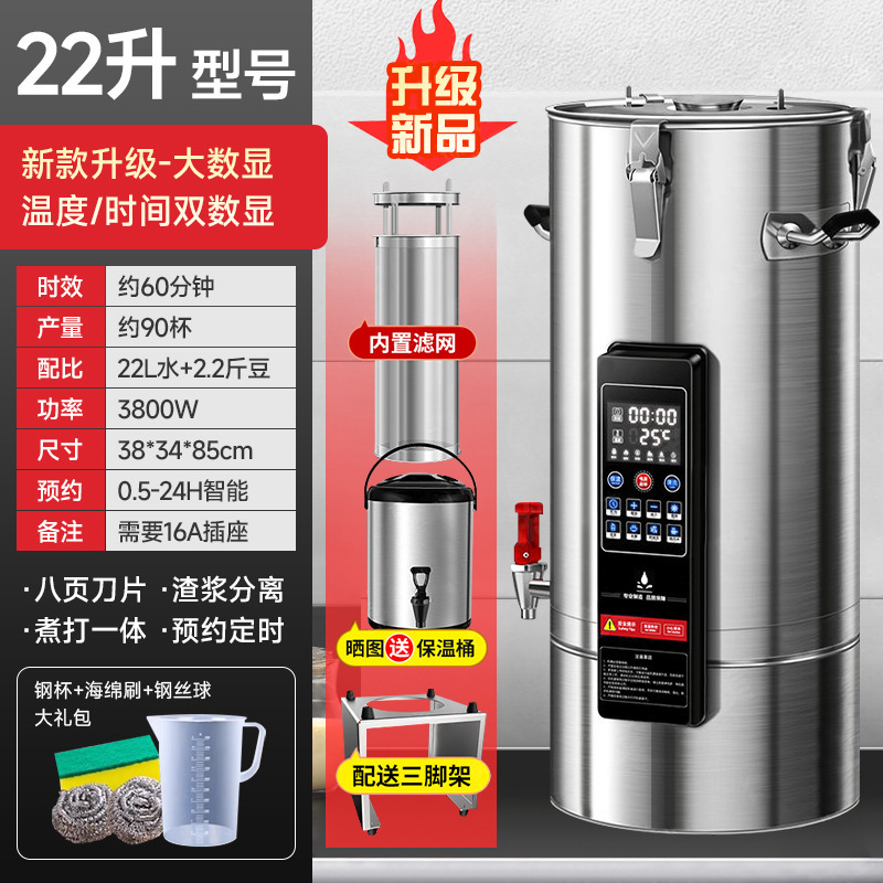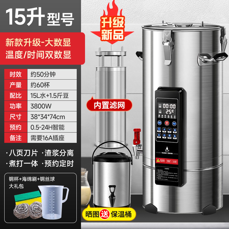 아침 식당용 전자동 상업용 두유 기계, 대용량 자동 예약, 연삭 및 삶기, 올인원 가열 및 필터 프리 연삭 기계