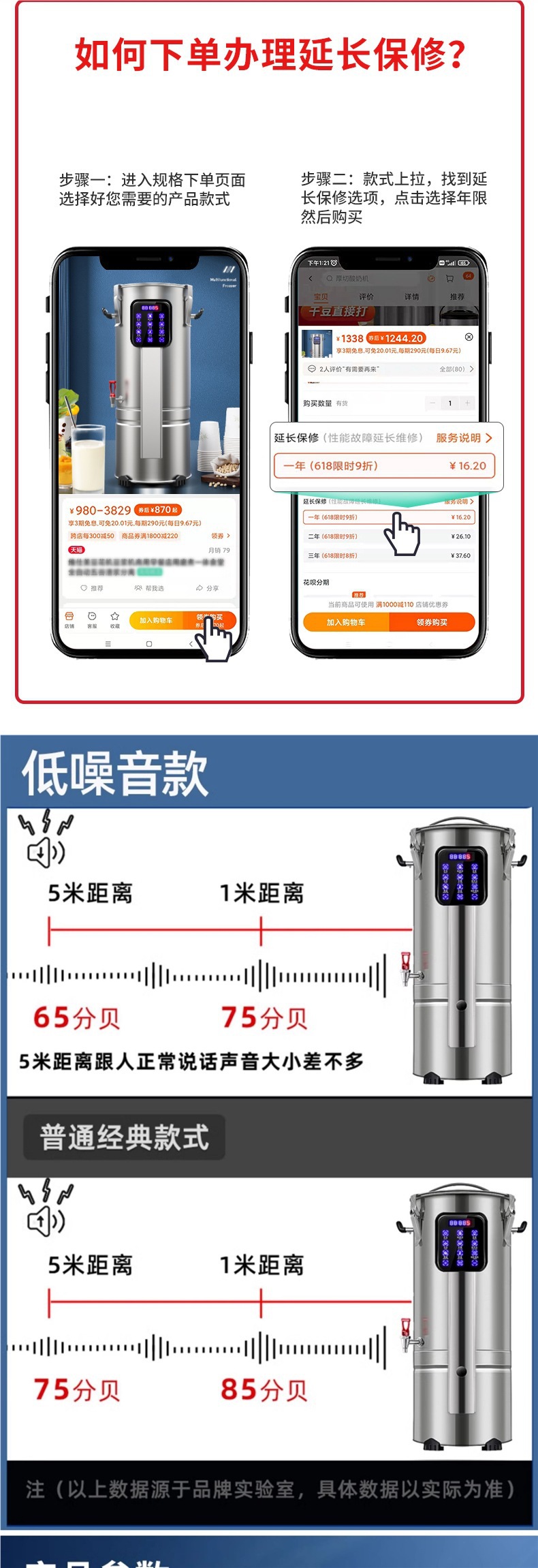 • ↓↓↓소음 감소 + 고농도 모델은 콩을 40% 더 많이 생산할 수 있으며 상업용으로 권장됩니다↓↓↓