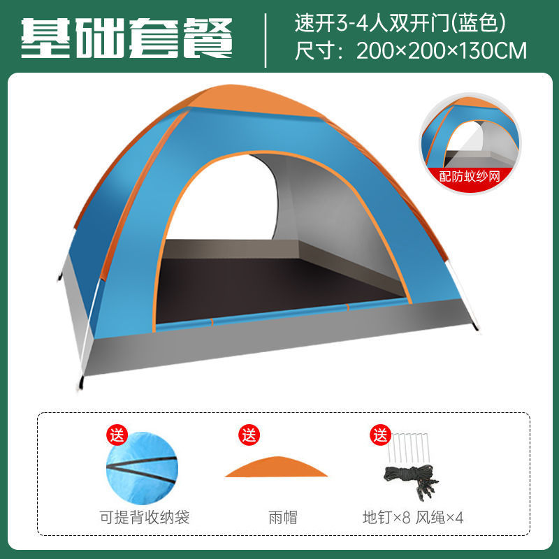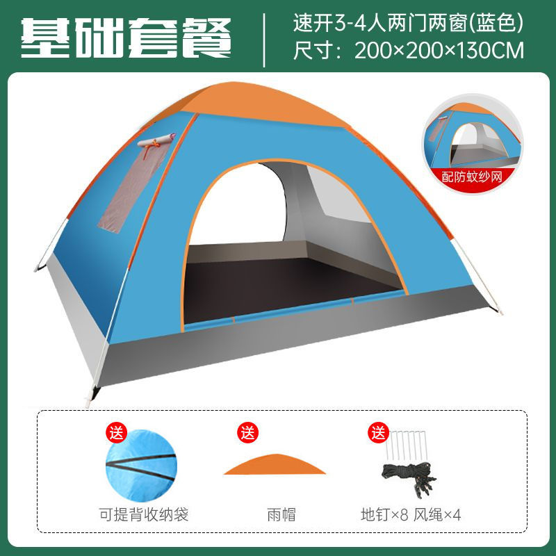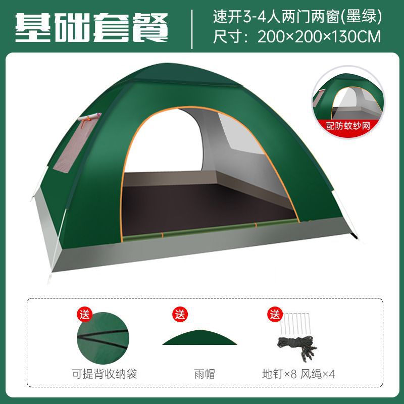 3~4인용 야외 텐트, 완전 자동 캠핑, 2인용, 2인용, 야외용 두꺼운 방수 속성 텐트스토어 가기