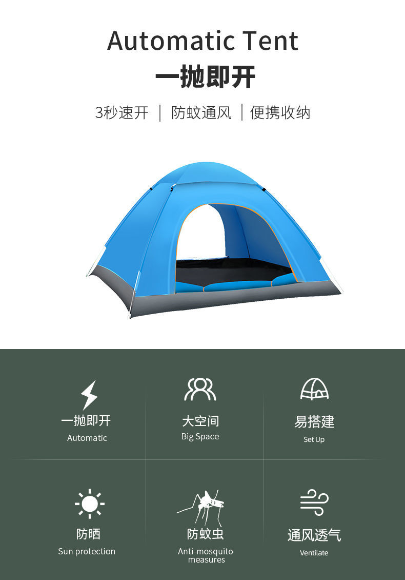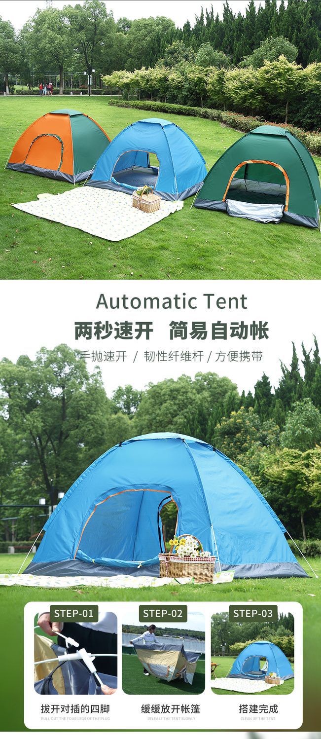 3~4인용 야외 텐트, 완전 자동 캠핑 텐트, 1~2인용 야외용 두꺼운 모기 방지, 빠른 개방형 휴대용스토어 가기