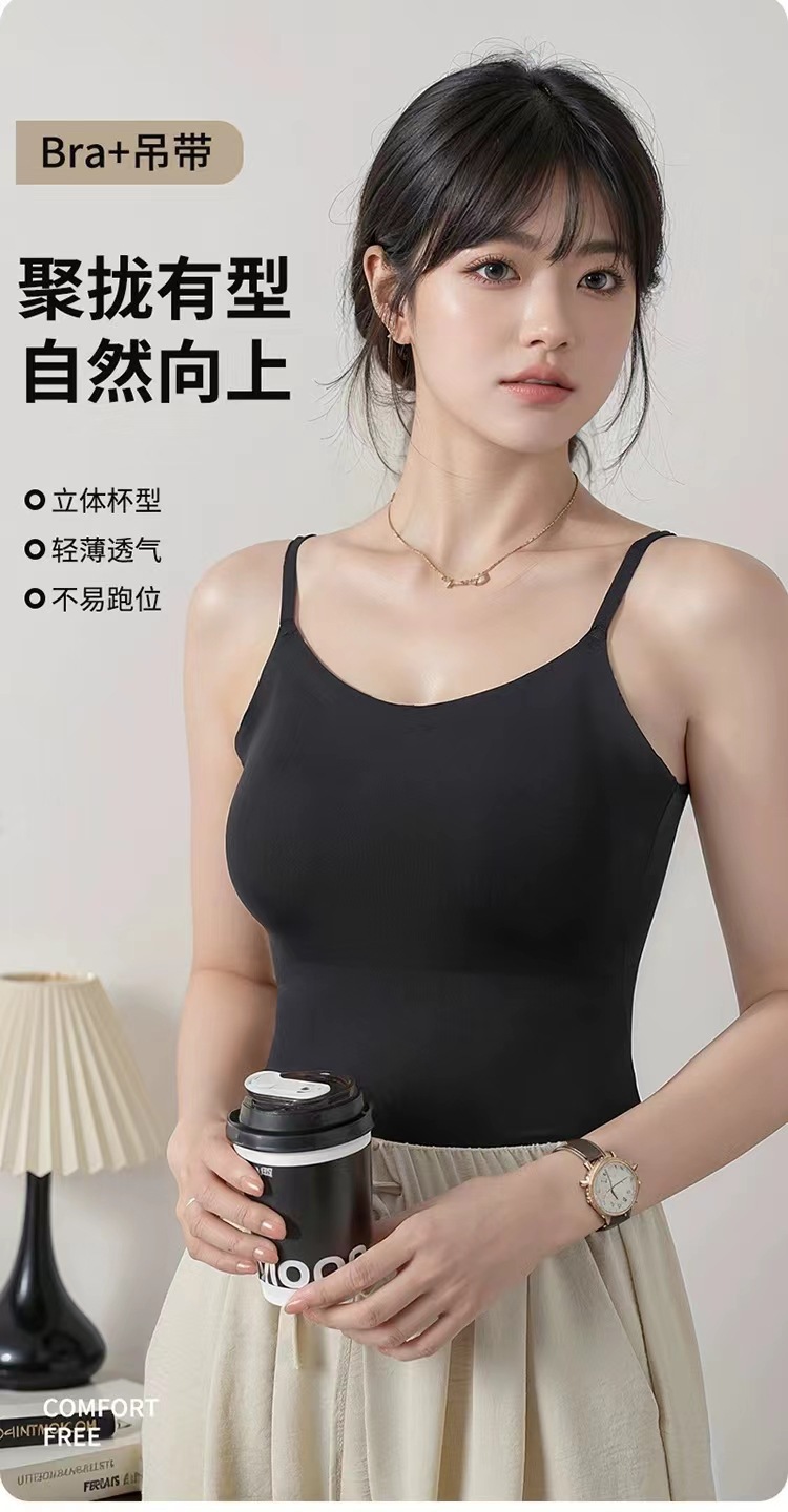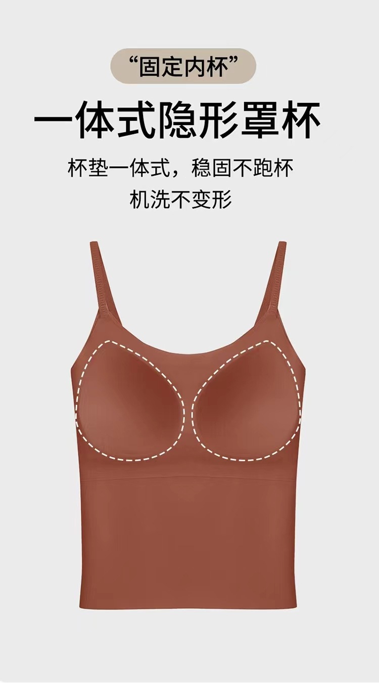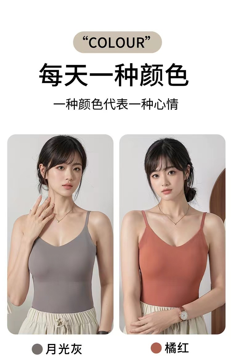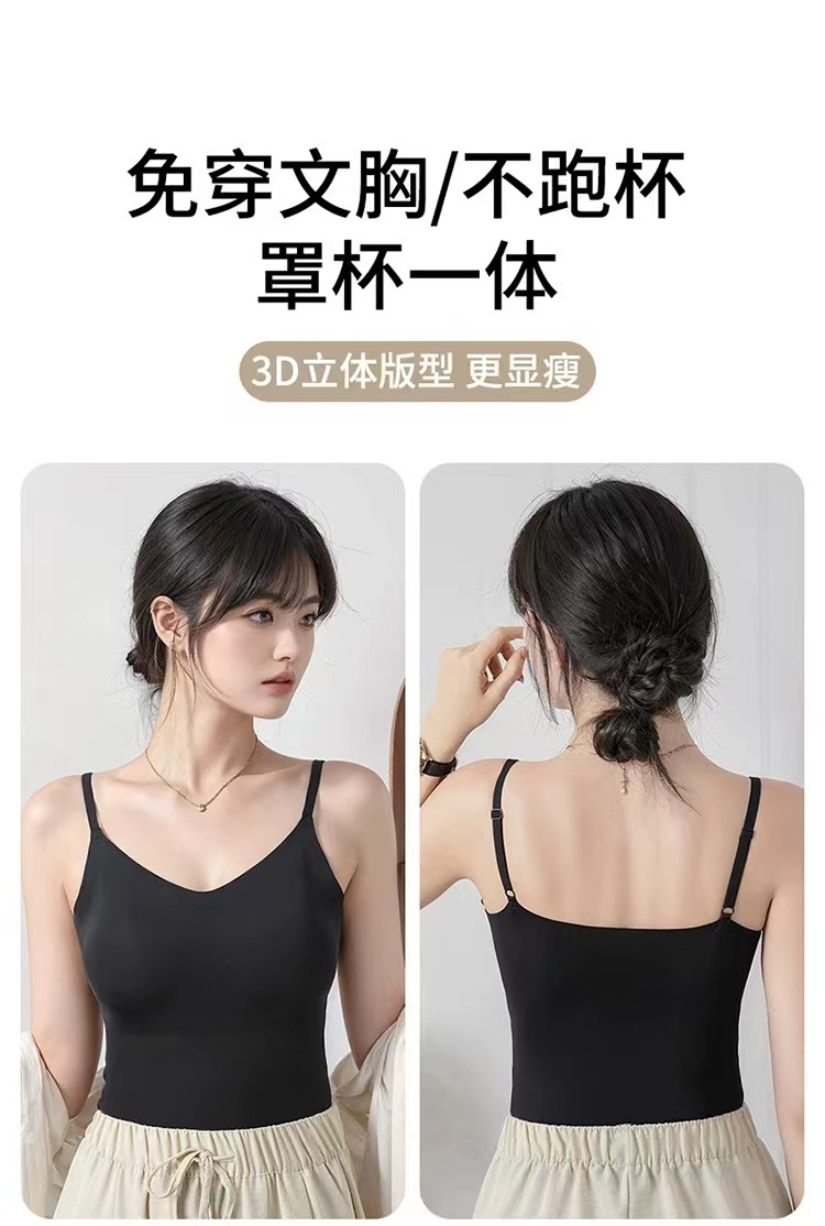 가슴 패드가 있는 새로운 심리스 아이스 실크 캐미솔, 아름다운 등이 내장되어 있고 아름다운 등이 외부에 있고 내부에 착용 가능스토어 가기