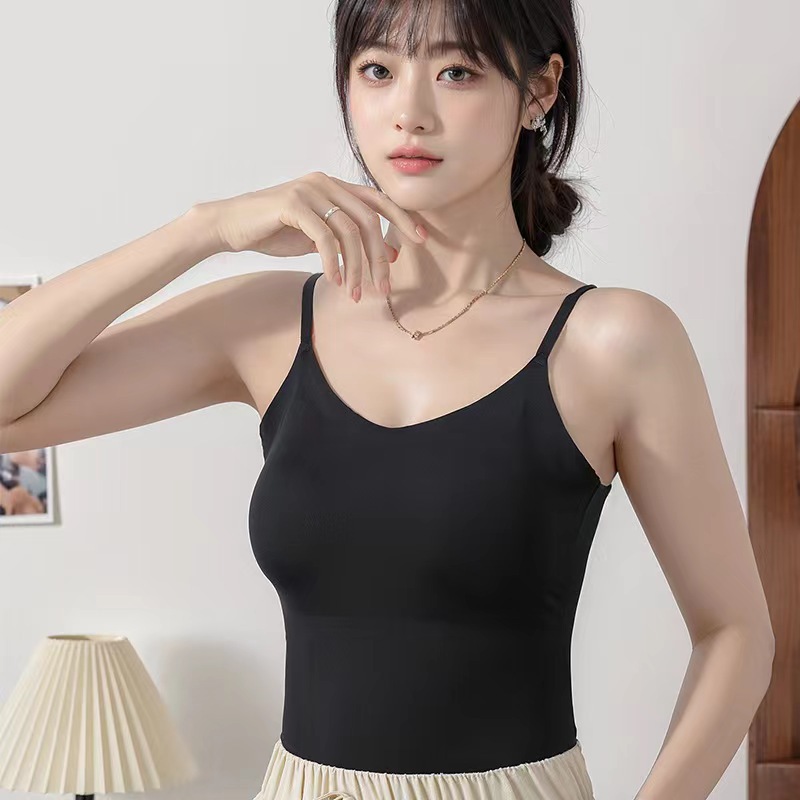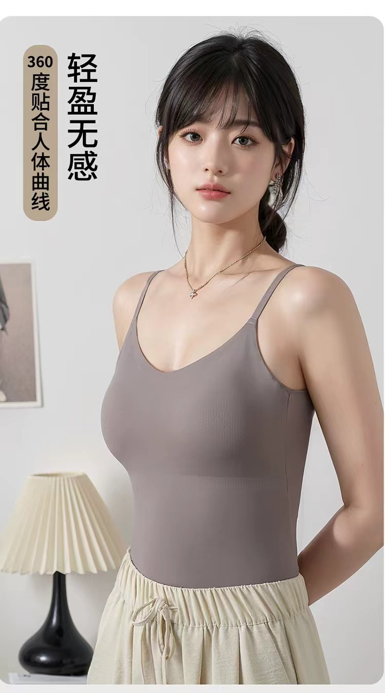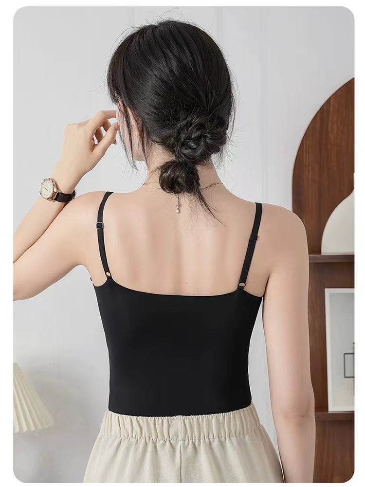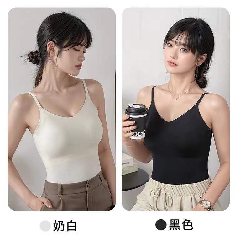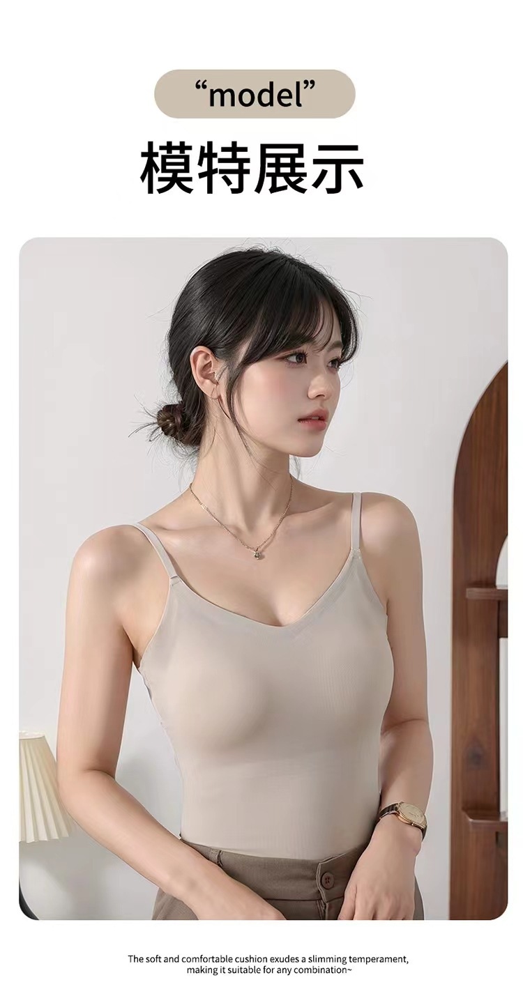 가슴 패드가 있는 새로운 심리스 아이스 실크 캐미솔, 아름다운 등이 내장되어 있고 아름다운 등이 외부에 있고 내부에 착용 가능