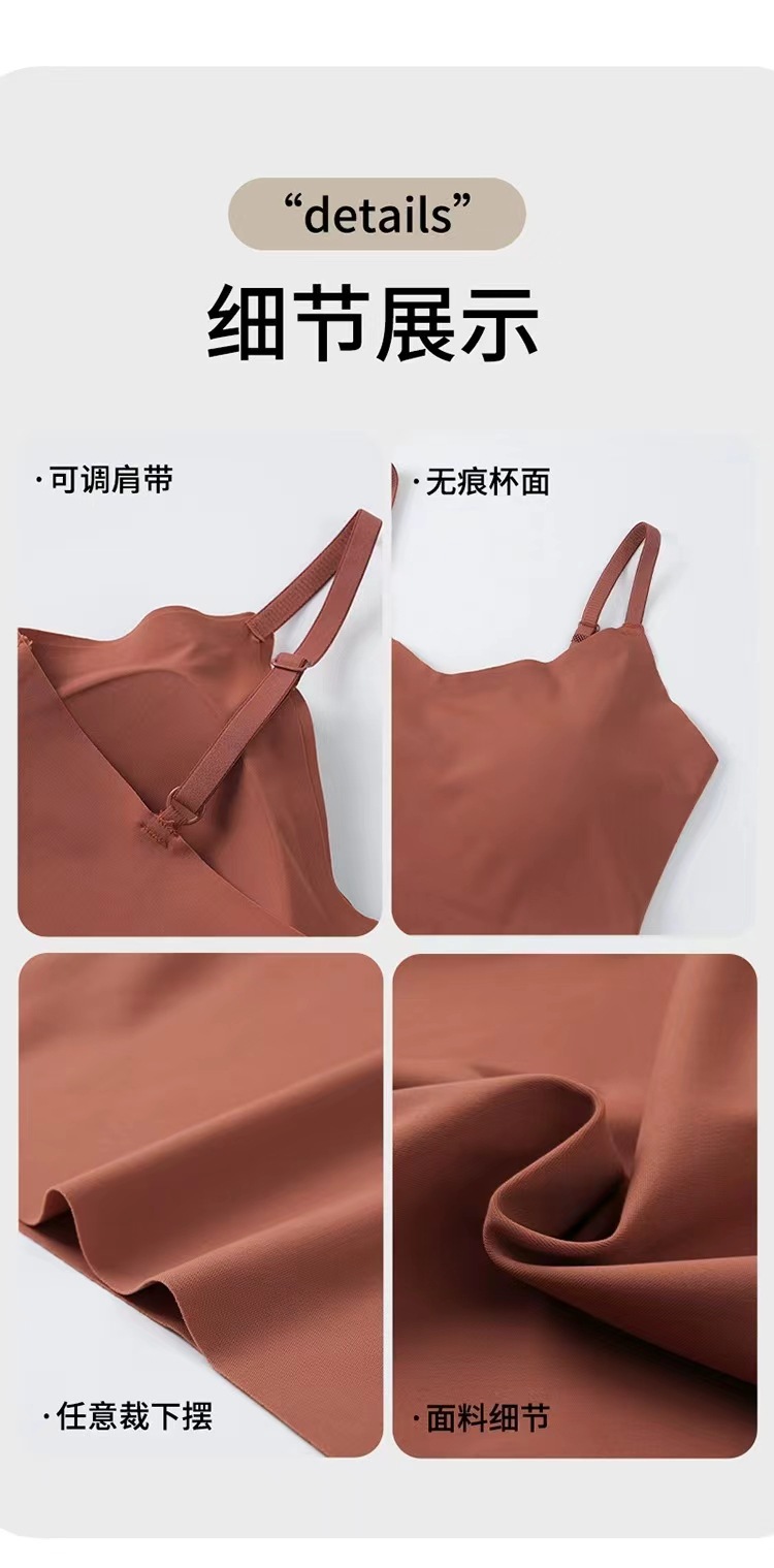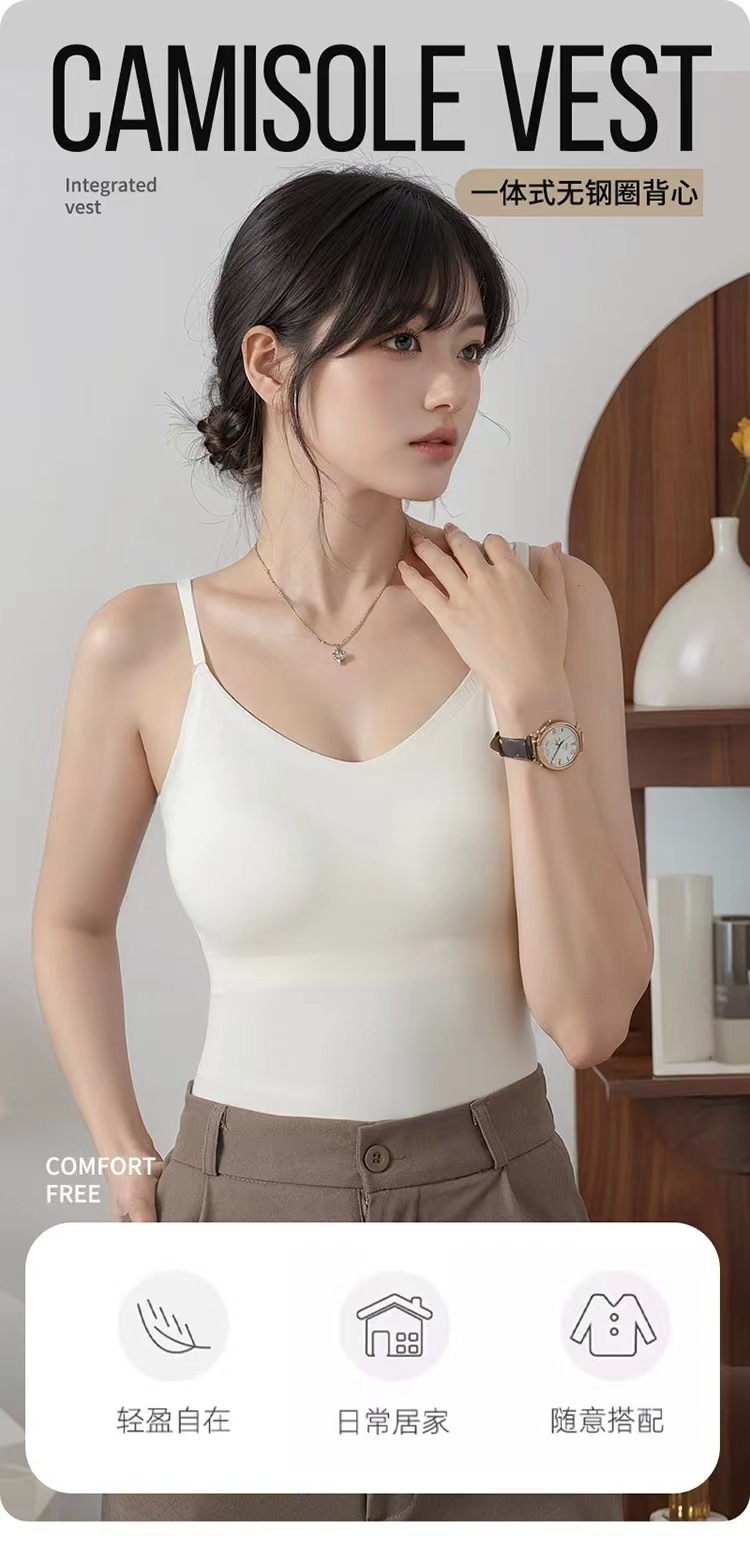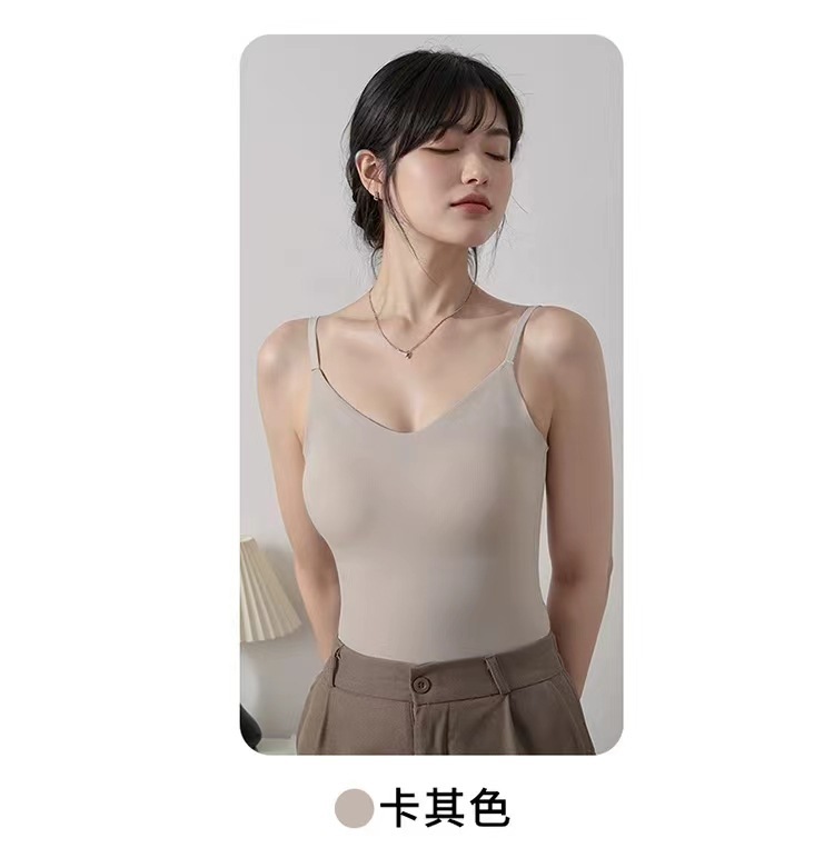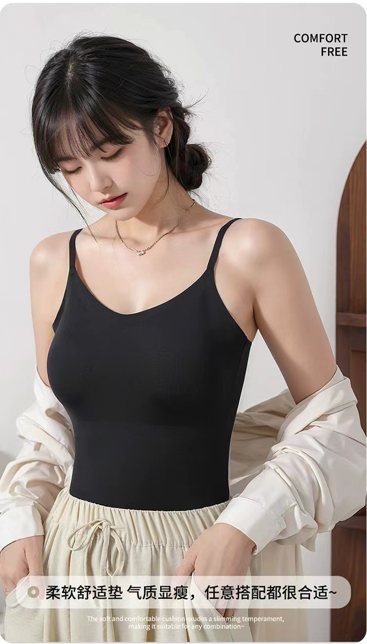 가슴 패드가 있는 새로운 심리스 아이스 실크 캐미솔, 아름다운 등이 내장되어 있고 아름다운 등이 외부에 있고 내부에 착용 가능