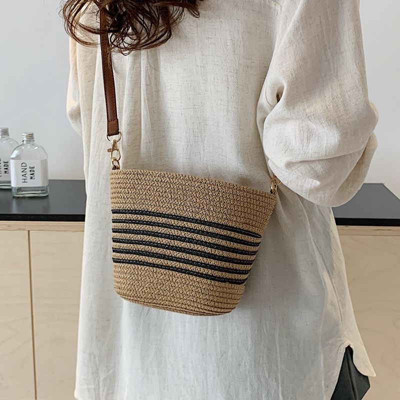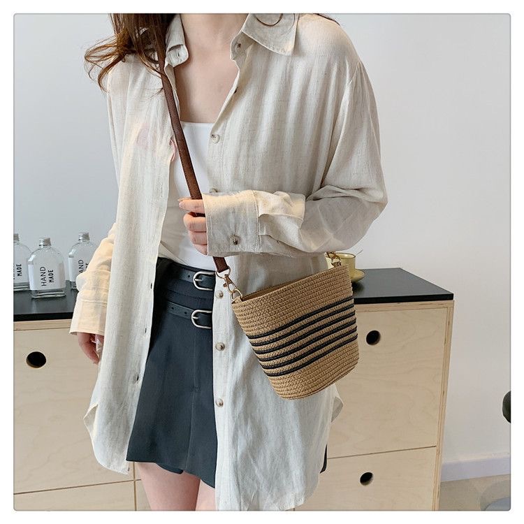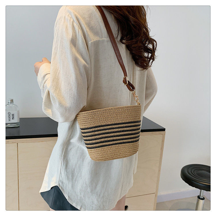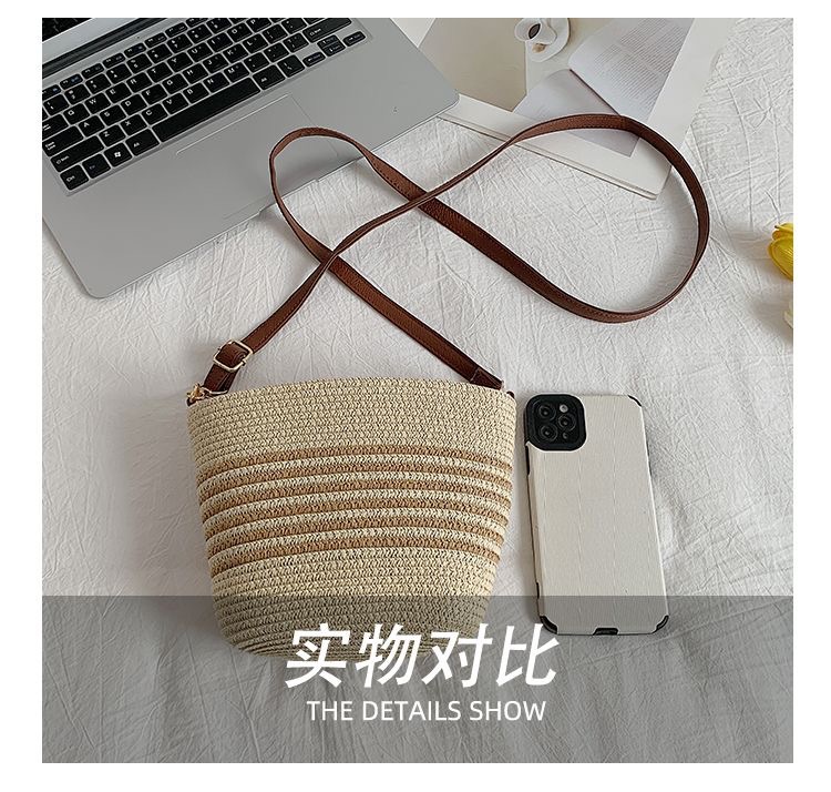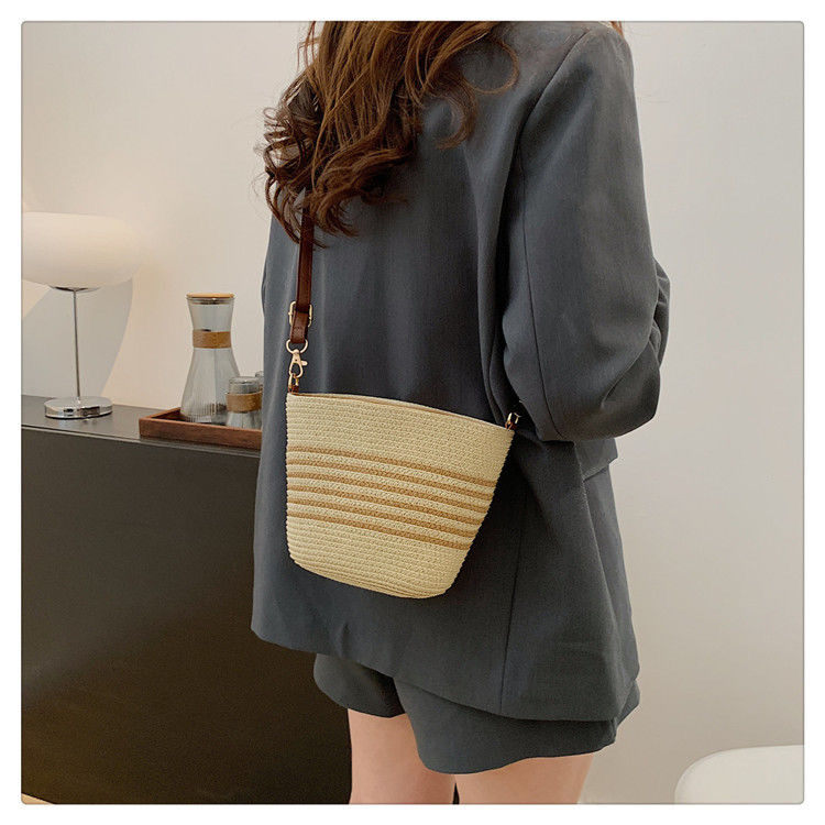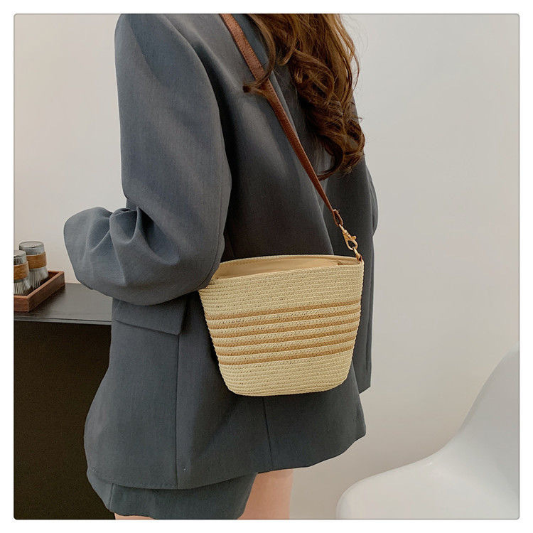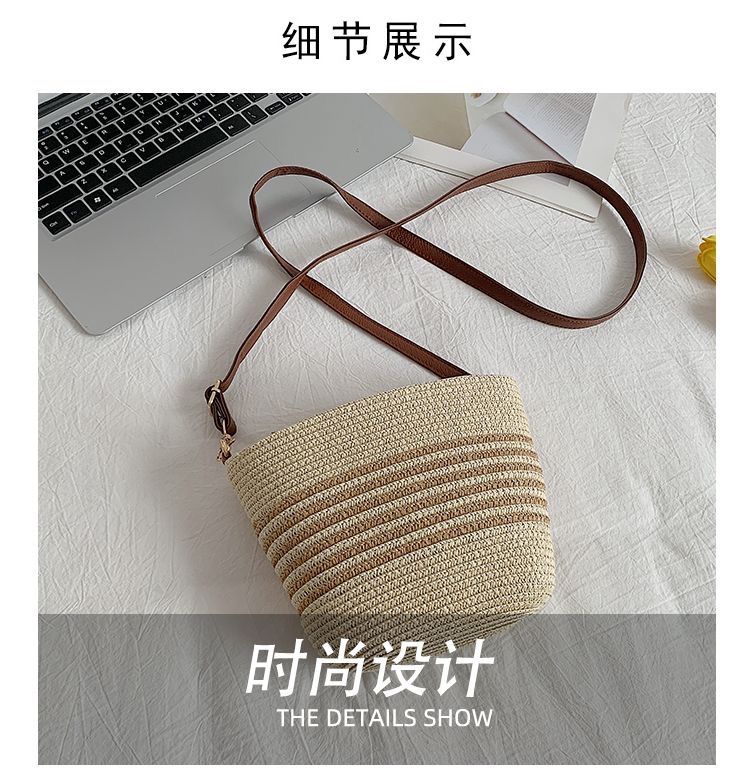여성을위한 여름 인기 밀짚 작은 가방 2025 새로운 해변 휴가 짠 가방 캐주얼 다목적 크로스 바디 버킷 백스토어 가기