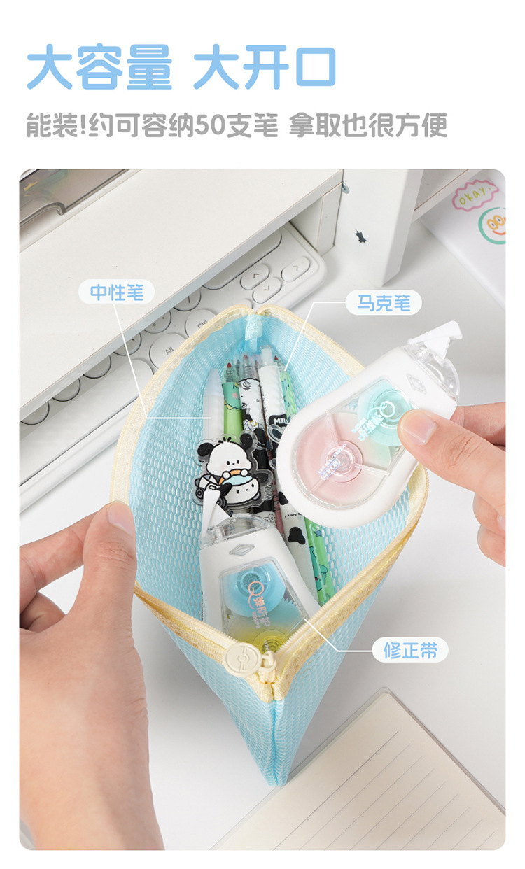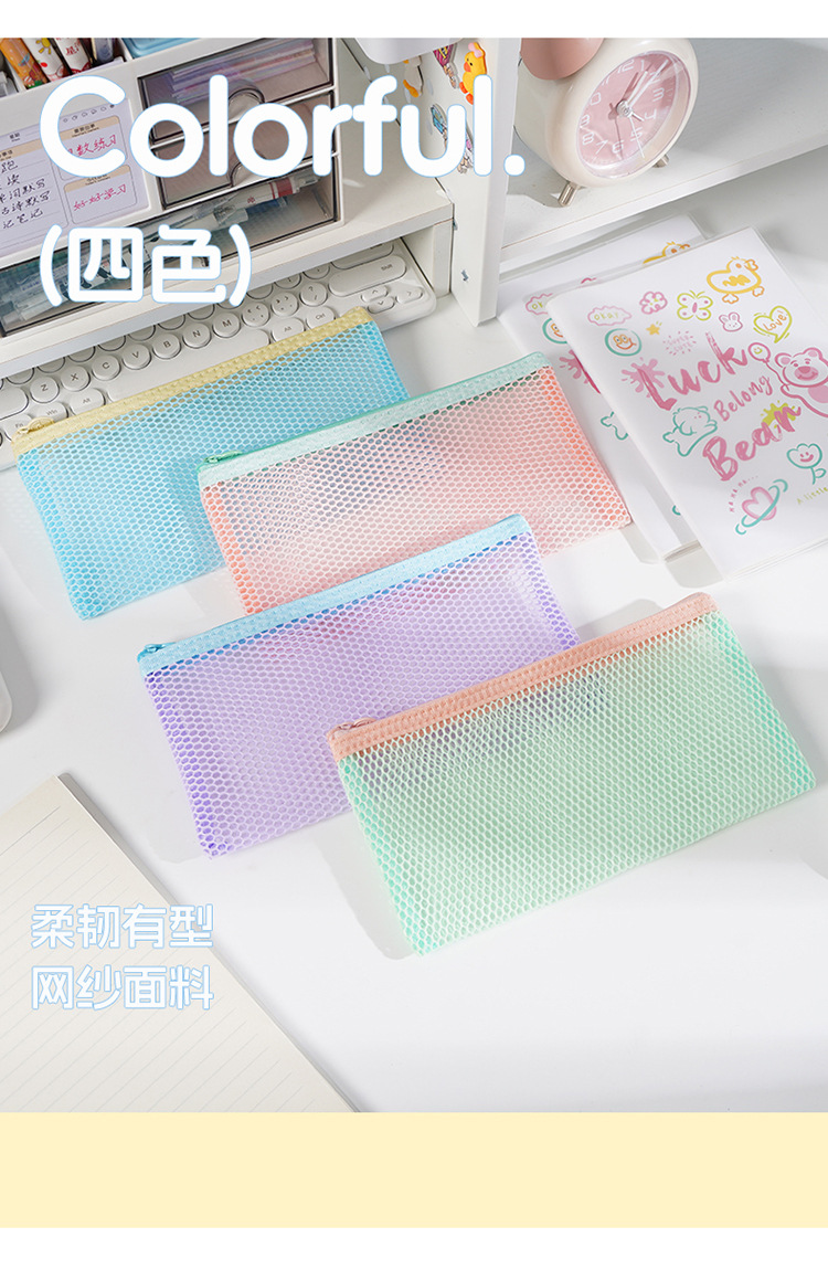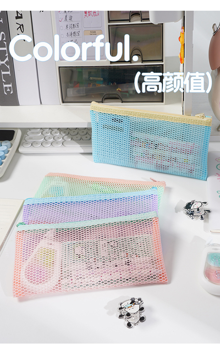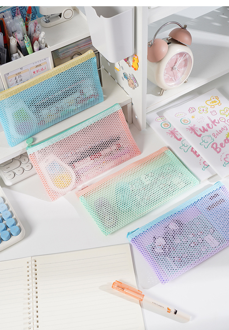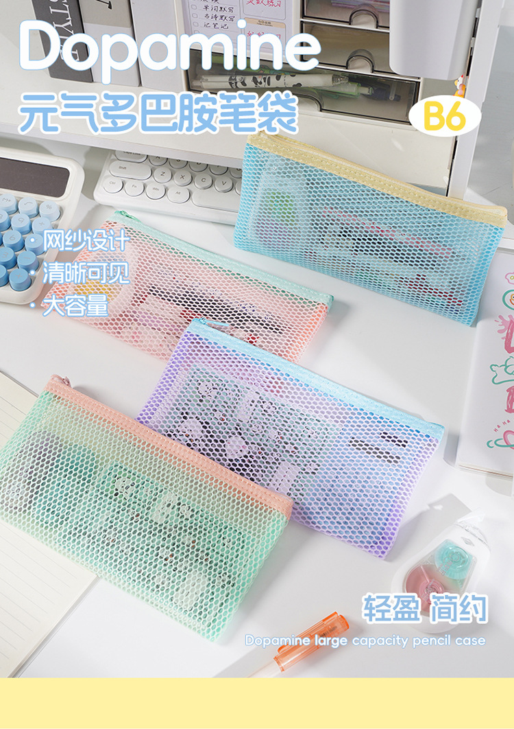 새로운 국경 간 도파민 공간 메쉬 연필 가방 보관 가방 대용량 휴대용 학생 문구 연필 가방 지퍼 가방