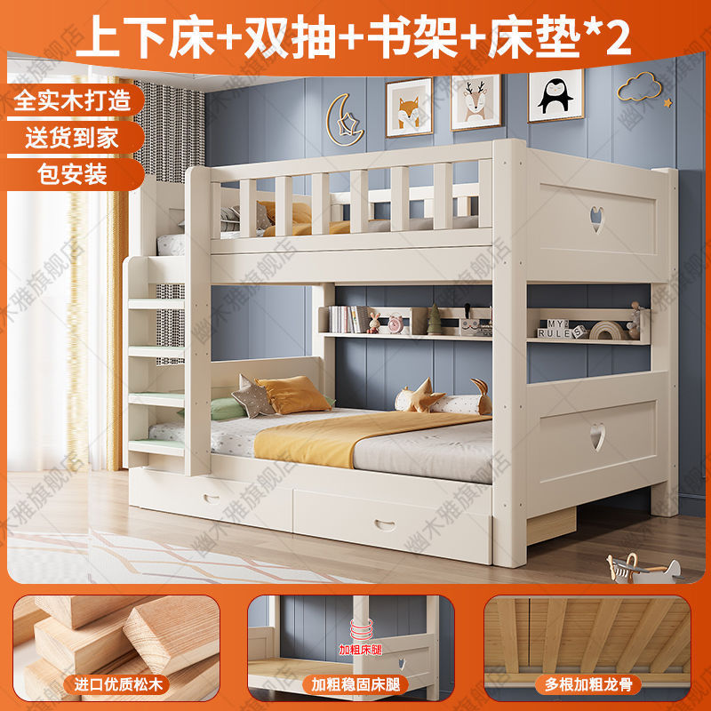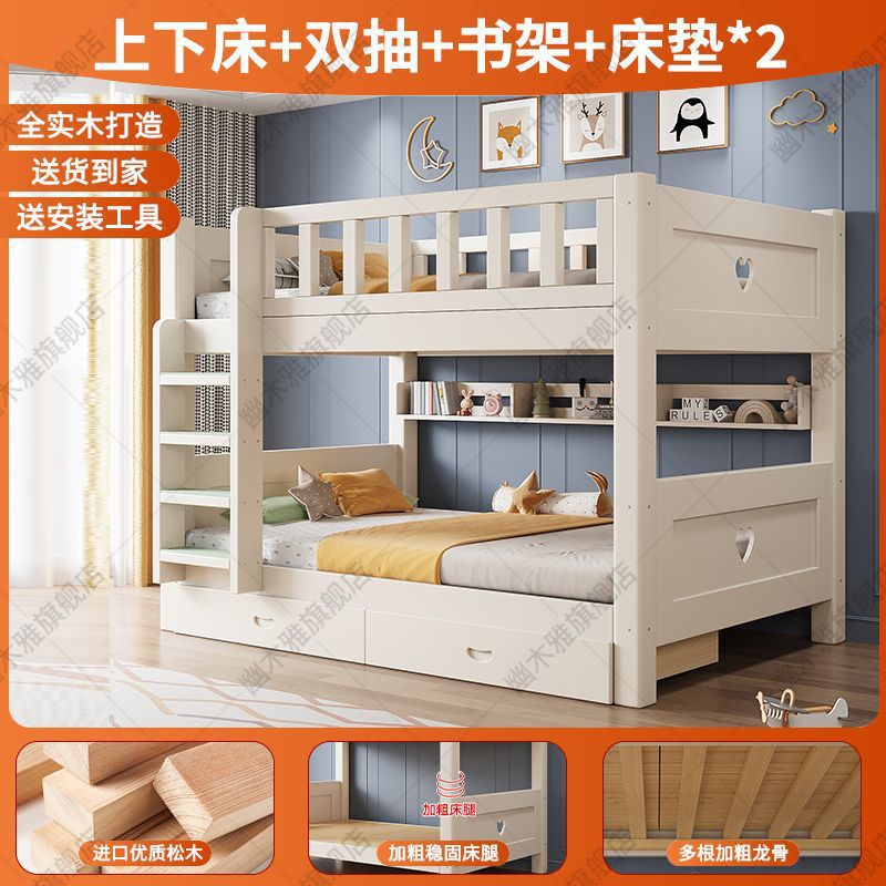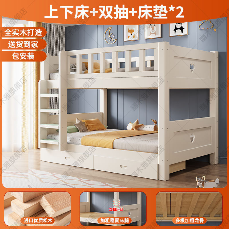 • 【전체 원목】 2층 침대 + 서랍 2개 + 매트리스 【/공구 증정/】 한정 특가 진행!