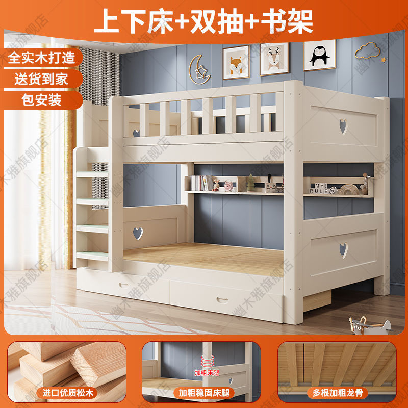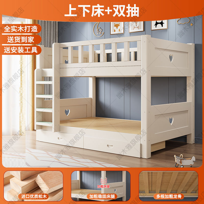 • 【전체 원목】 2층 침대 + 서랍 2개 【/공구 증정/】 한정 특가 진행!