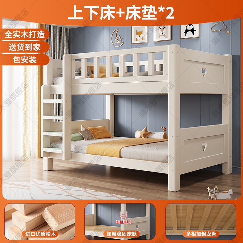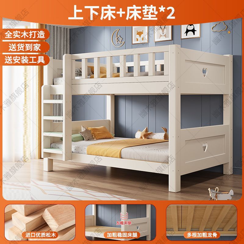 • 【전체 원목】 2층 침대 + 매트리스*2 【/공구 증정/】 한정 특가 진행!