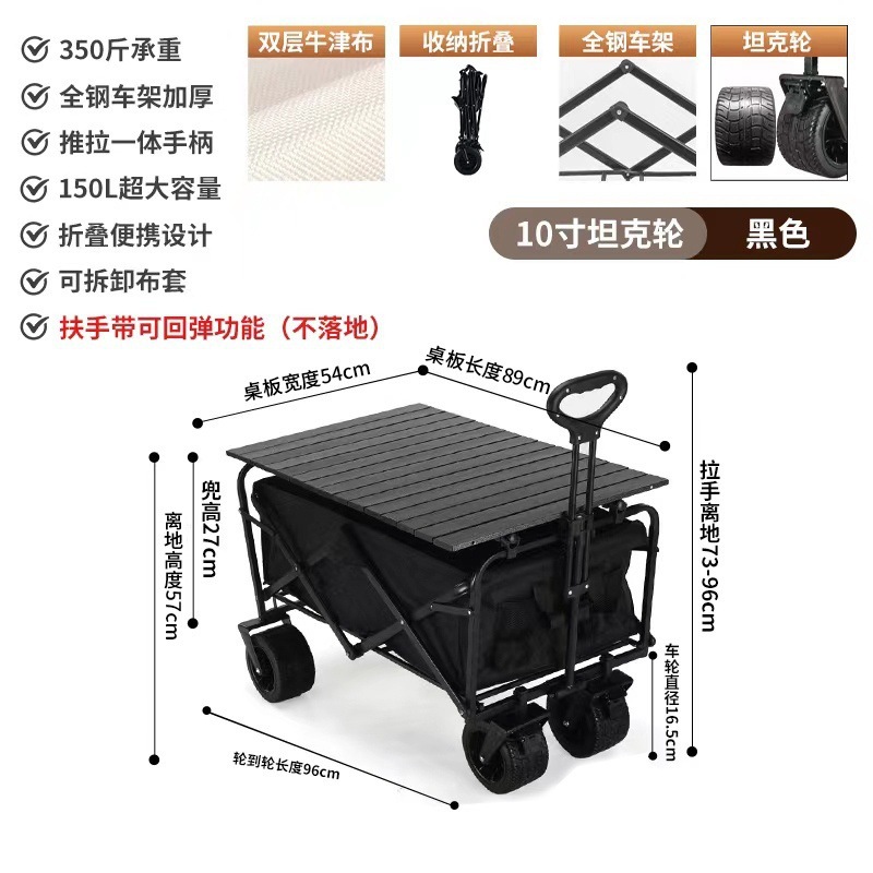 • 10inch 탱크 휠 + 나뭇결 테이블 보관 가방 - 900D 옥스포드 천 블랙