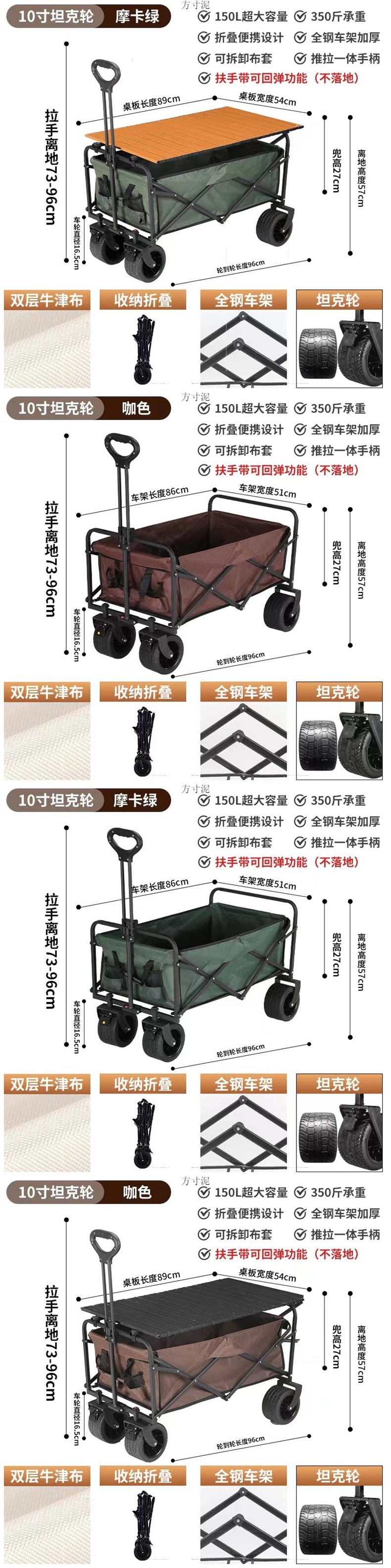 • 10inch 탱크 휠 + 나뭇결 테이블 보관 가방 - 900D 옥스포드 천 모카 그린
