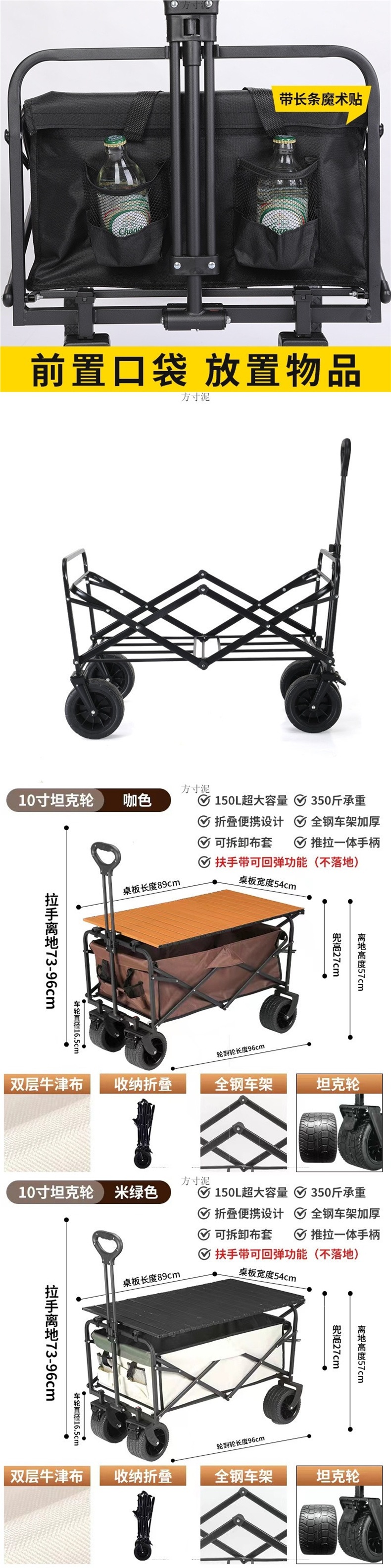 • 10inch 탱크 휠 + 나뭇결 테이블 보관 가방 포함 - 900D 옥스포드 천 브라운