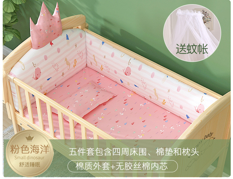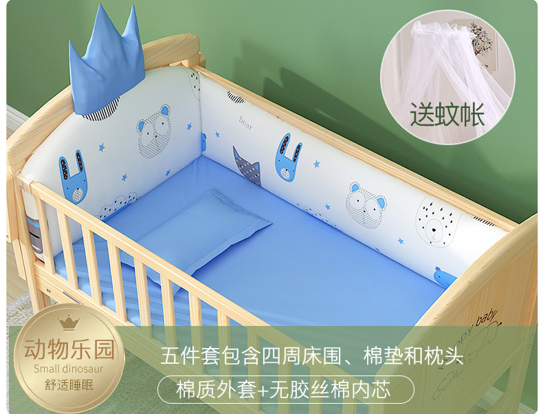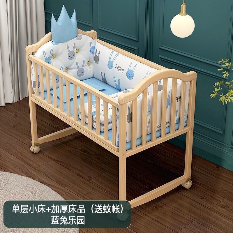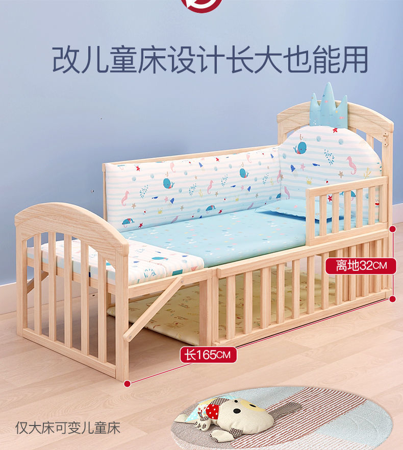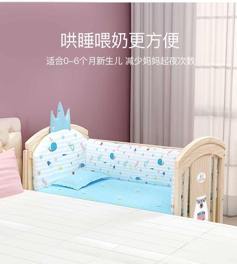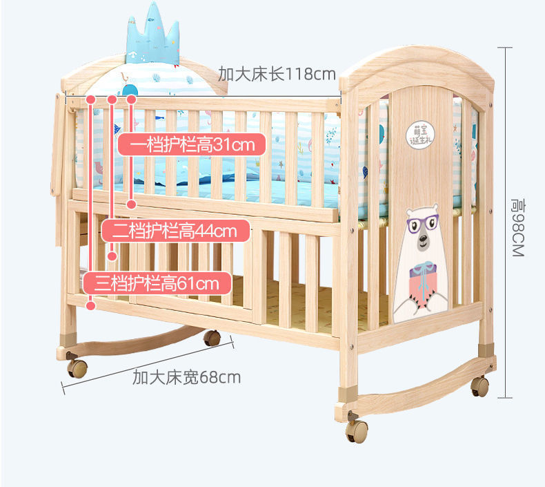 단단한 나무 유아용 침대 접합 대형 침대 이동식 아기 침대 어린이 침대 다기능 요람 침대 유아용 침대