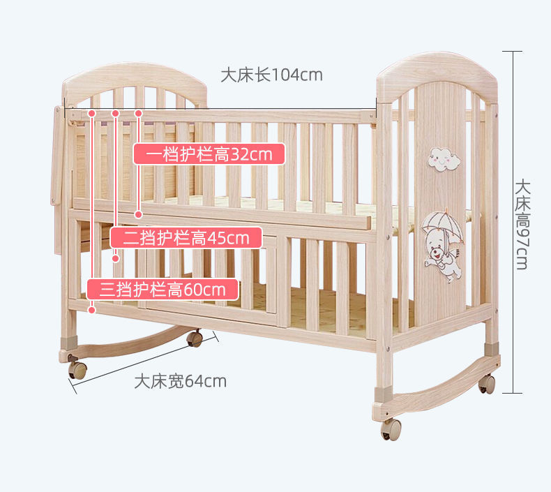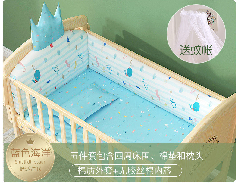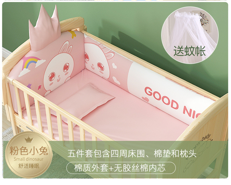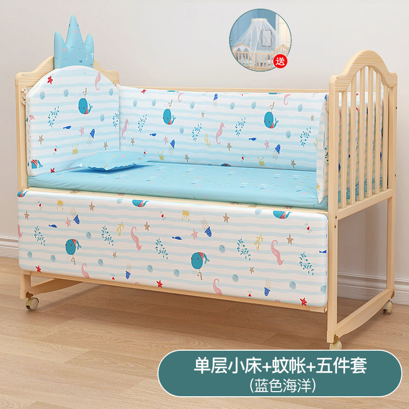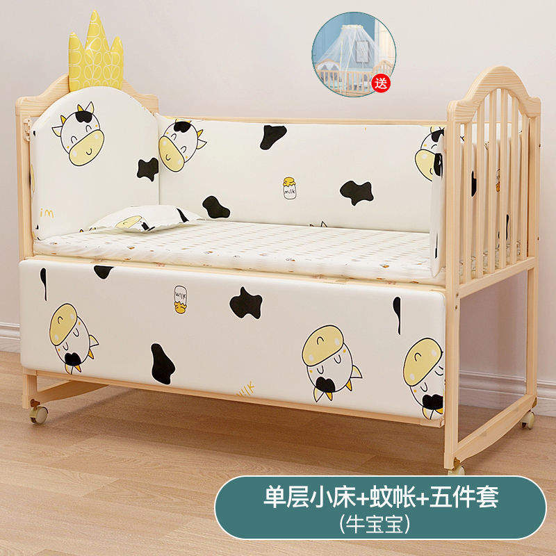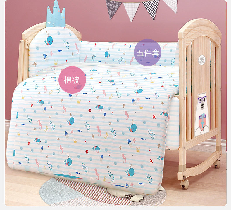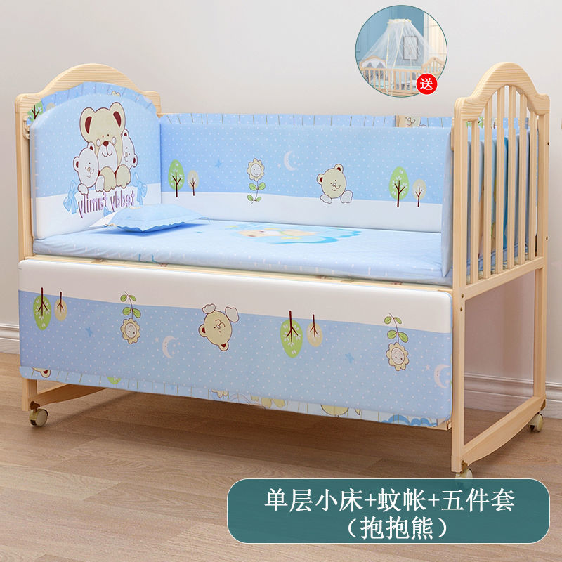 단단한 나무 유아용 침대 접합 대형 침대 이동식 아기 침대 어린이 침대 다기능 요람 침대 유아용 침대
