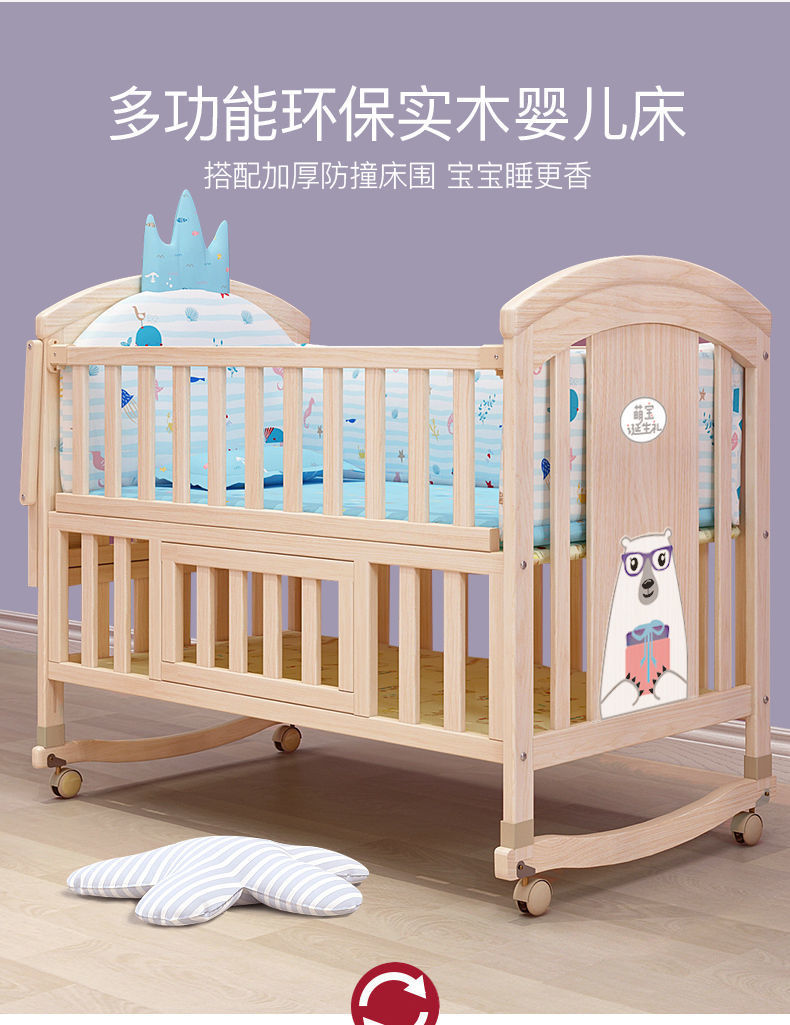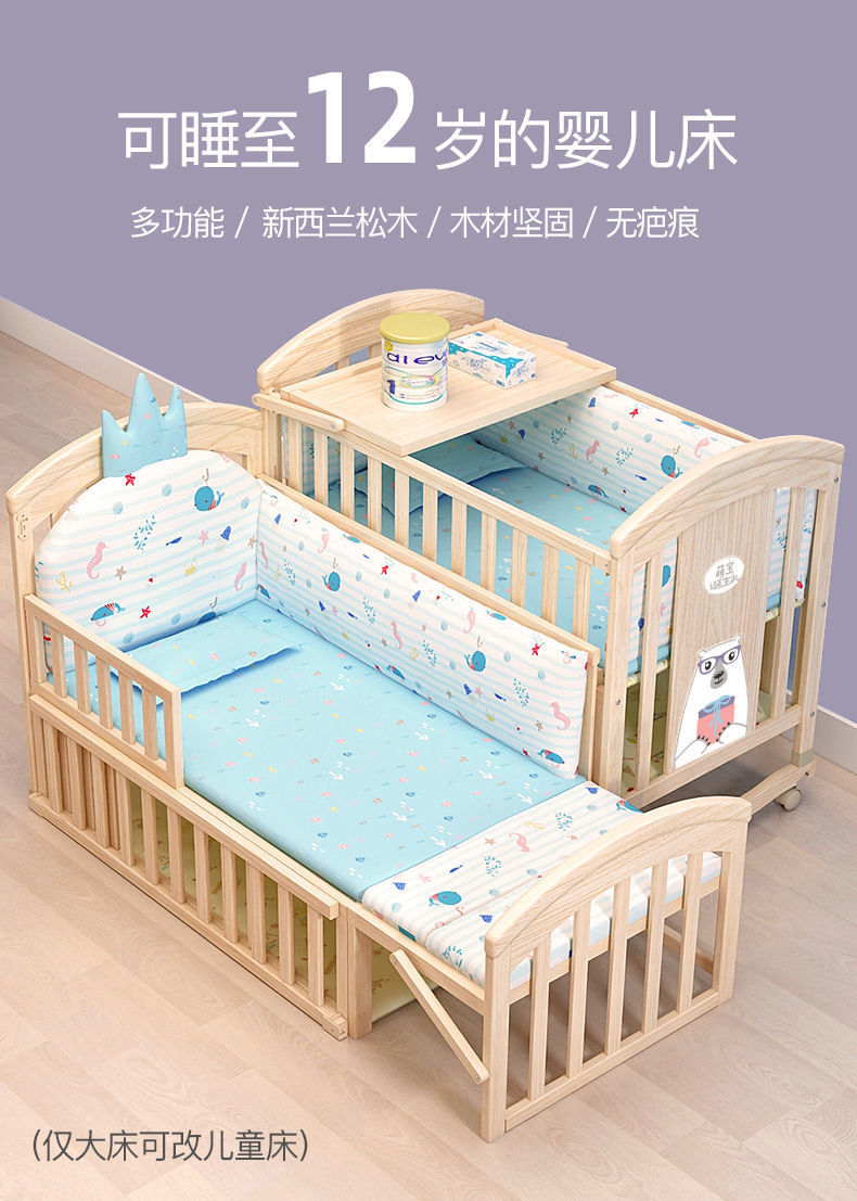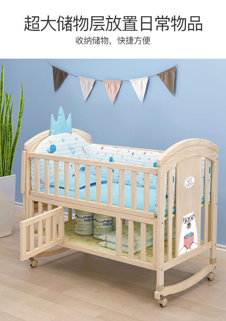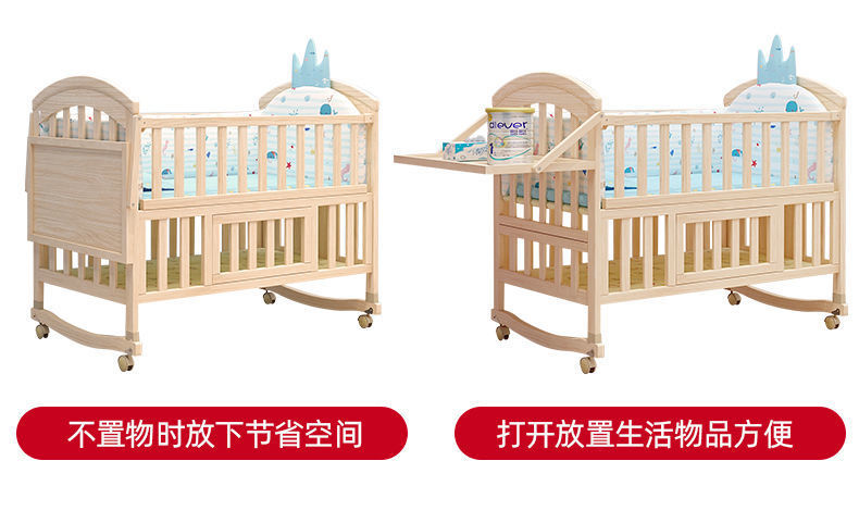 단단한 나무 유아용 침대 접합 대형 침대 이동식 아기 침대 어린이 침대 다기능 요람 침대 유아용 침대스토어 가기