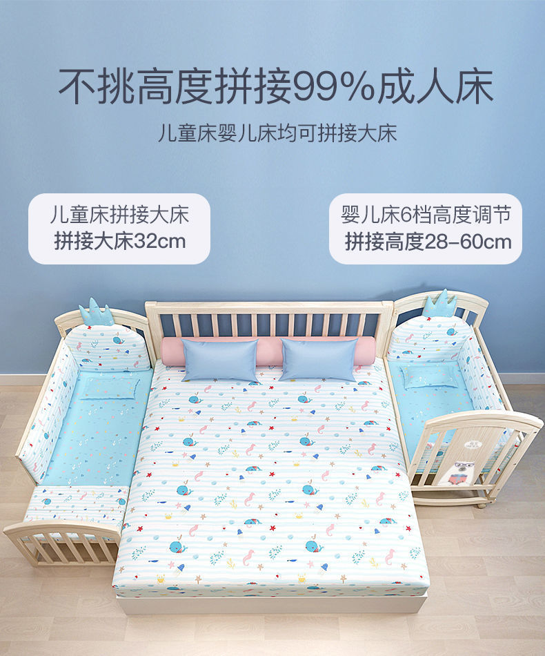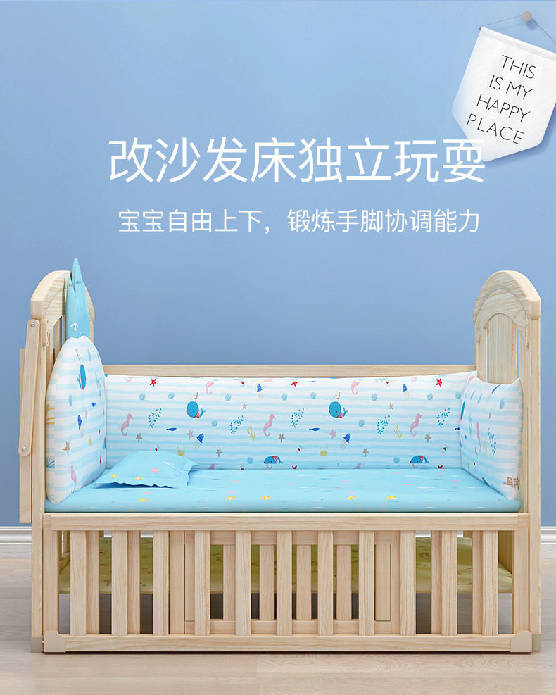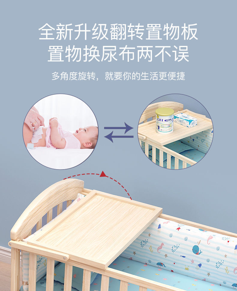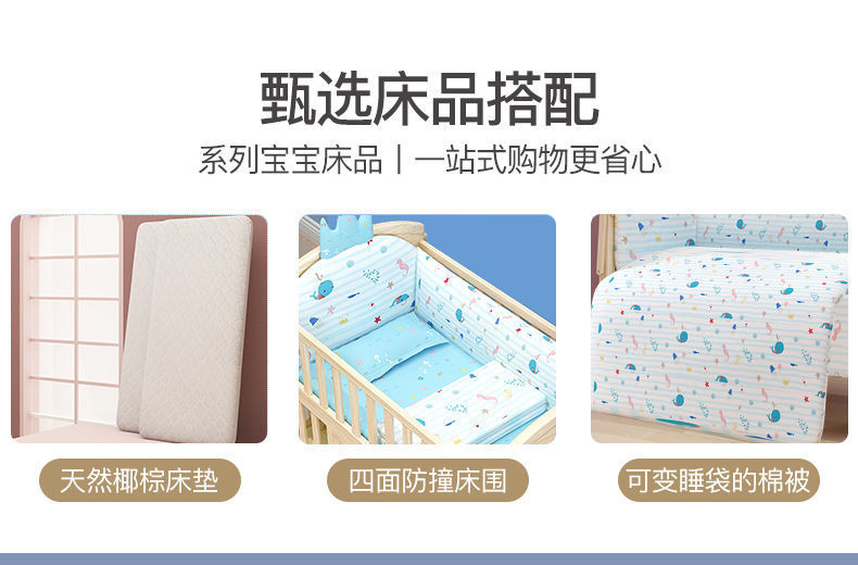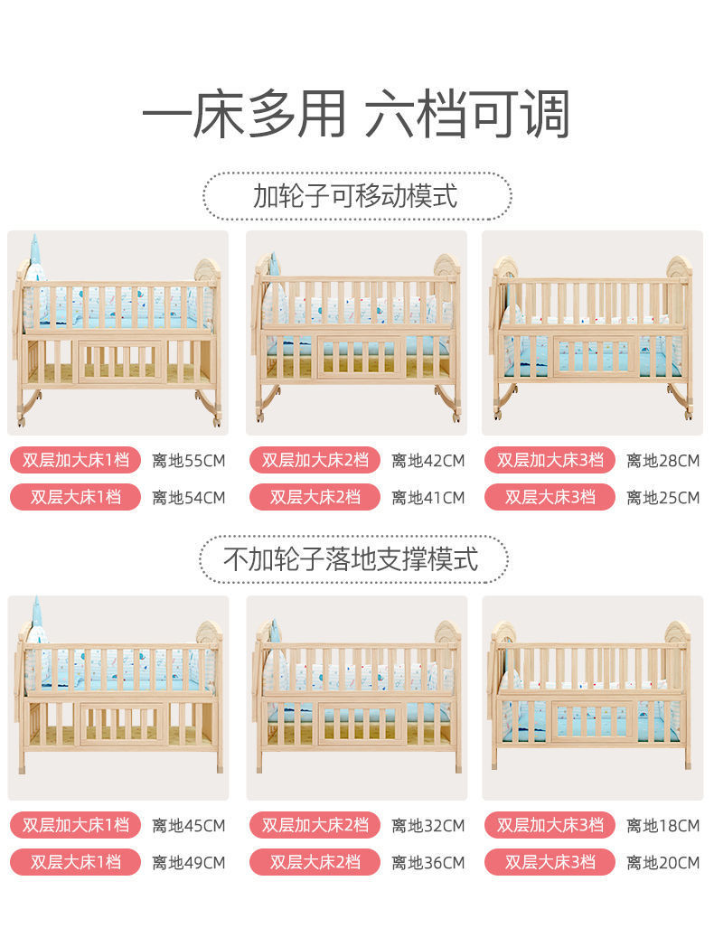 단단한 나무 유아용 침대 접합 대형 침대 이동식 아기 침대 어린이 침대 다기능 요람 침대 유아용 침대스토어 가기