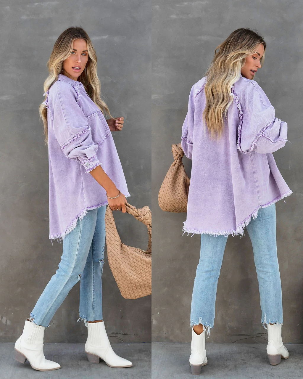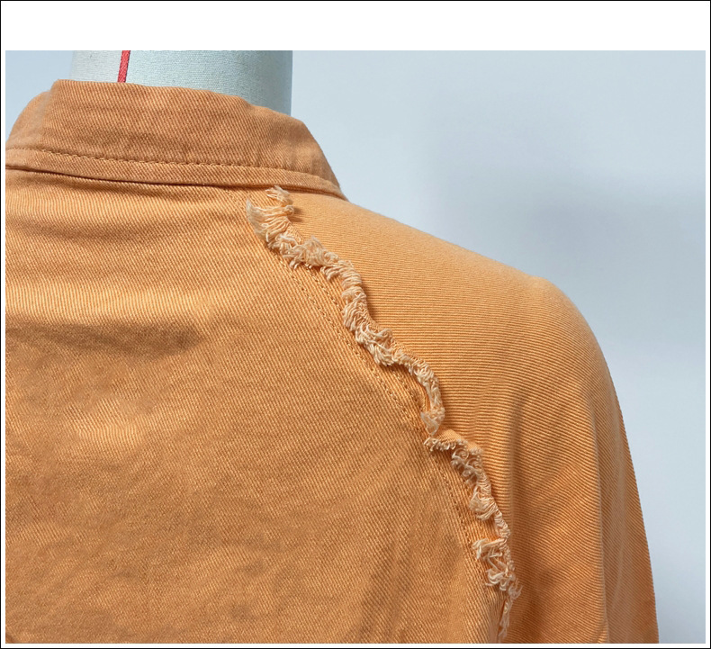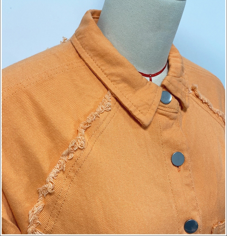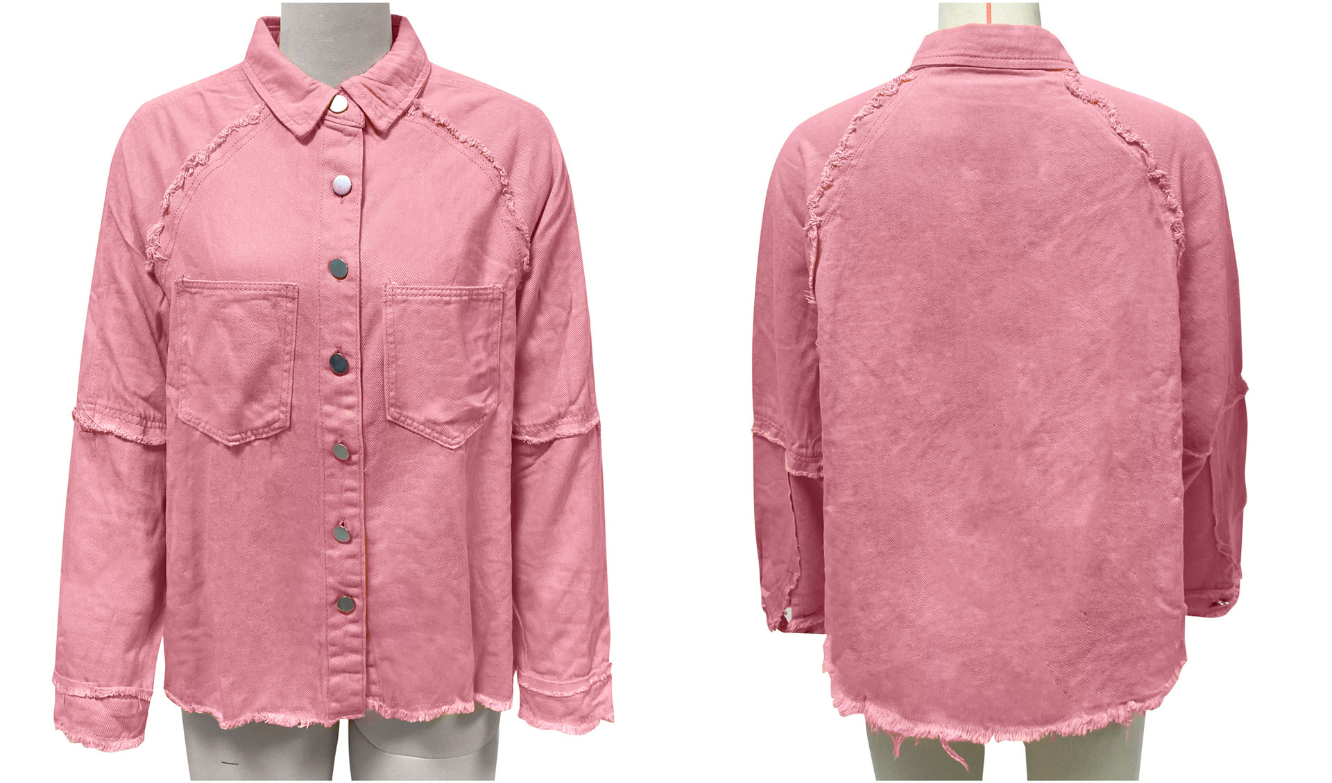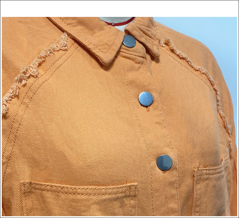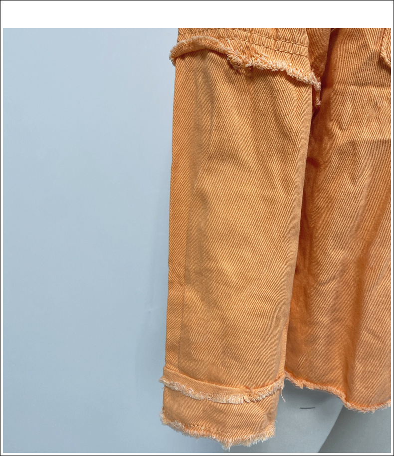 공장 직접 판매 2025 가을 유럽과 미국 여성용 긴팔 데님 재킷 워시드 로우 엣지 중간 길이 루즈 재킷 재고 있음