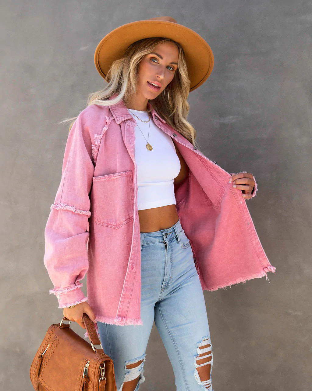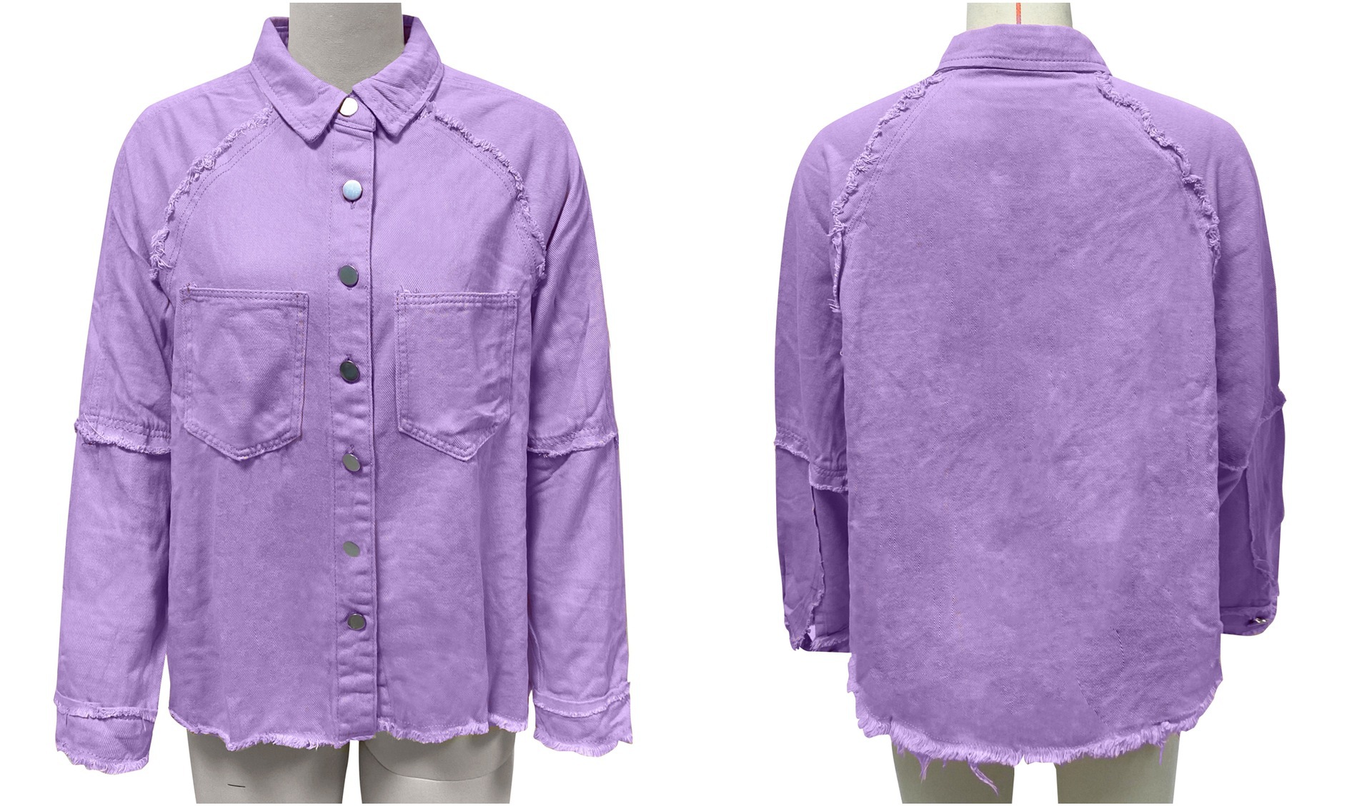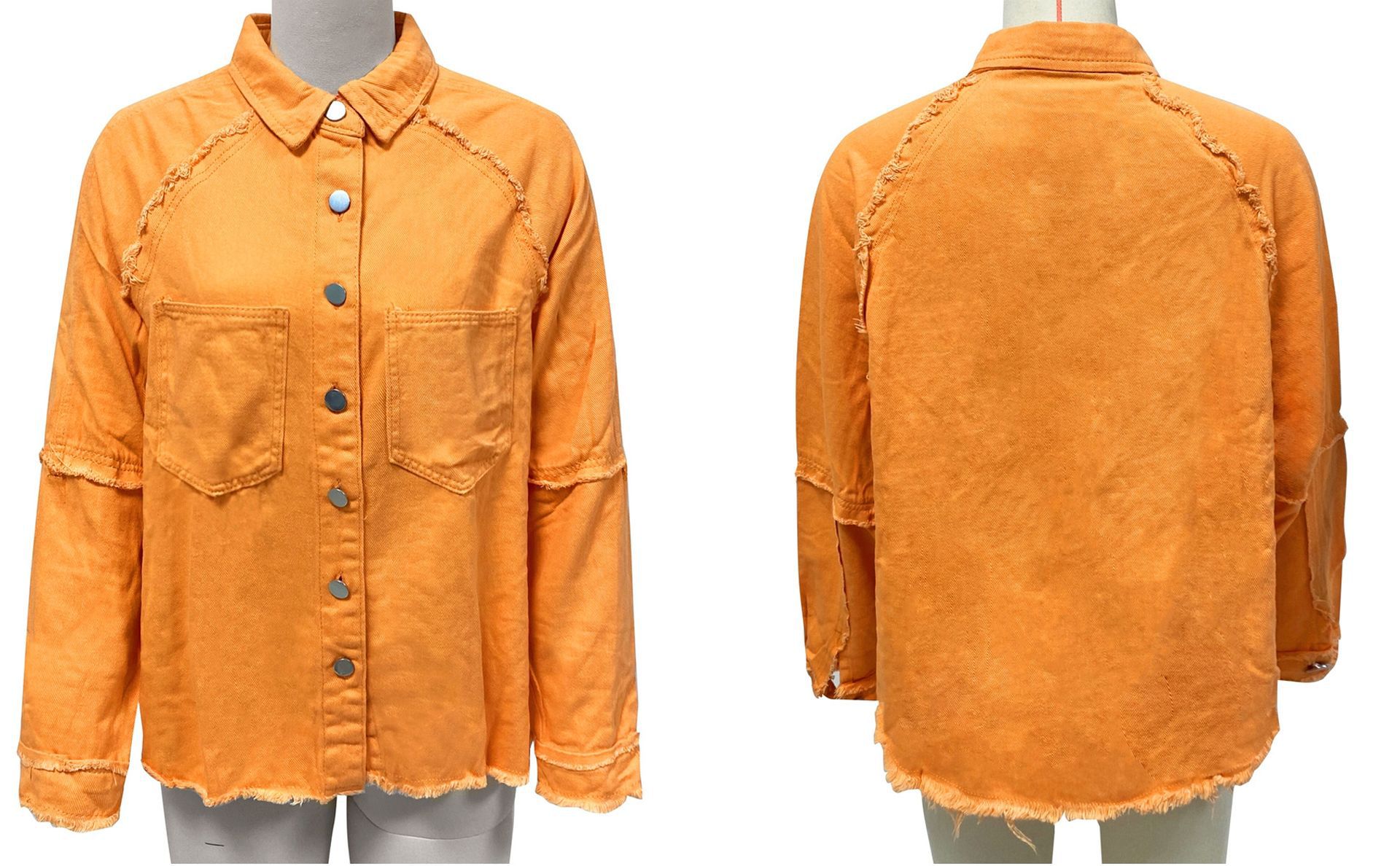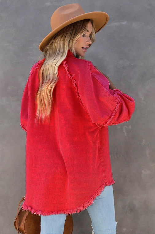 공장 직접 판매 2025 가을 유럽과 미국 여성용 긴팔 데님 재킷 워시드 로우 엣지 중간 길이 루즈 재킷 재고 있음