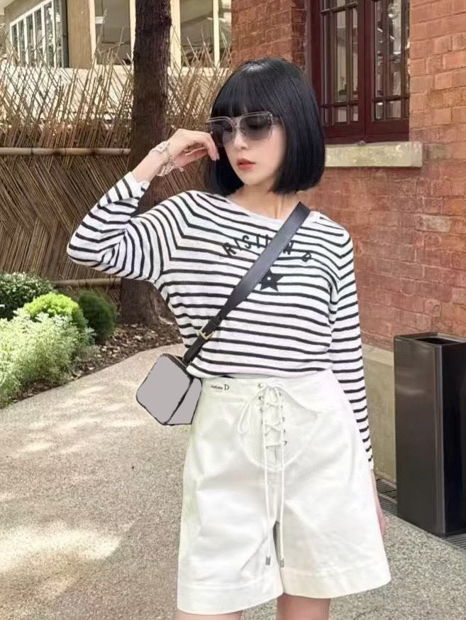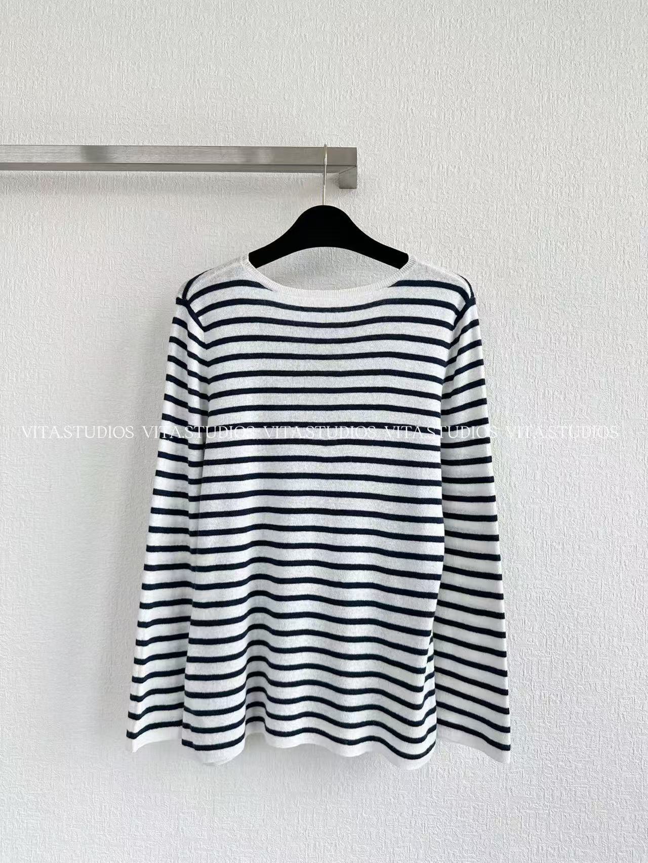 • 흑백 스트라이프 긴소매 탑