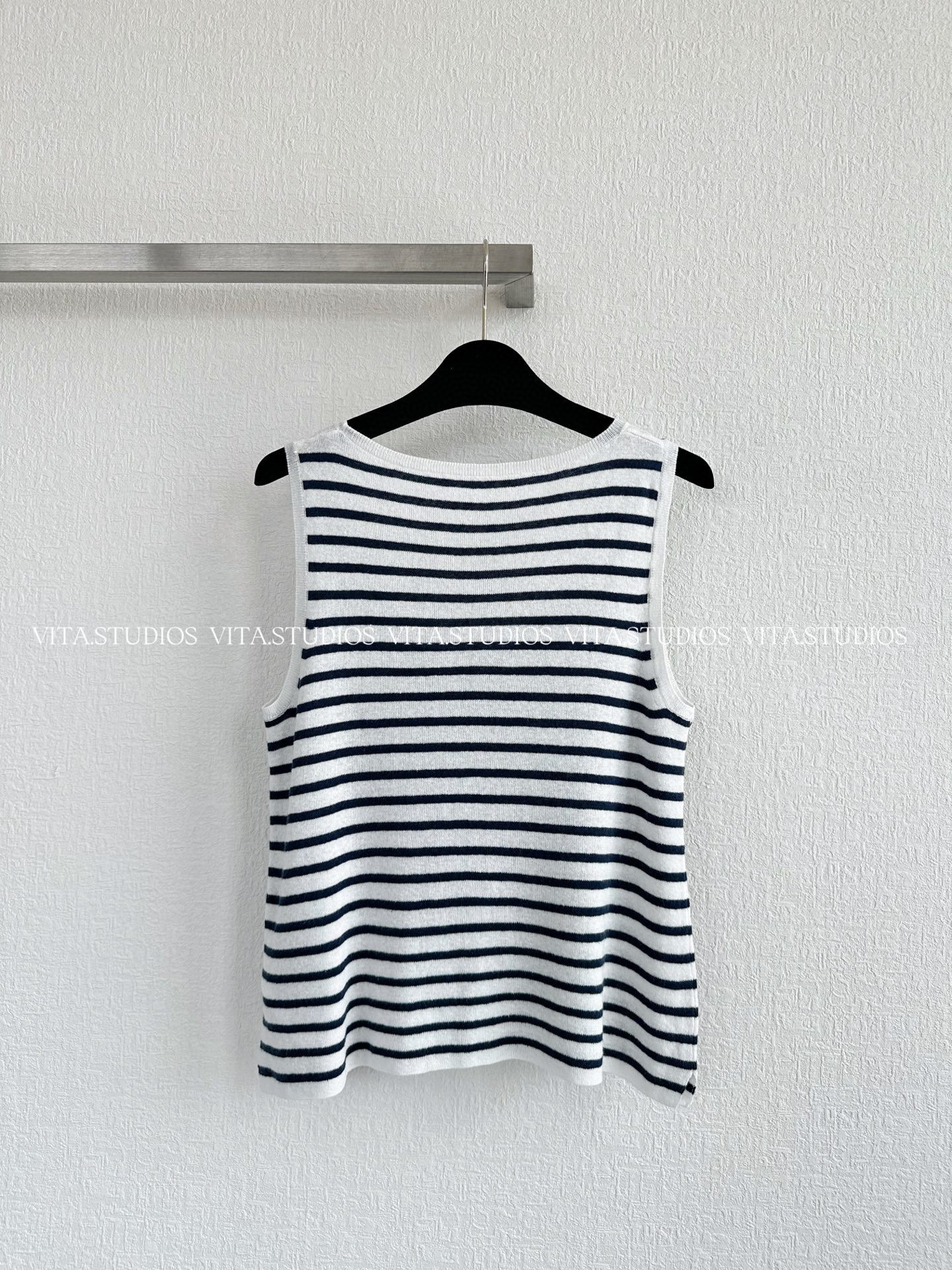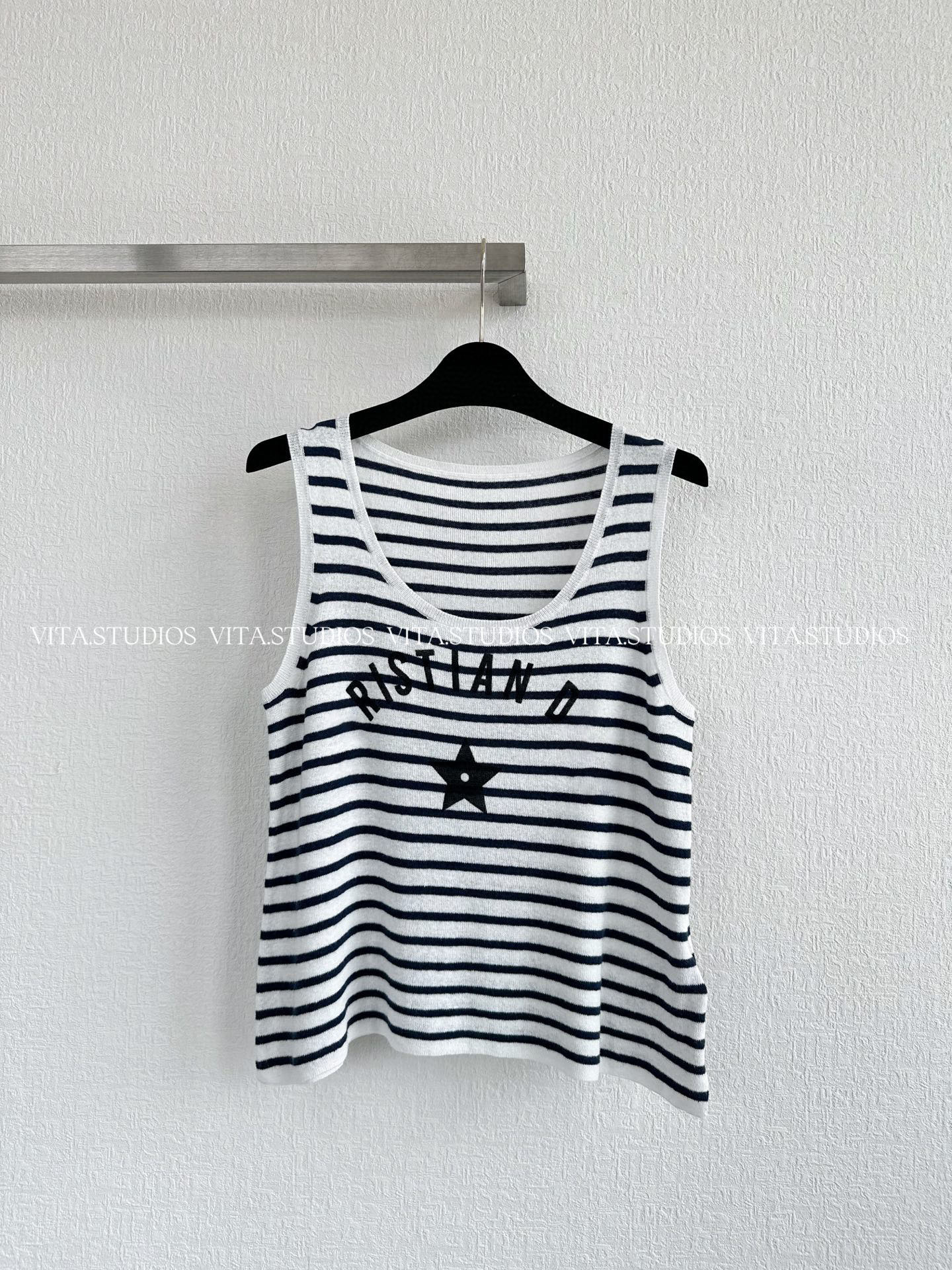 Nanyou Haute Couture 25 여름 신제품 오각별 문자 자카드 네이비 스트라이프 니트 조끼 민소매 스웨터