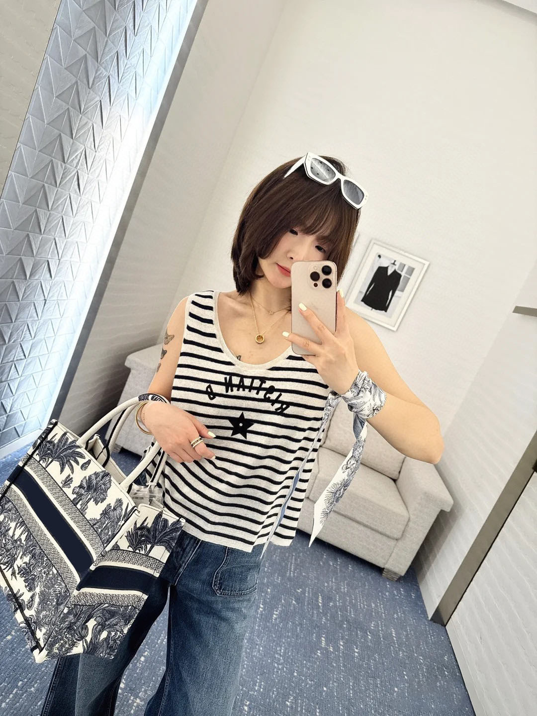 Nanyou Haute Couture 25 여름 신제품 오각별 문자 자카드 네이비 스트라이프 니트 조끼 민소매 스웨터스토어 가기