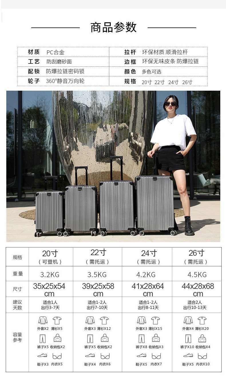 새로운 금속 코너 가방 성인 대용량 비즈니스 탑승 가방 범용 휠 암호 잠금 가방스토어 가기