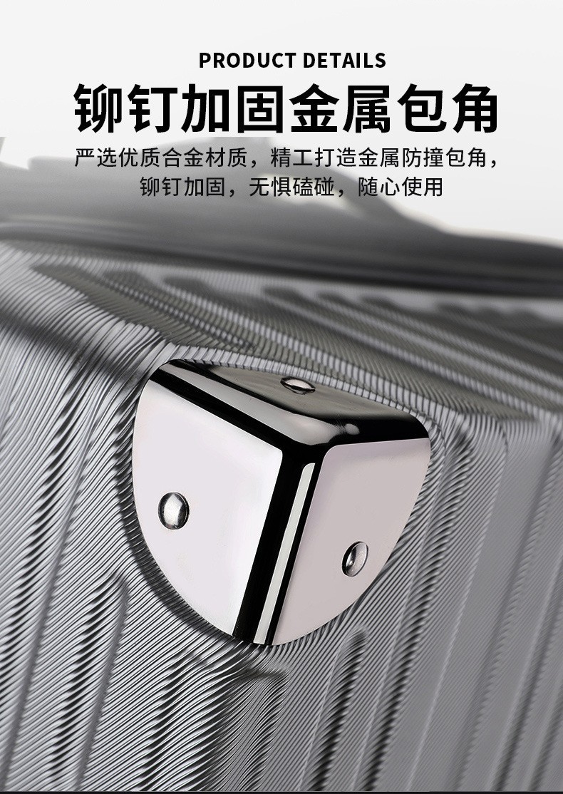새로운 금속 코너 가방 성인 대용량 비즈니스 탑승 가방 범용 휠 암호 잠금 가방
