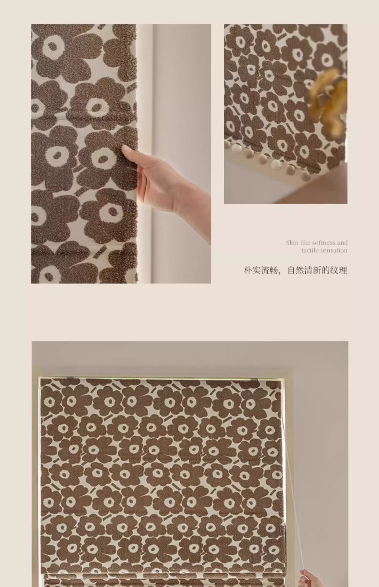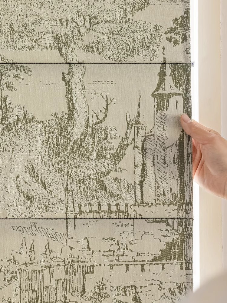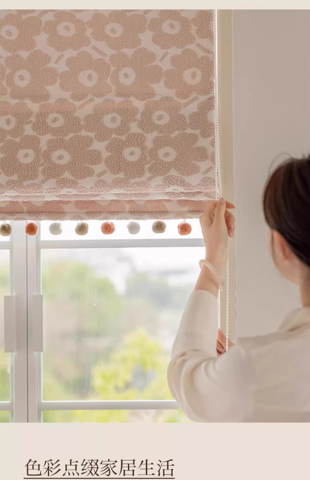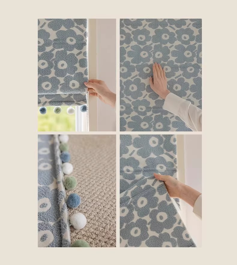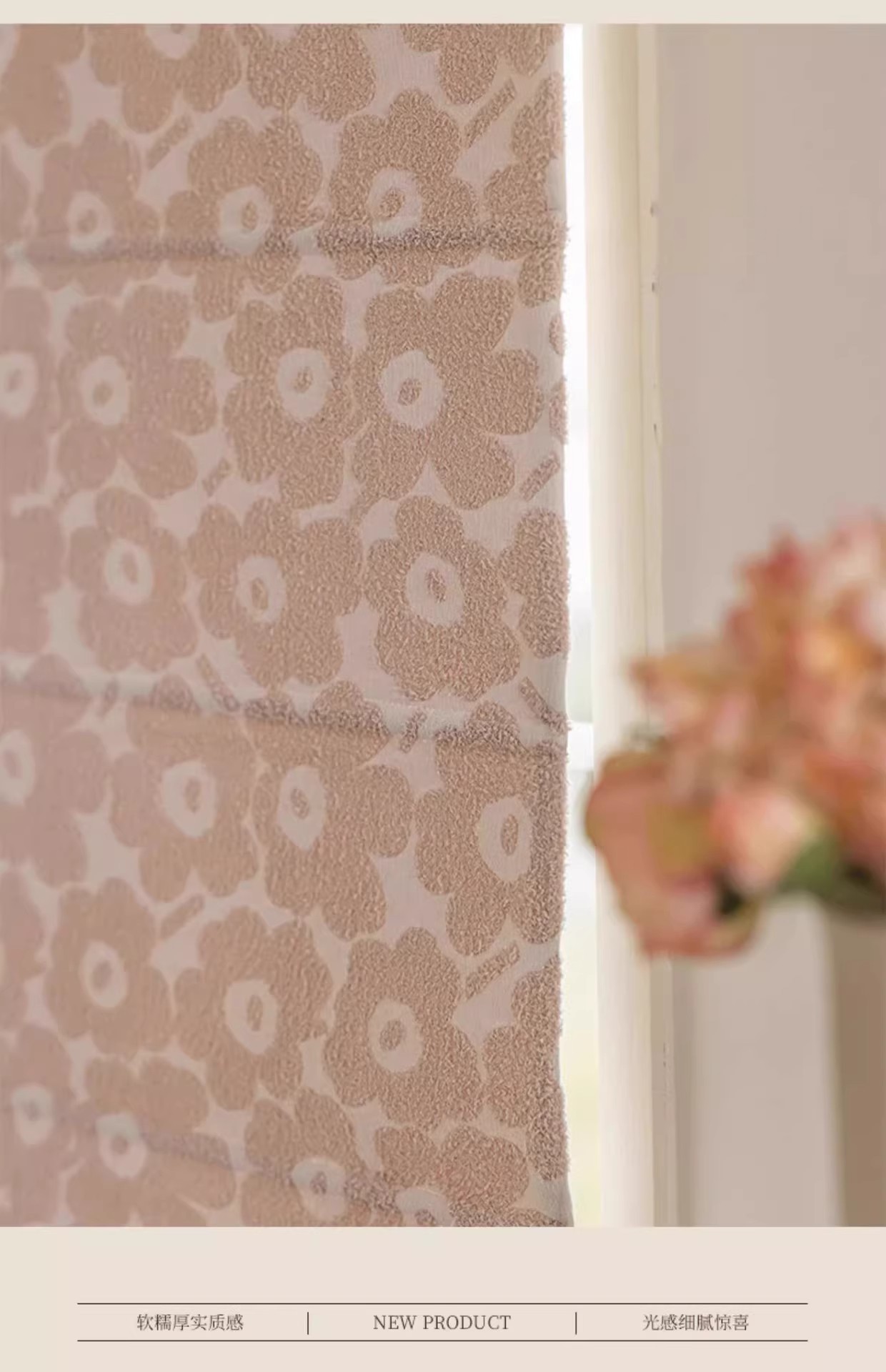 북유럽 스타일 차광 프렌치 스타일 쉐닐 로마 커튼 소녀 침실 거실 자카드 도어 커튼 원단 롤 커튼