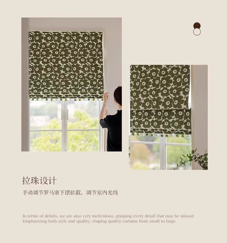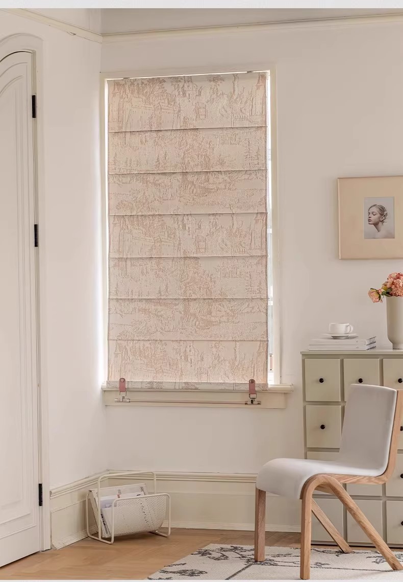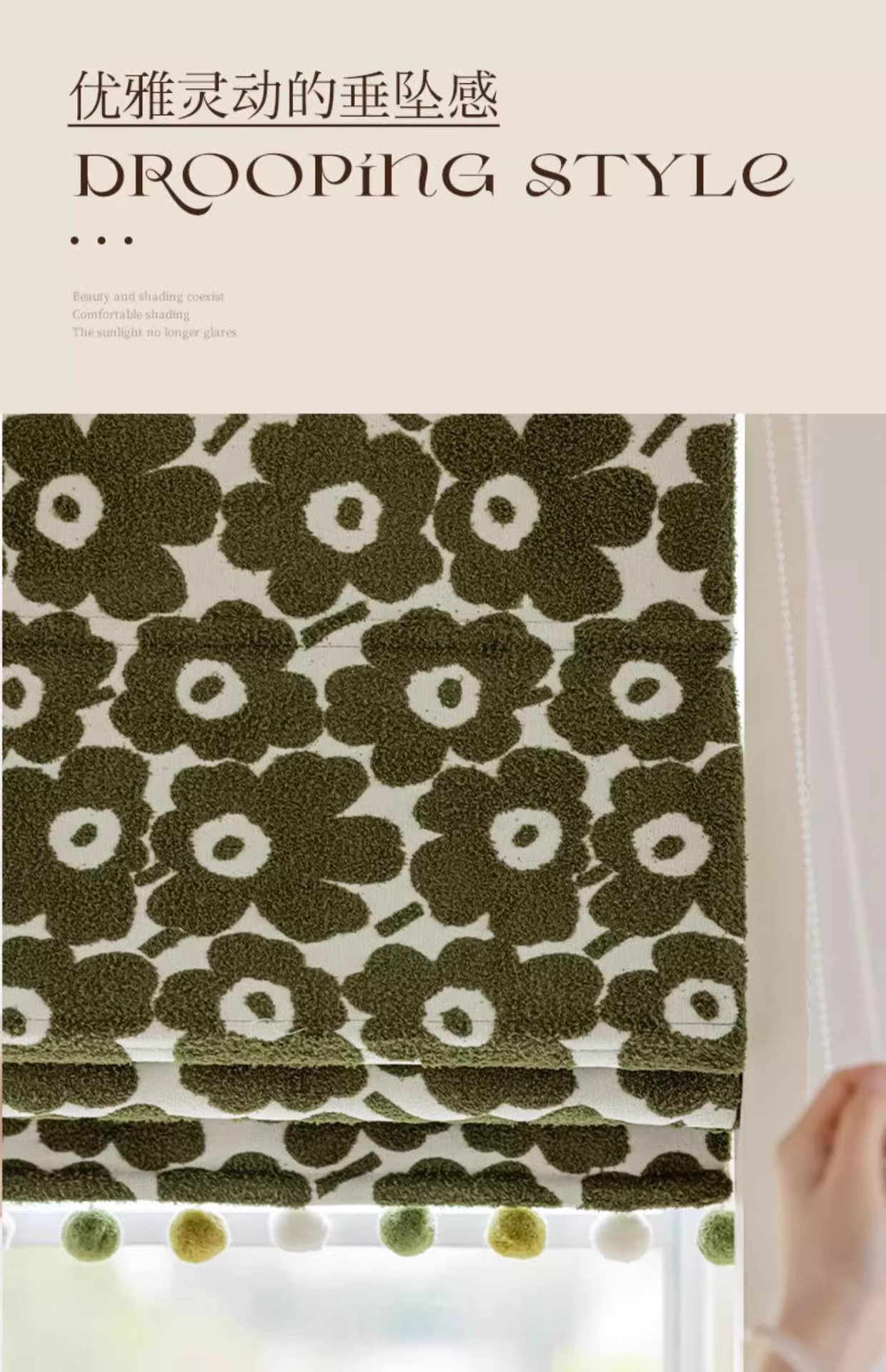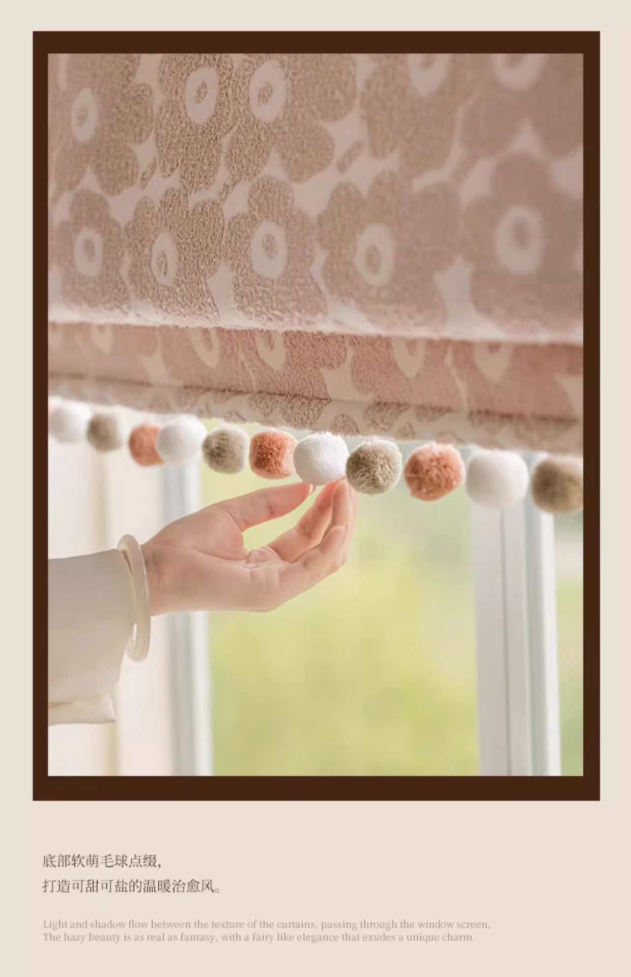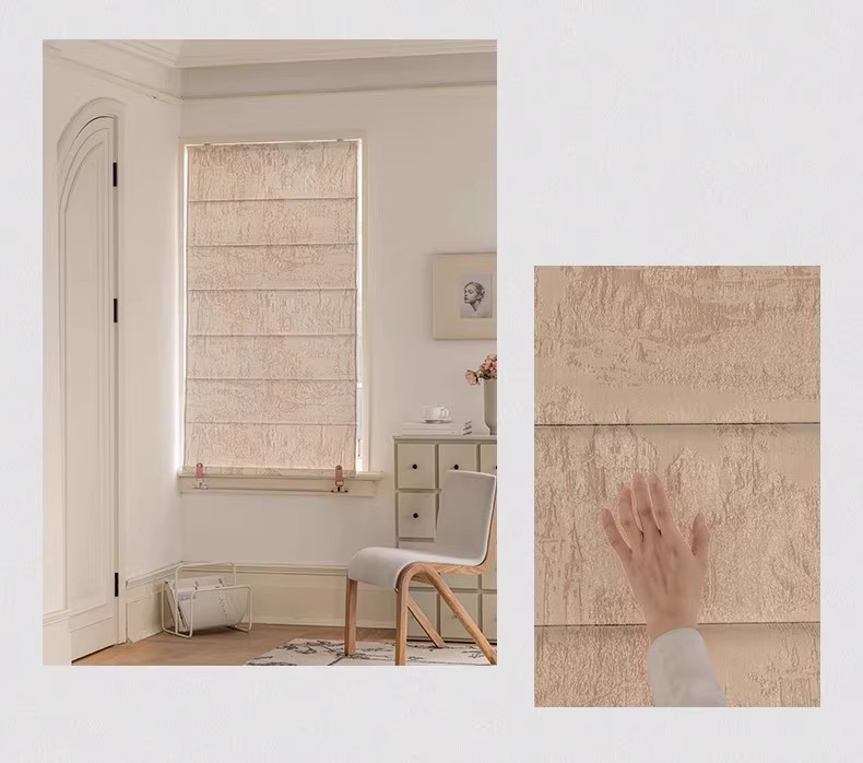북유럽 스타일 차광 프렌치 스타일 쉐닐 로마 커튼 소녀 침실 거실 자카드 도어 커튼 원단 롤 커튼