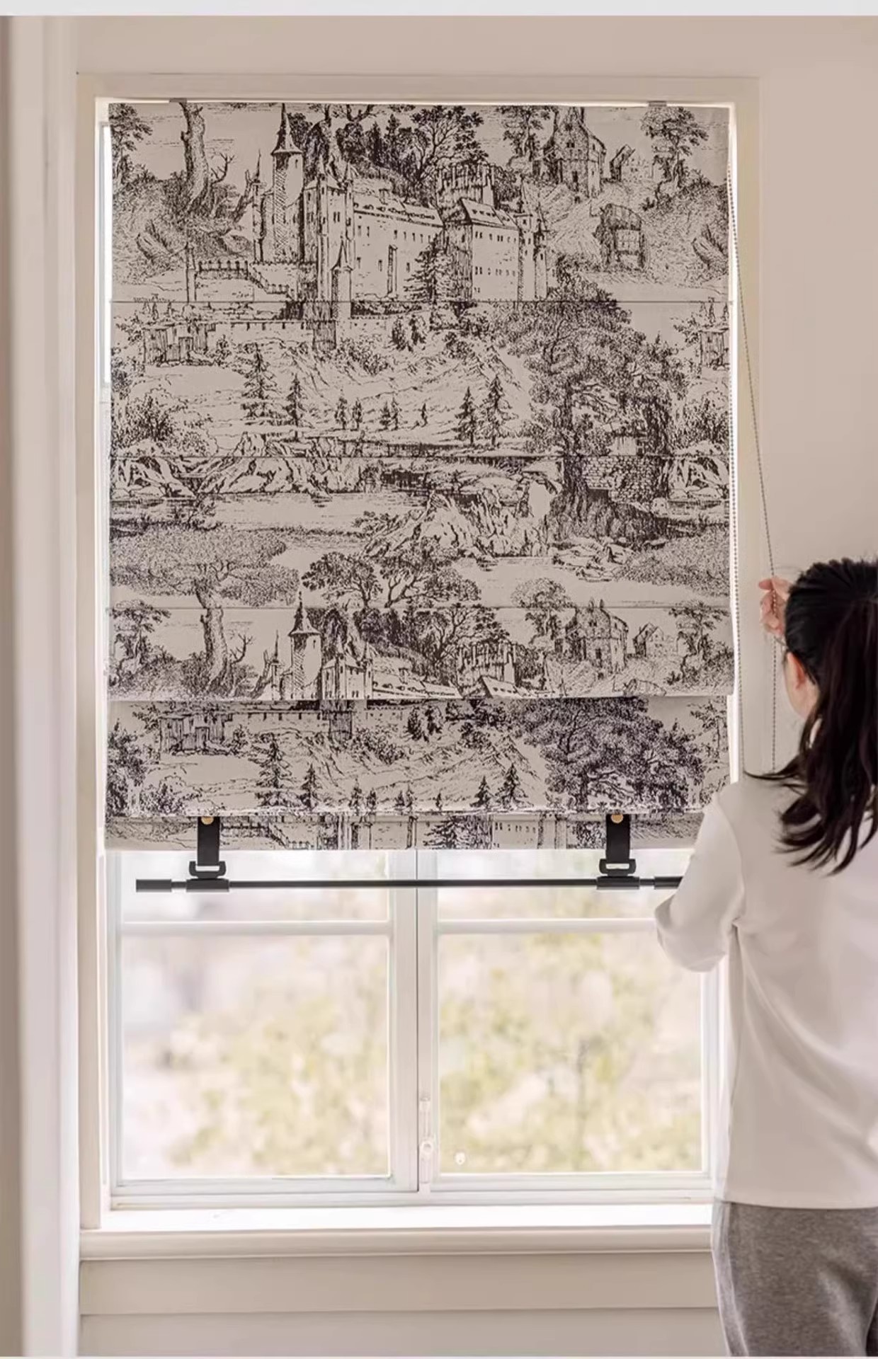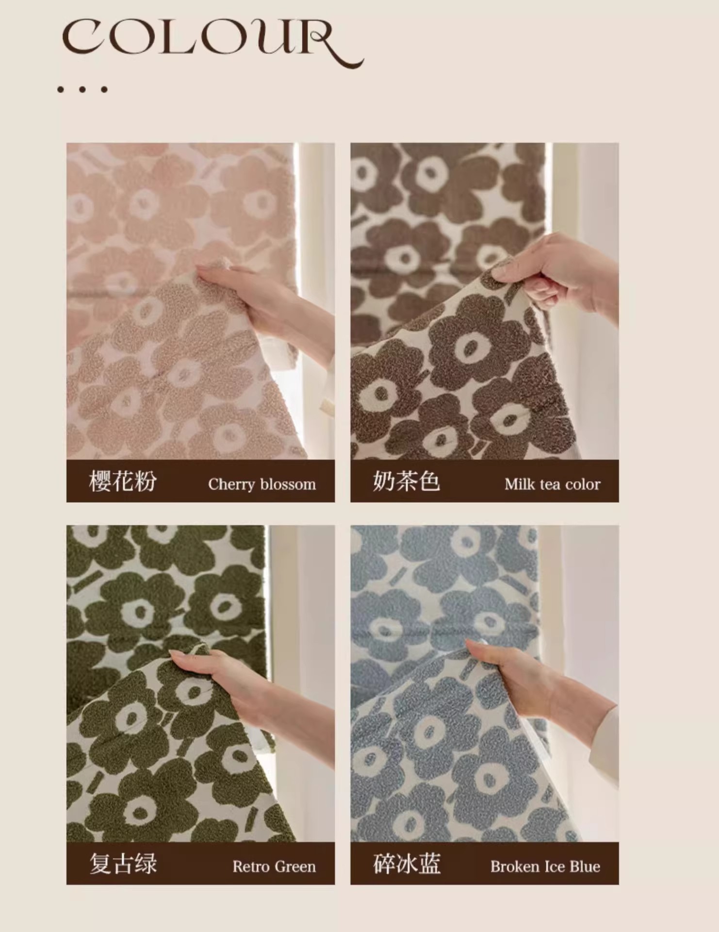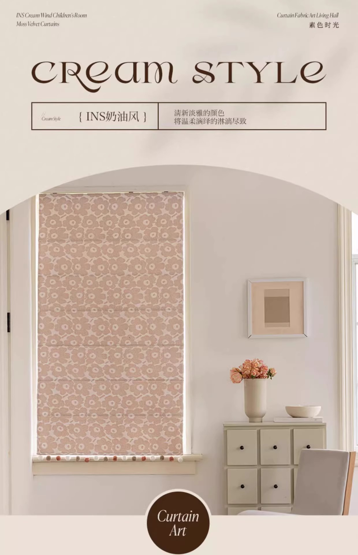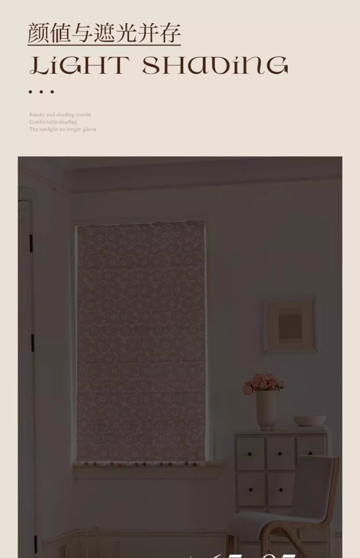 북유럽 스타일 차광 프렌치 스타일 쉐닐 로마 커튼 소녀 침실 거실 자카드 도어 커튼 원단 롤 커튼